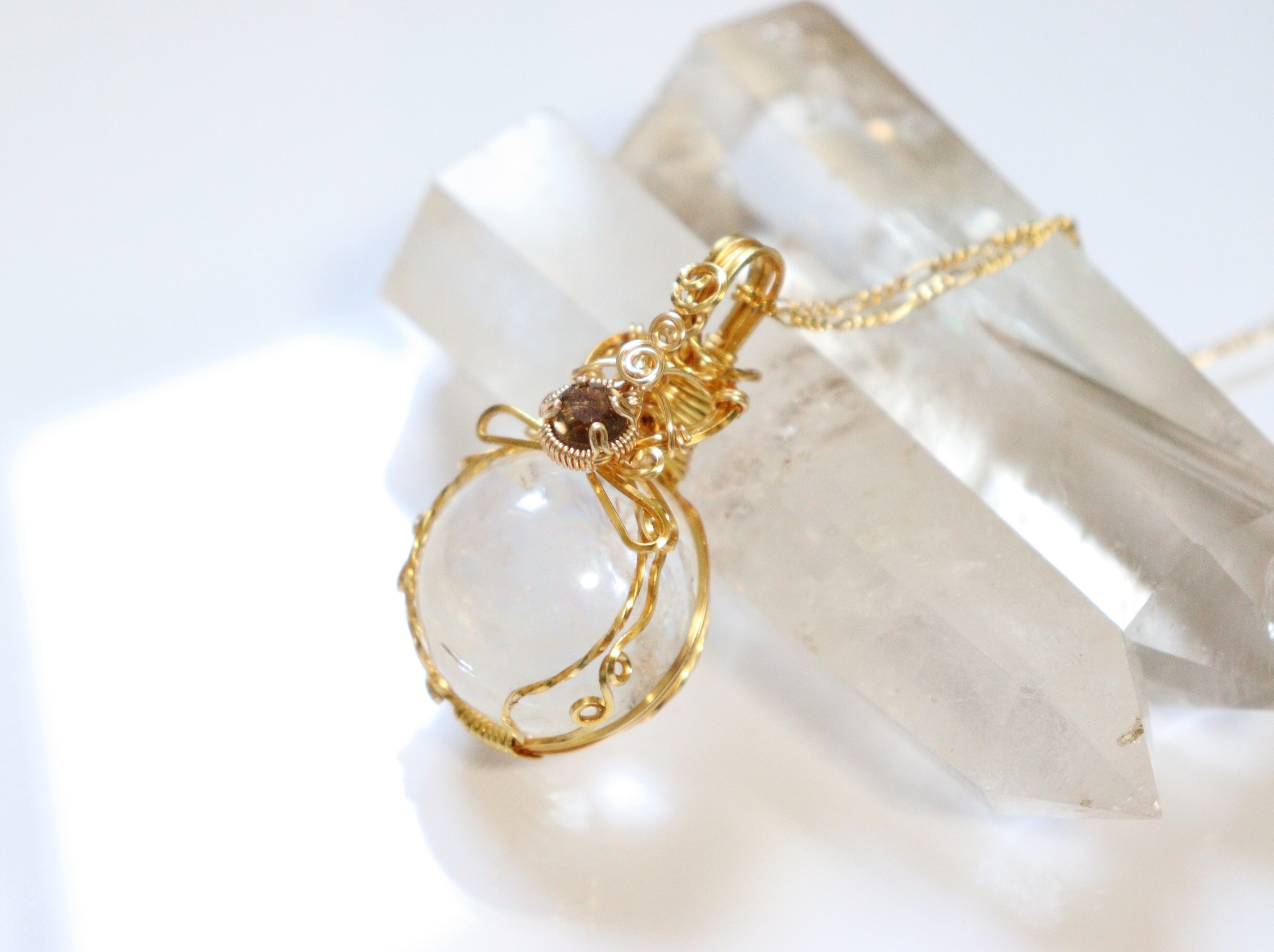 アイリスクォーツ(虹水晶)とスモーキークォーツのワイヤージュエリーネックレス✧