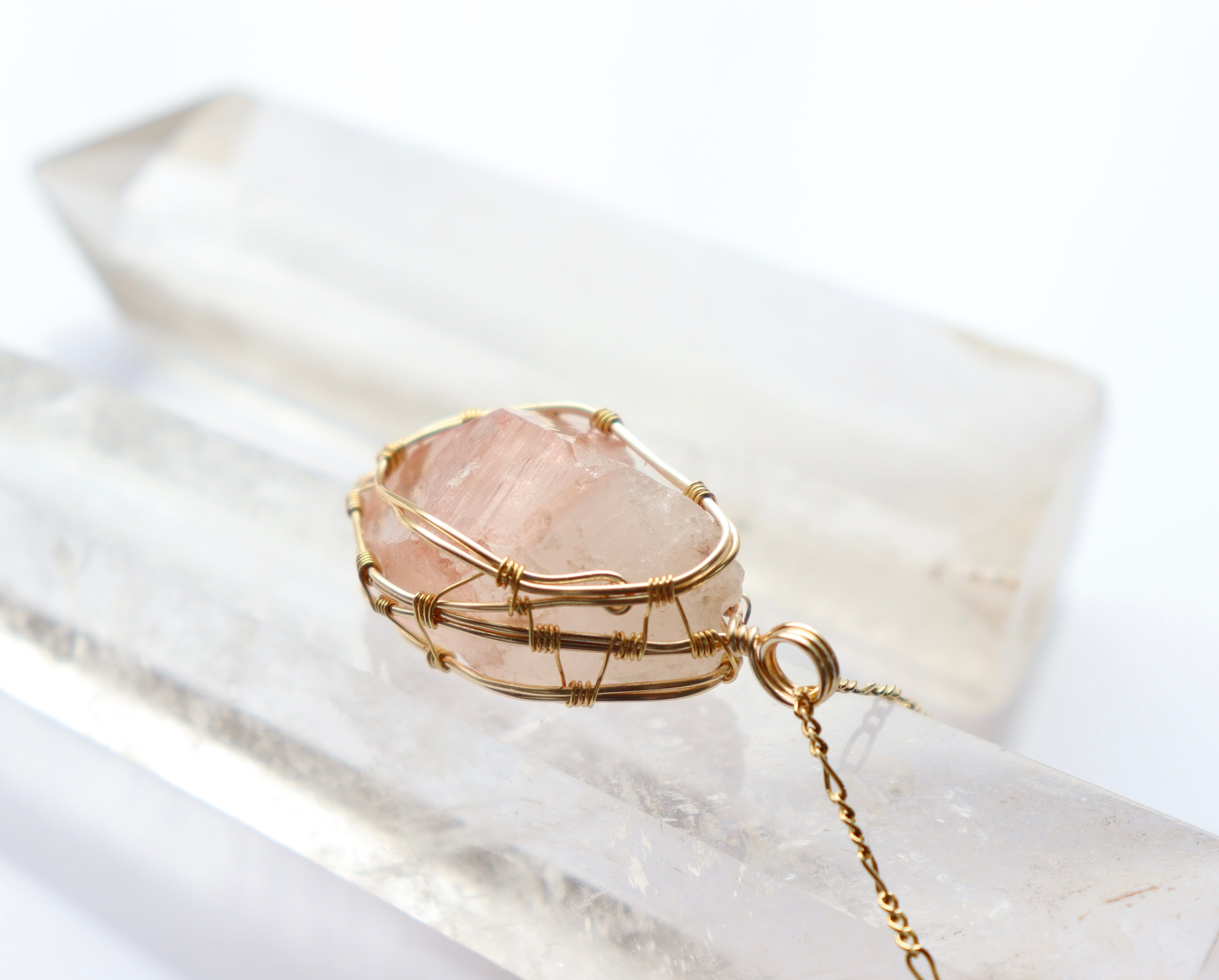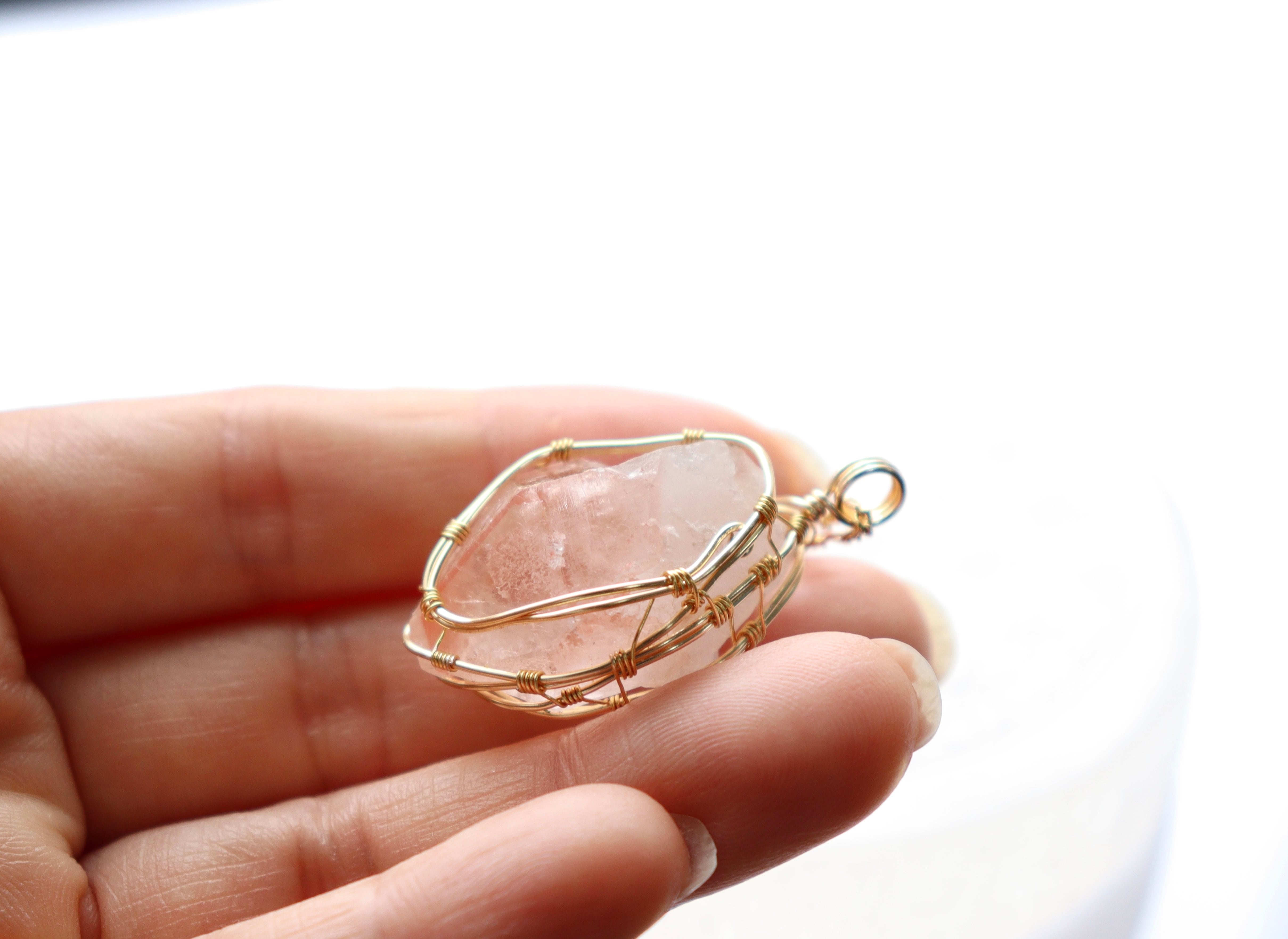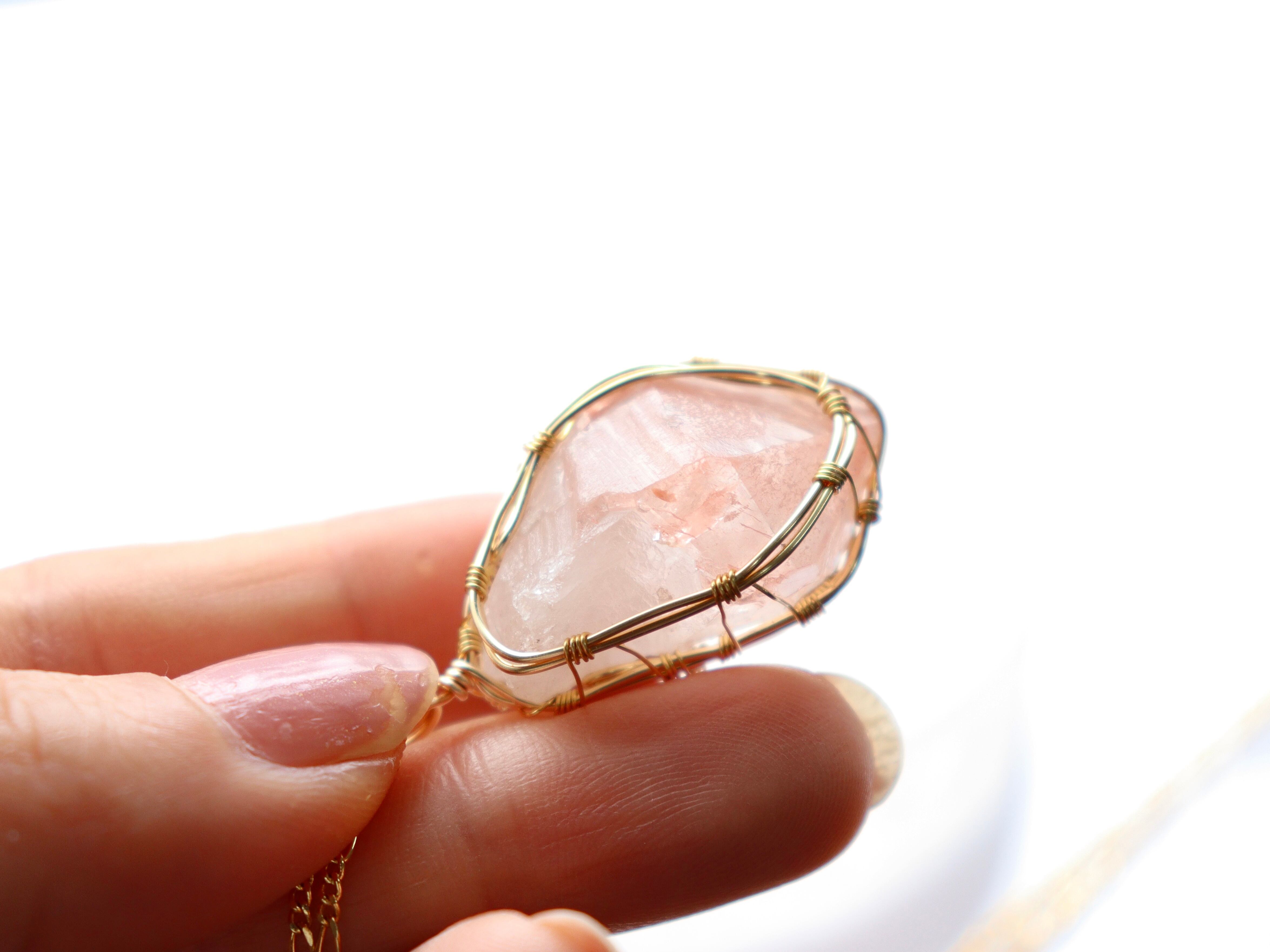 ピンクレムリアンシードクリスタルのワイヤージュエリーネックレス✧天然石ペンダント