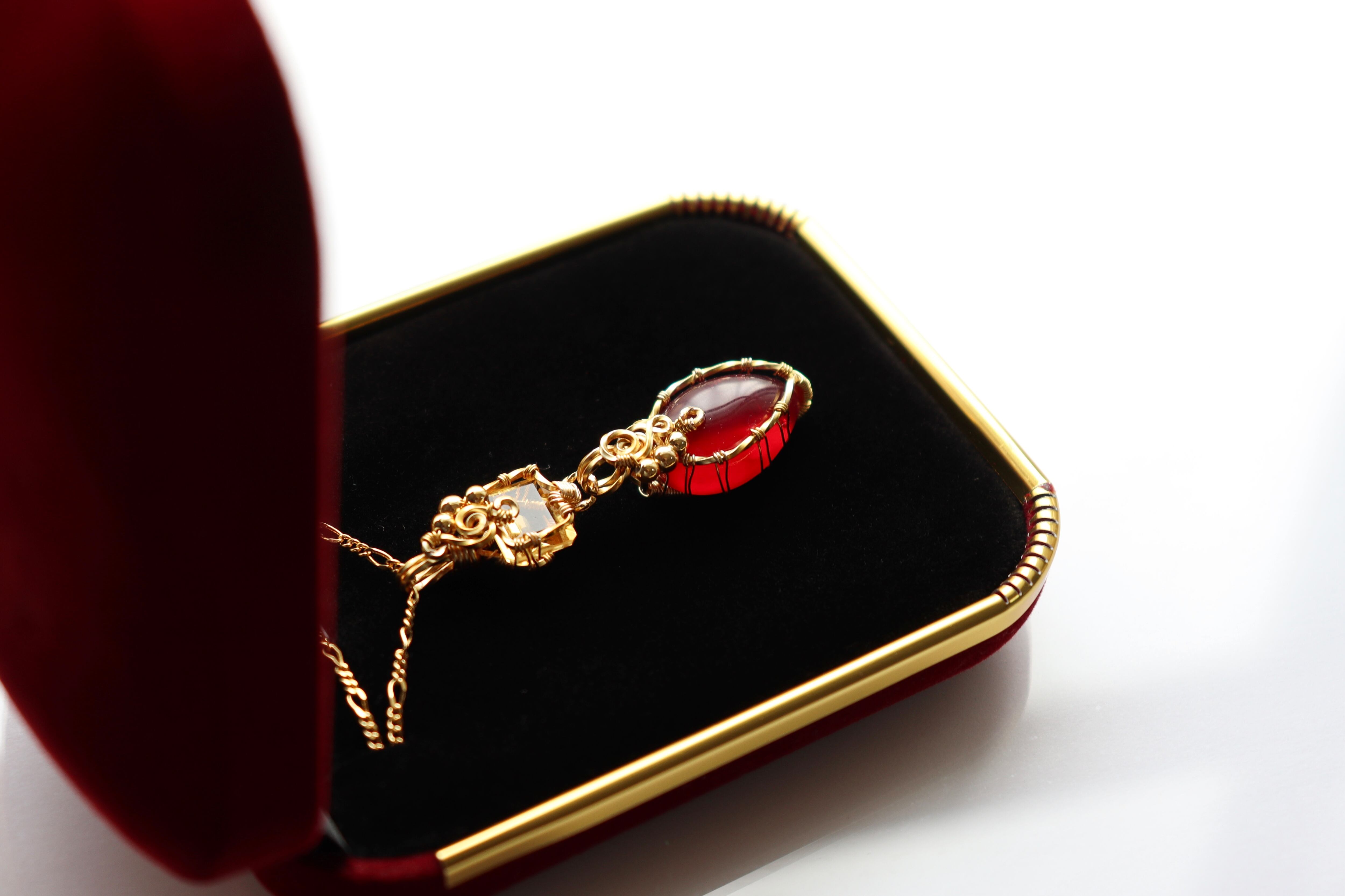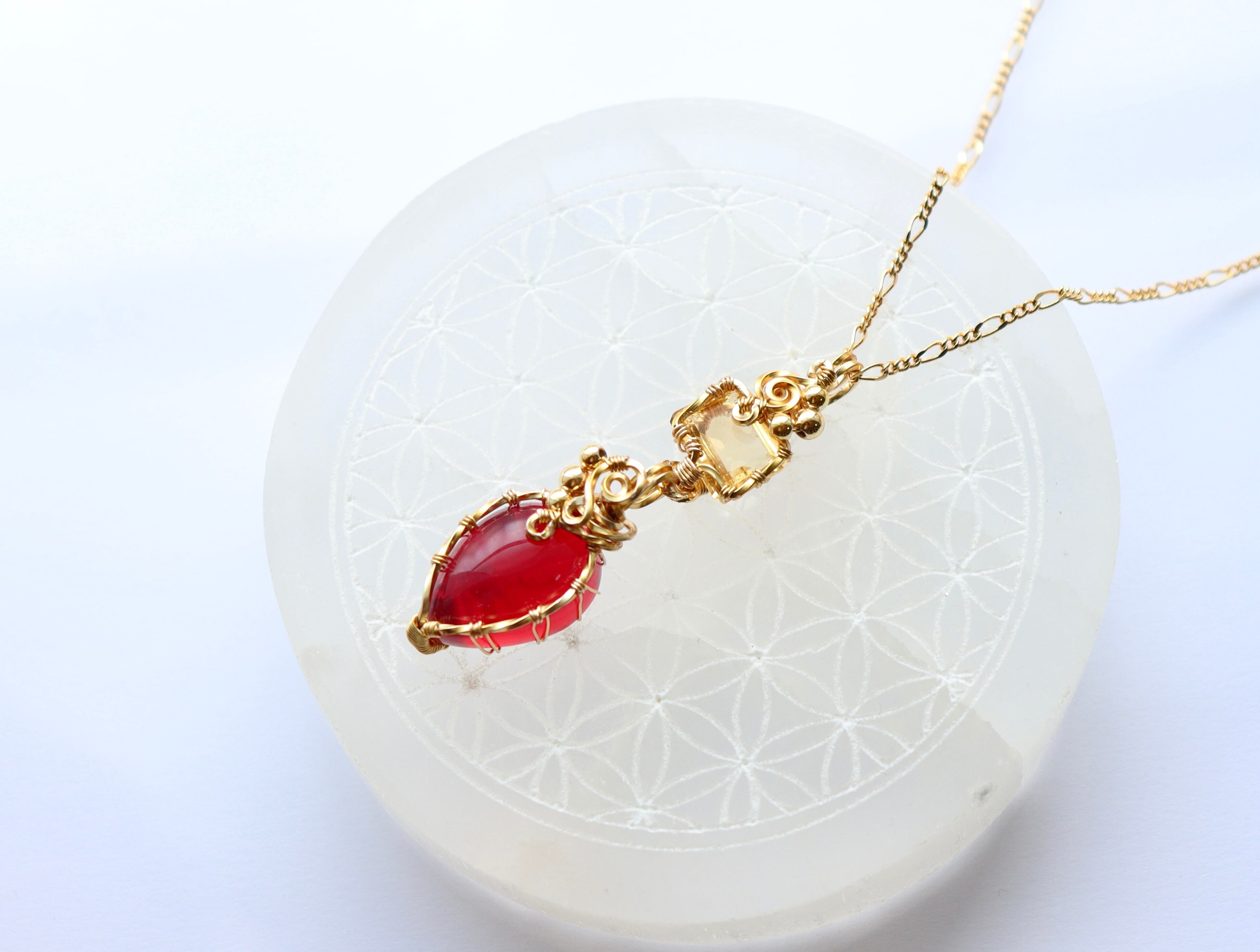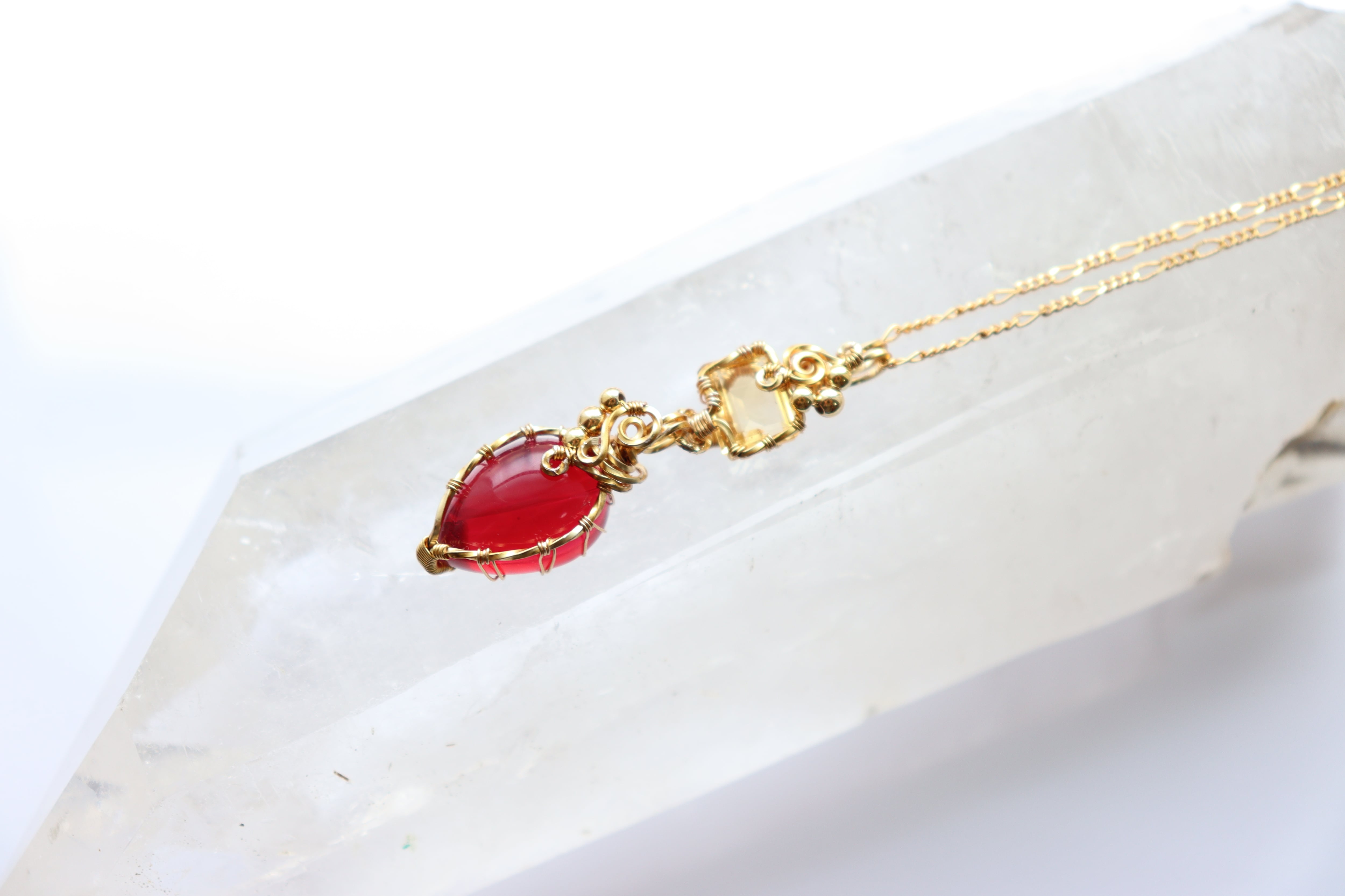 アンダラクリスタルとシトリンのワイヤージュエリーネックレス✧レッド ペンダント