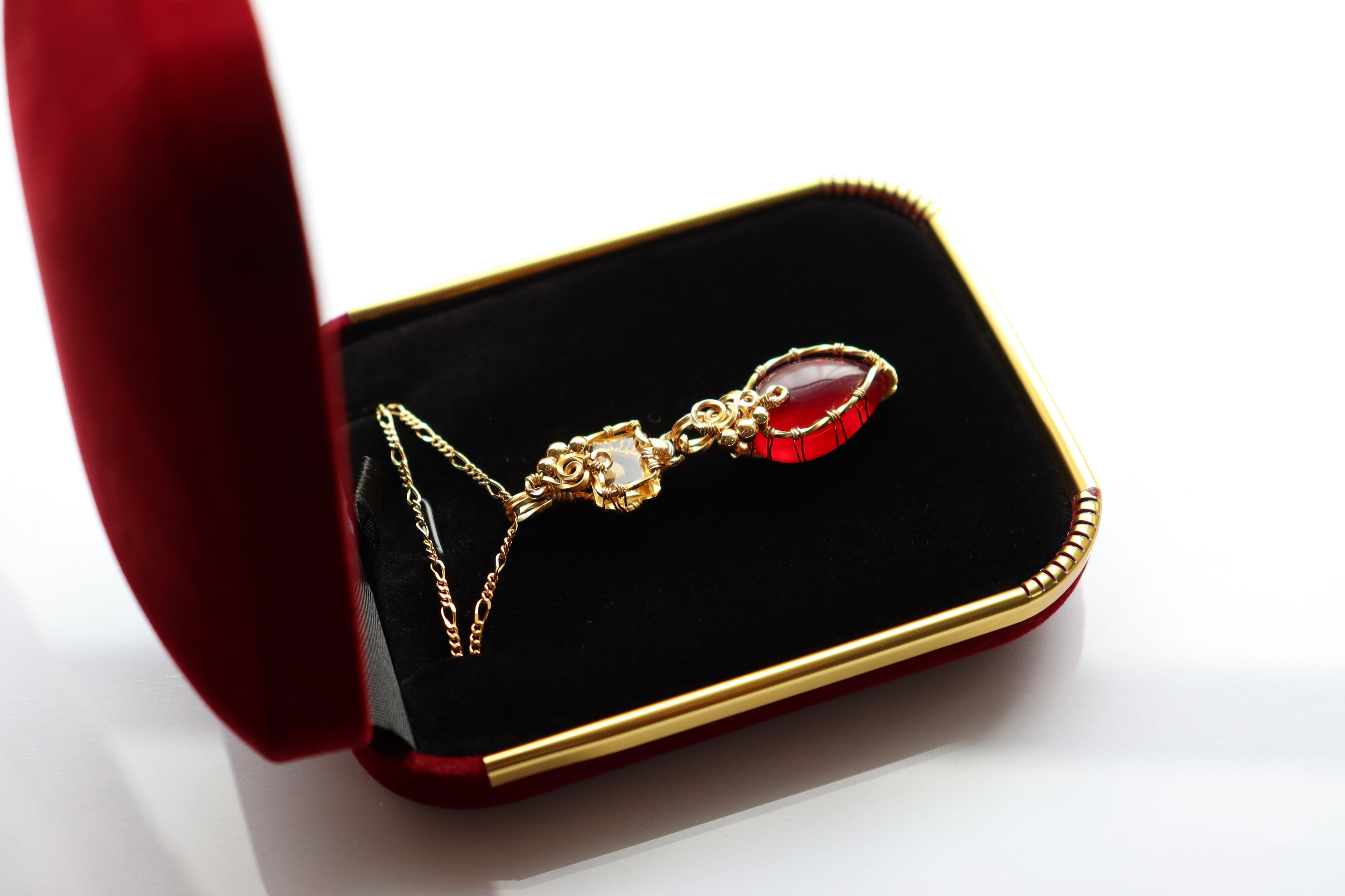 濃厚な赤に微細なマゼンタが溶け込む、贅沢な色彩がもたらす洗練された美しさが魅力なアンダラクリスタル〝 フォルテ ヴェリタス 〟を使用した ワイヤージュエリーネックレスが誕生いたしました。