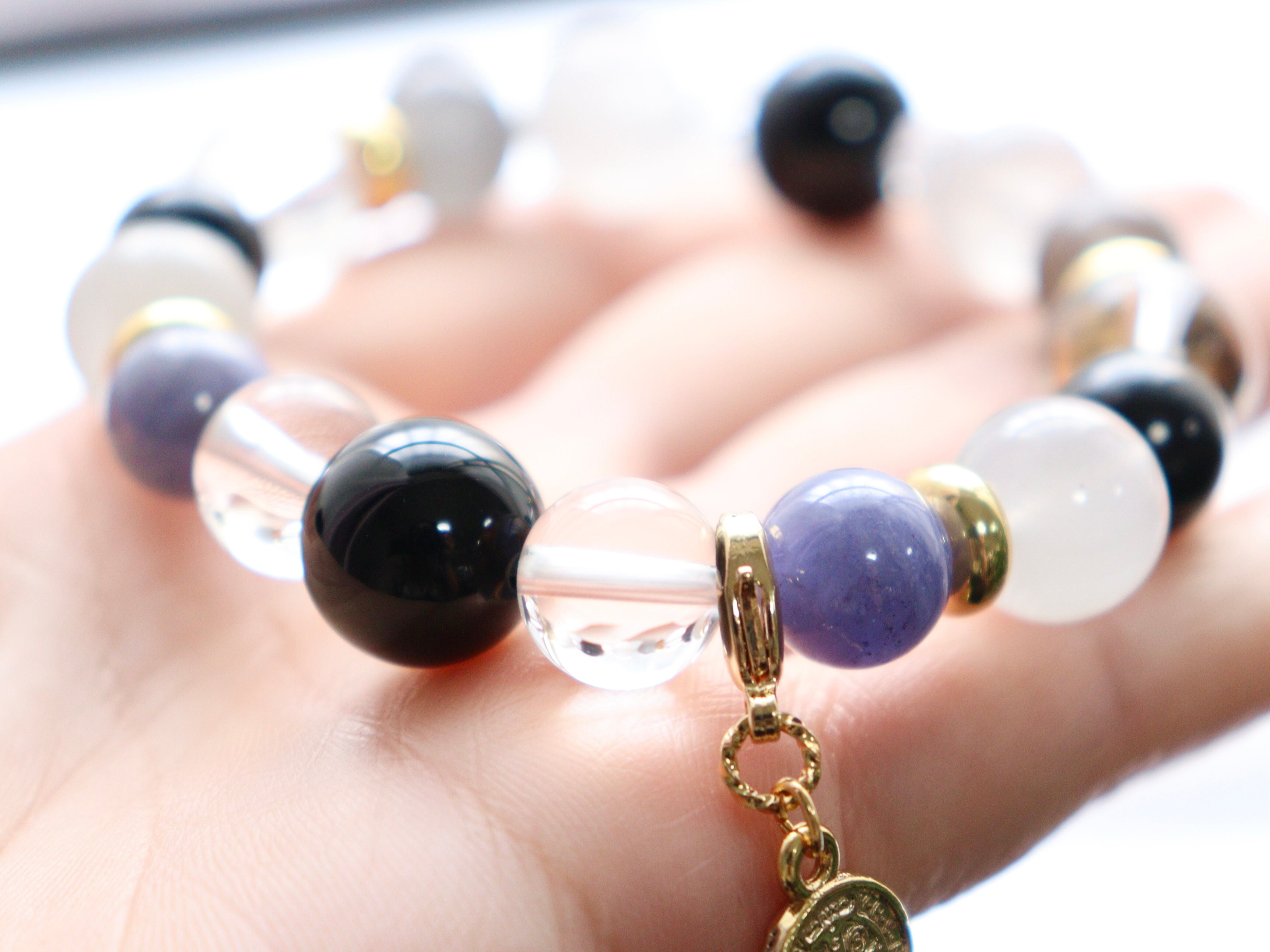 ブラックオニキスとタンザナイトの天然石ブレスレット︎︎⟡守護︎︎⟡デザインブレス