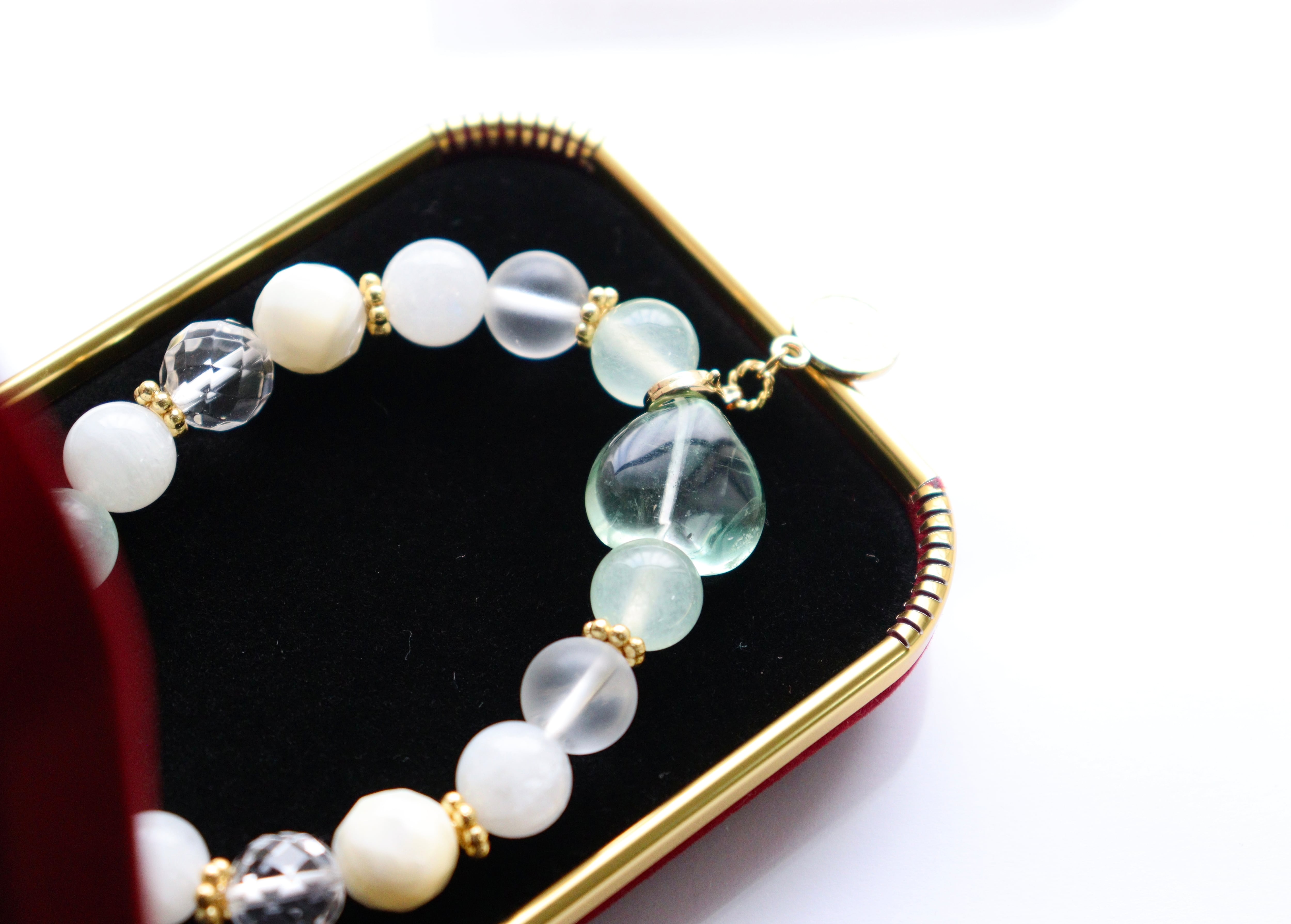神秘的に輝くブルームーンストーンと、爽やかなグリーンカルサイト、