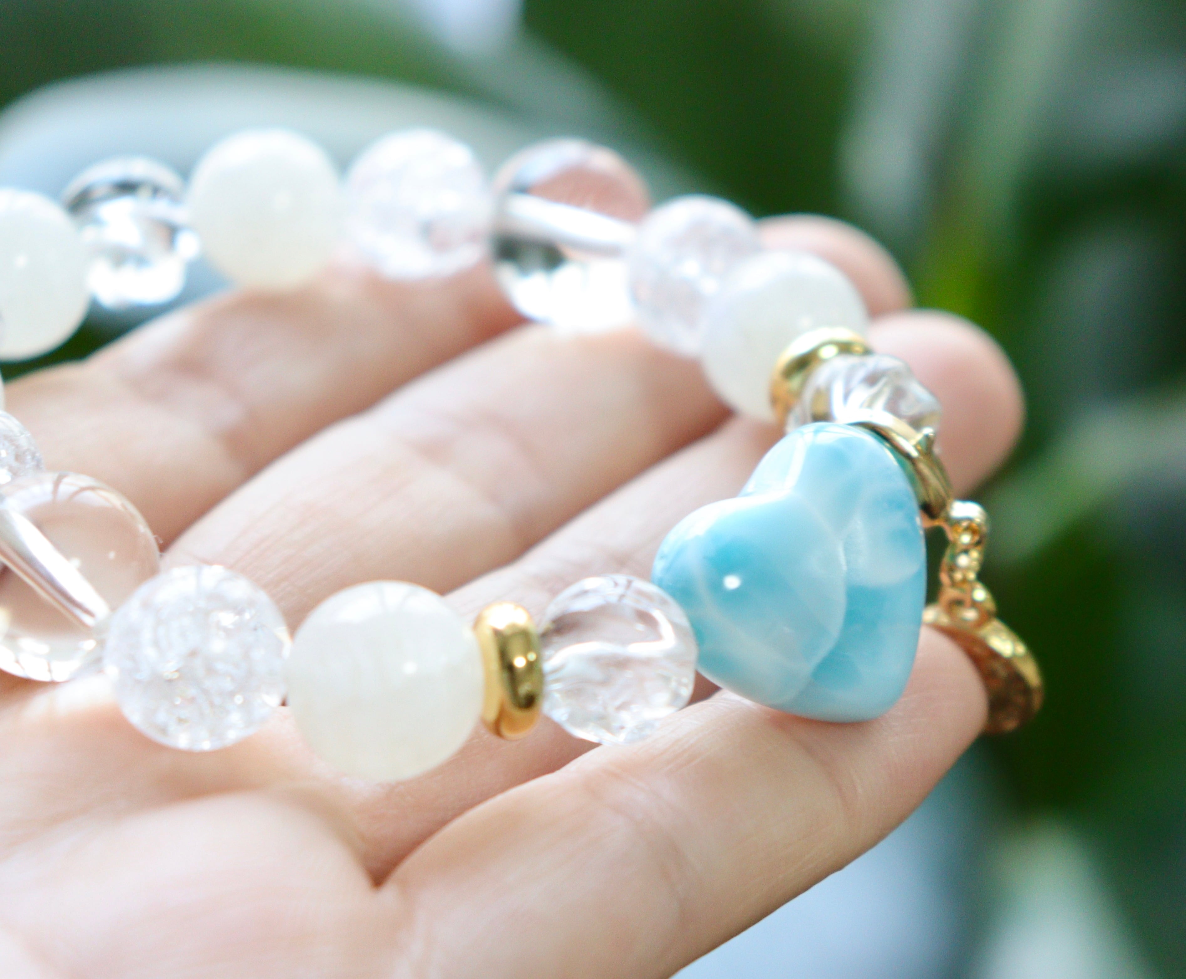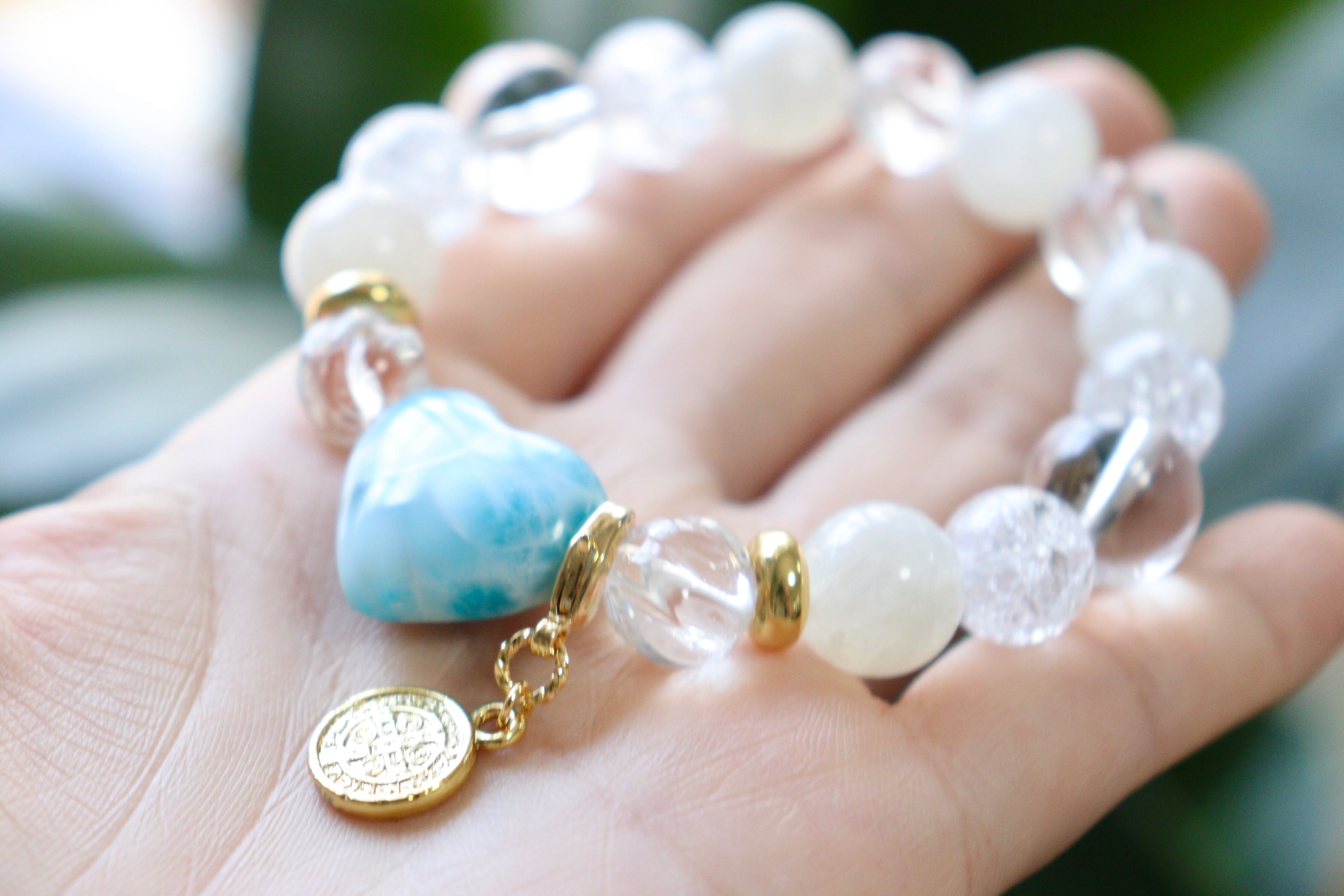 ハートラリマーとブルームストーンの天然石ブレスレット︎︎⟡愛と平和ヒーリングストーン