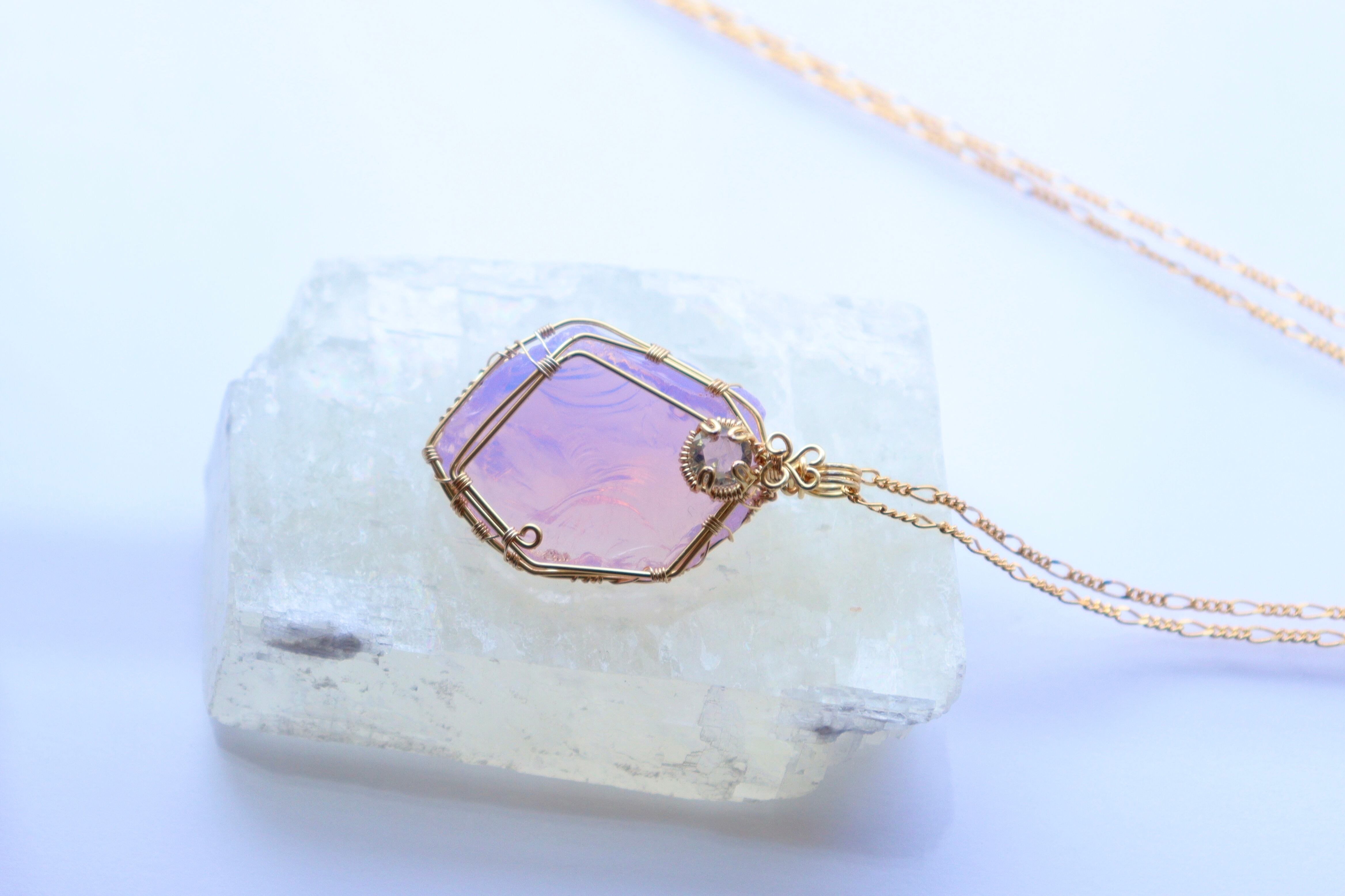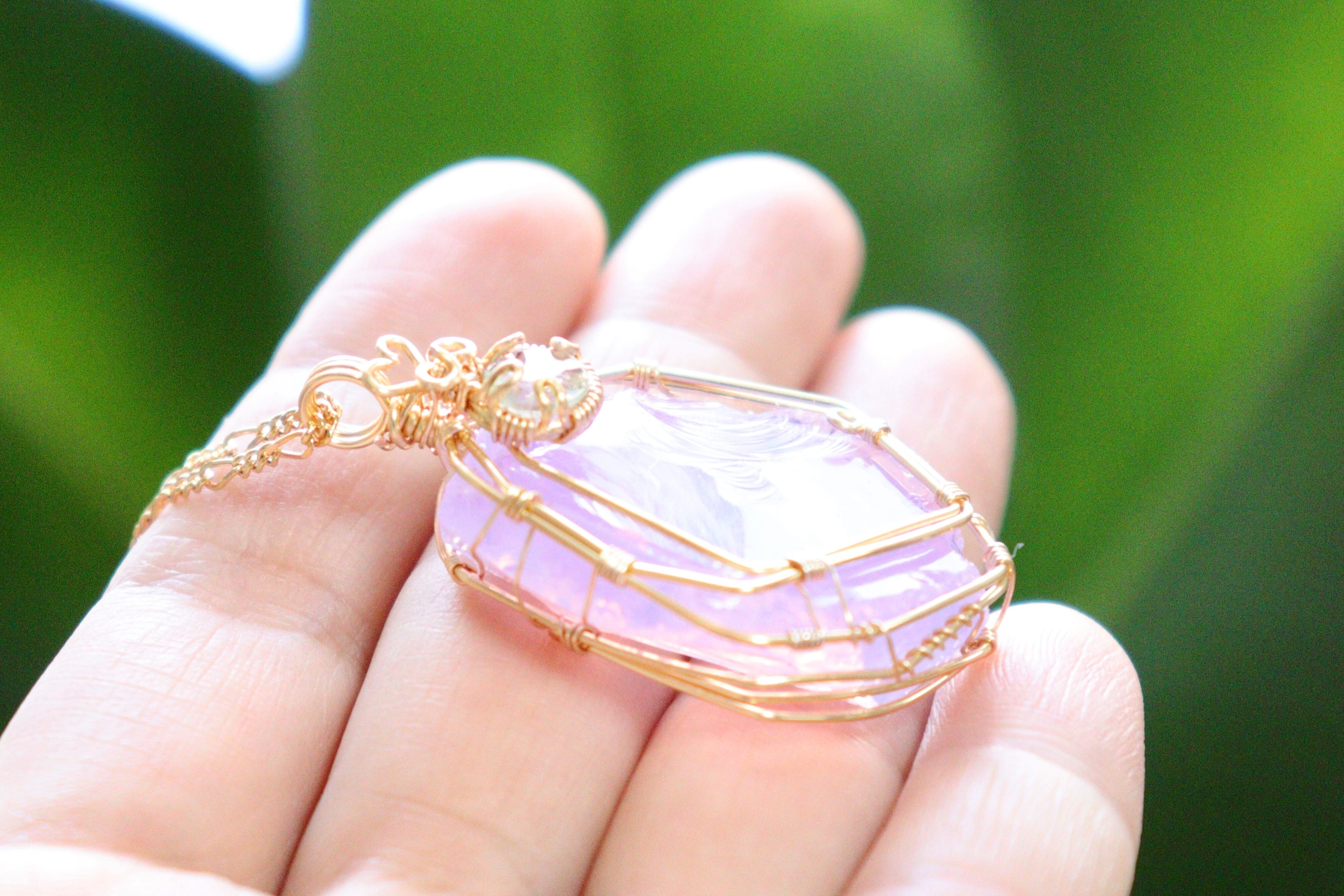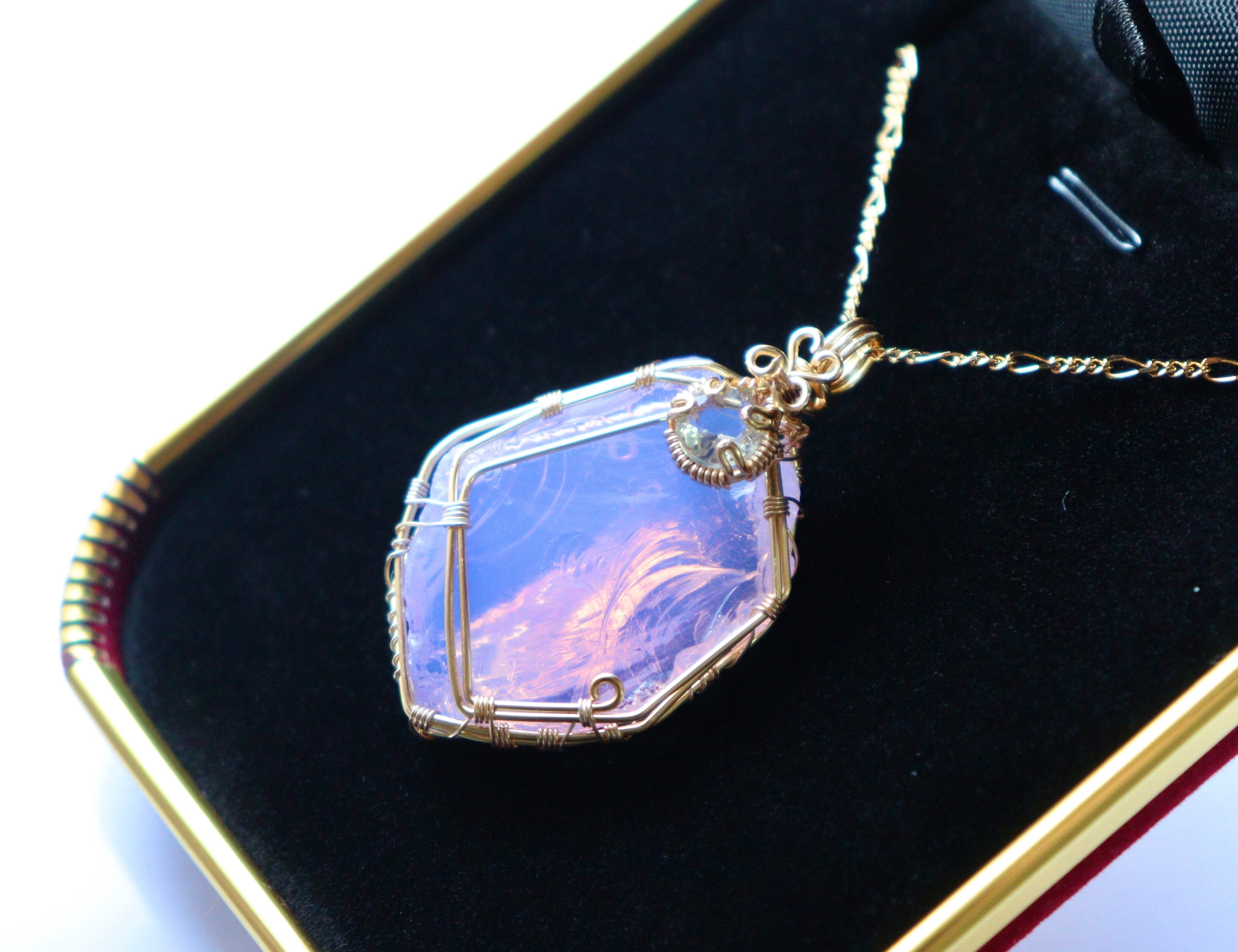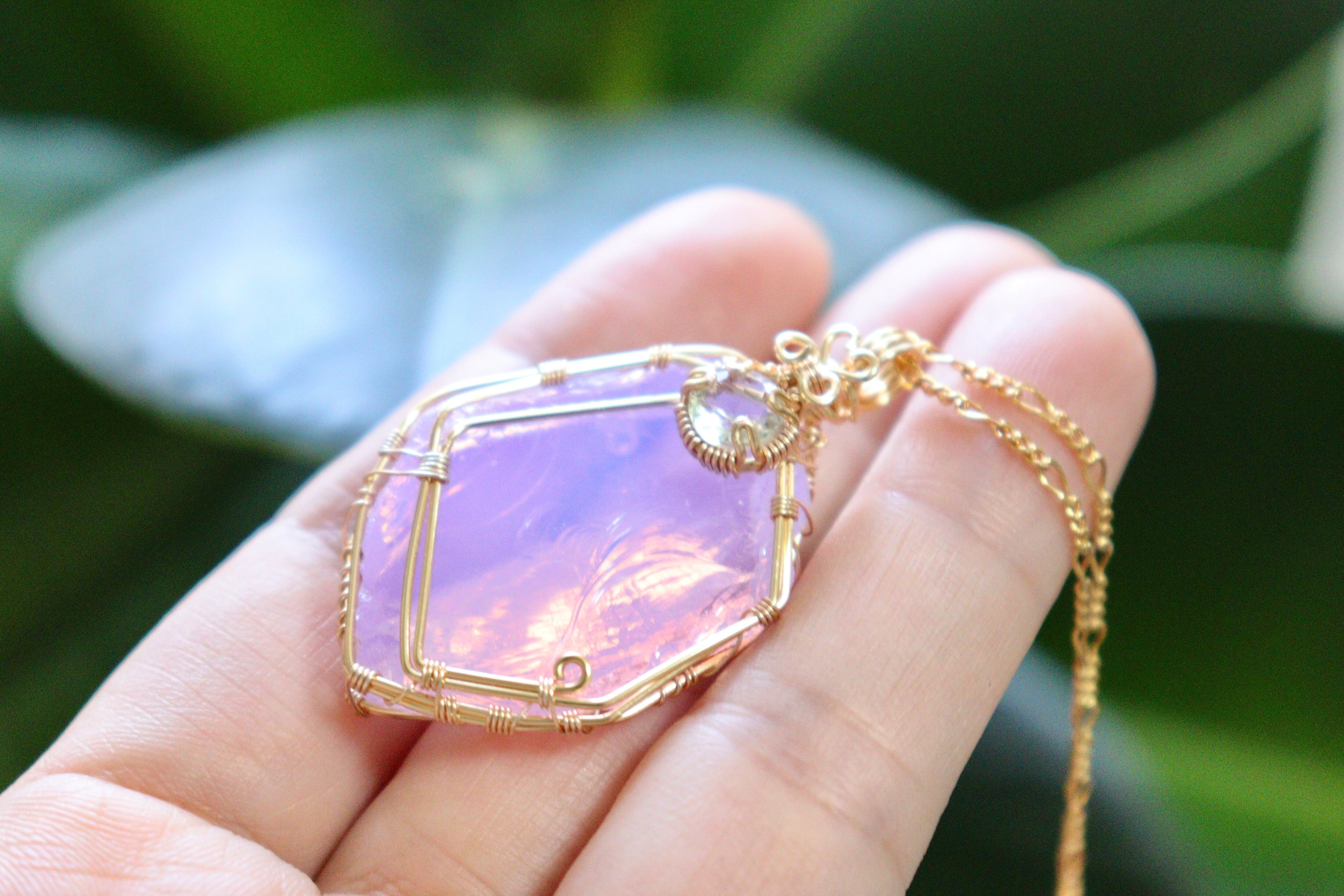 アンダラクリスタル︎︎⟡ワイヤージュエリーネックレス︎︎⟡ミルキーパープル ペンダント
