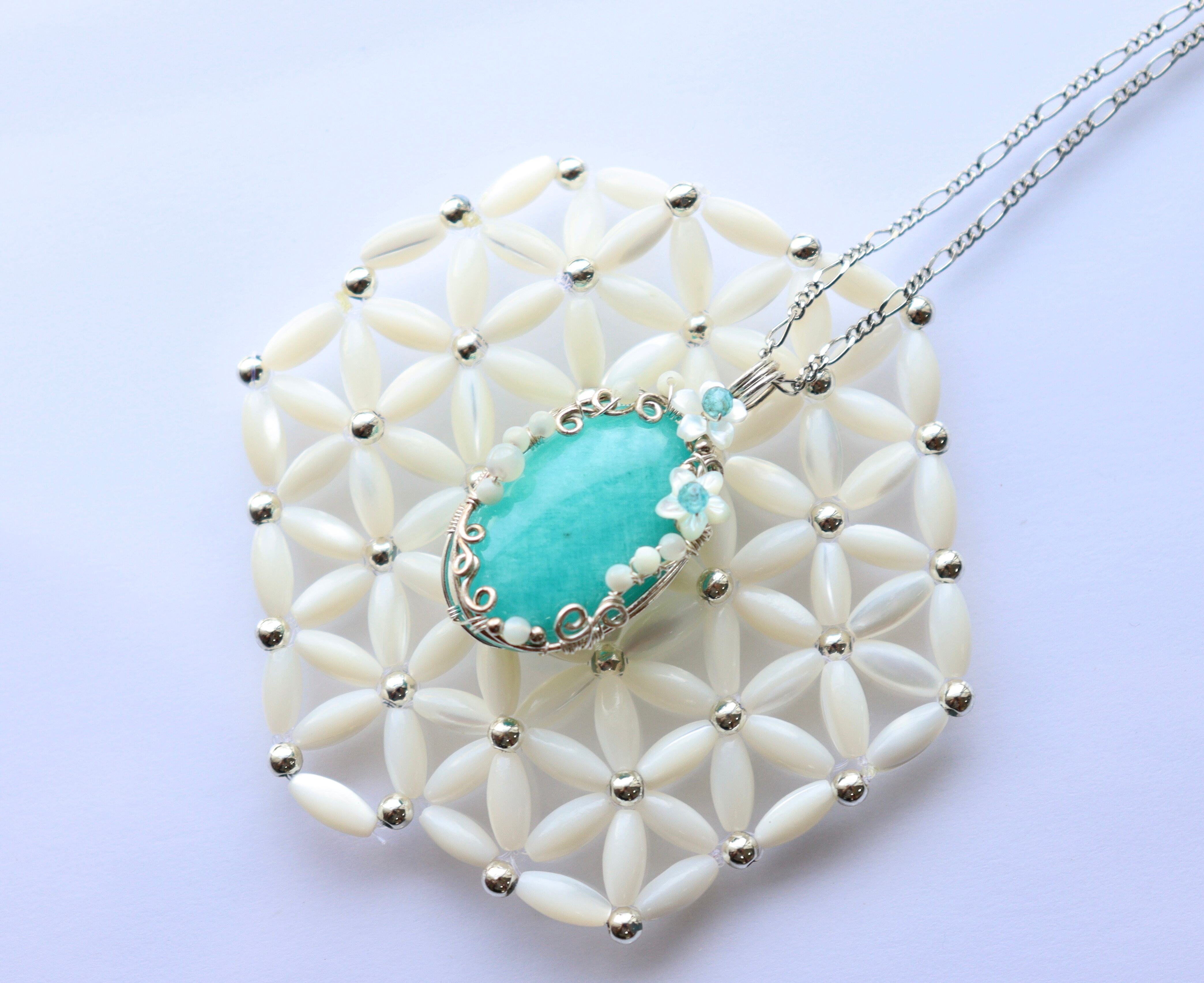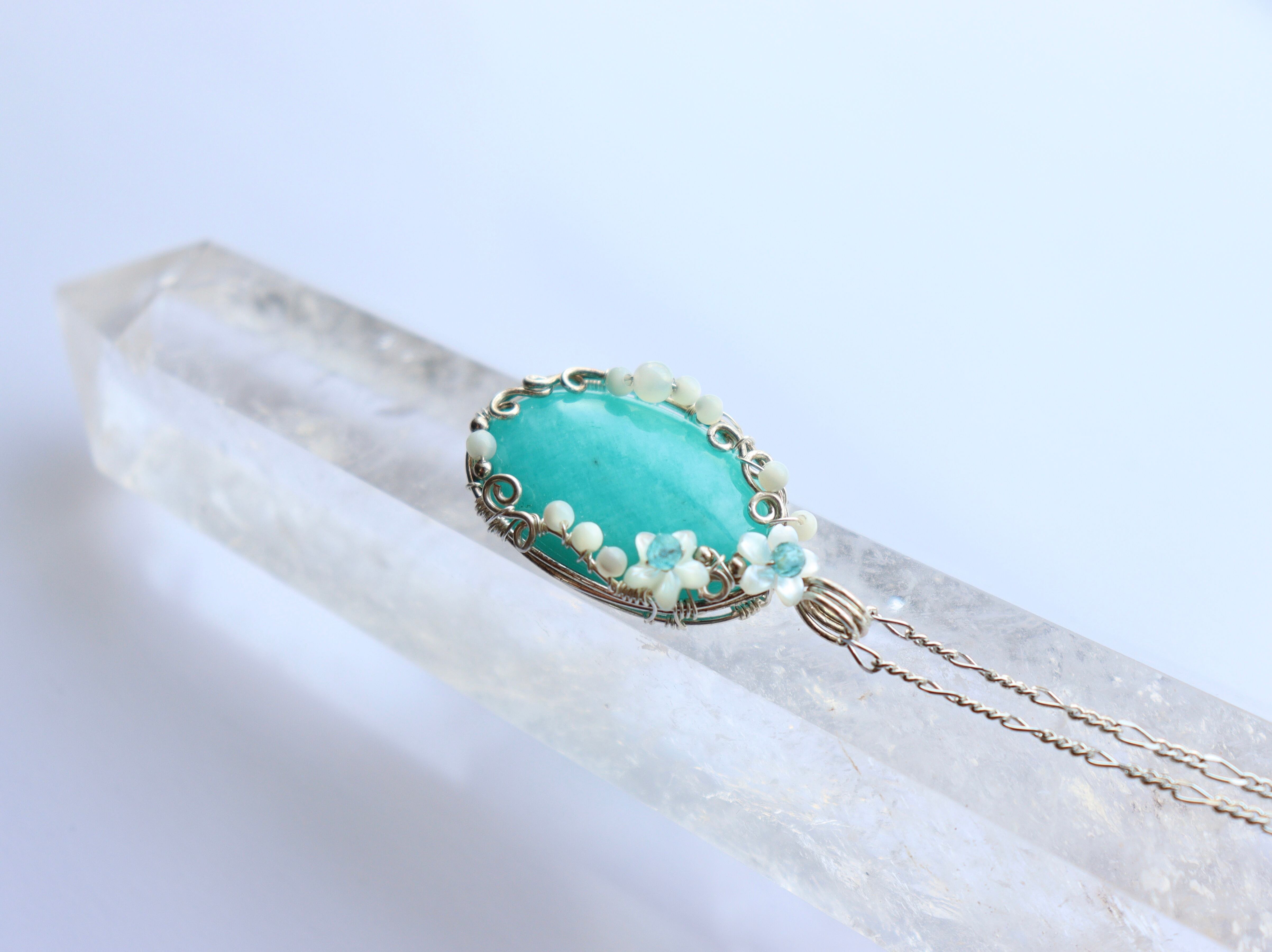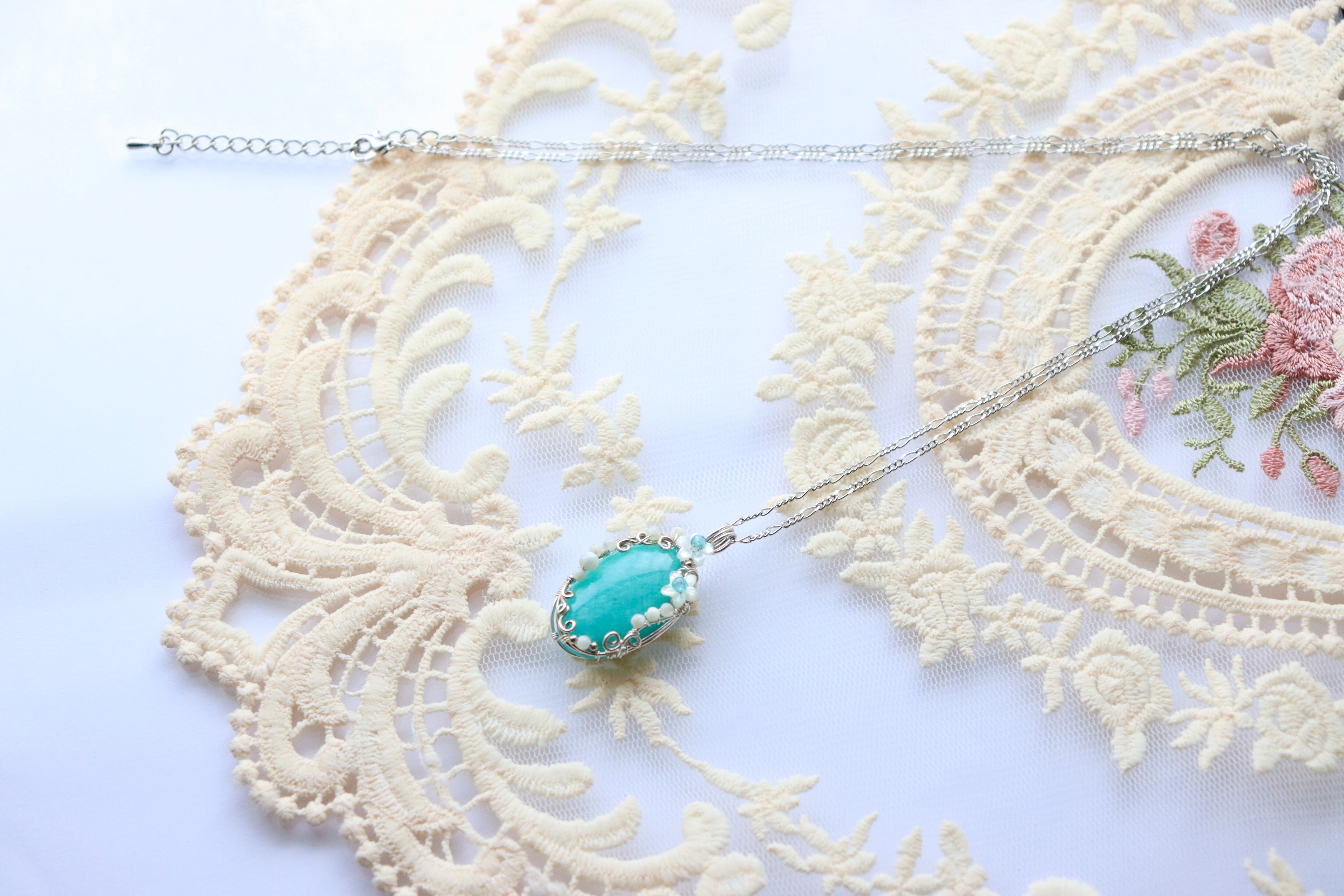 天然石アマゾナイトのワイヤージュエリーネックレス⟡ペンダント