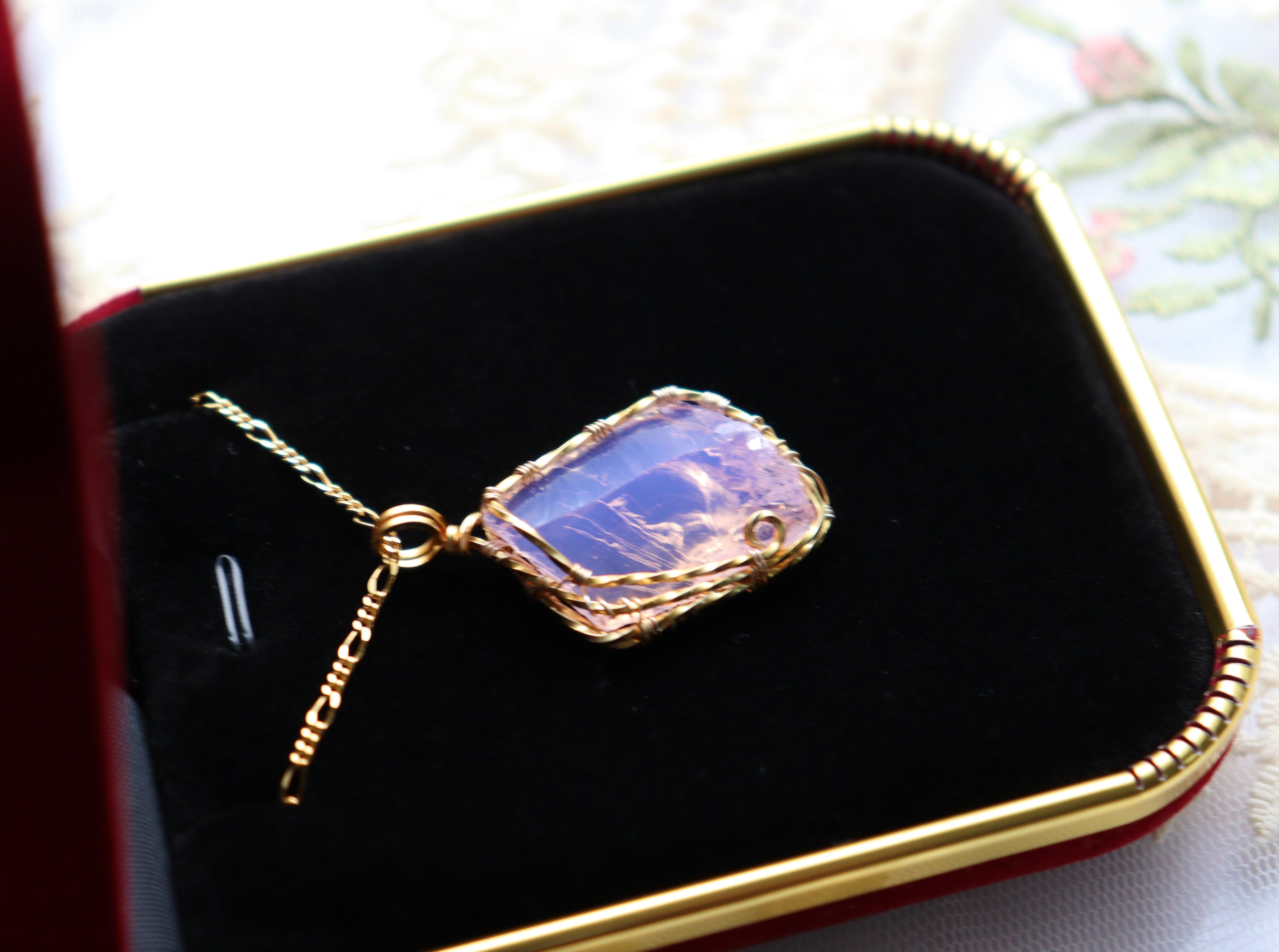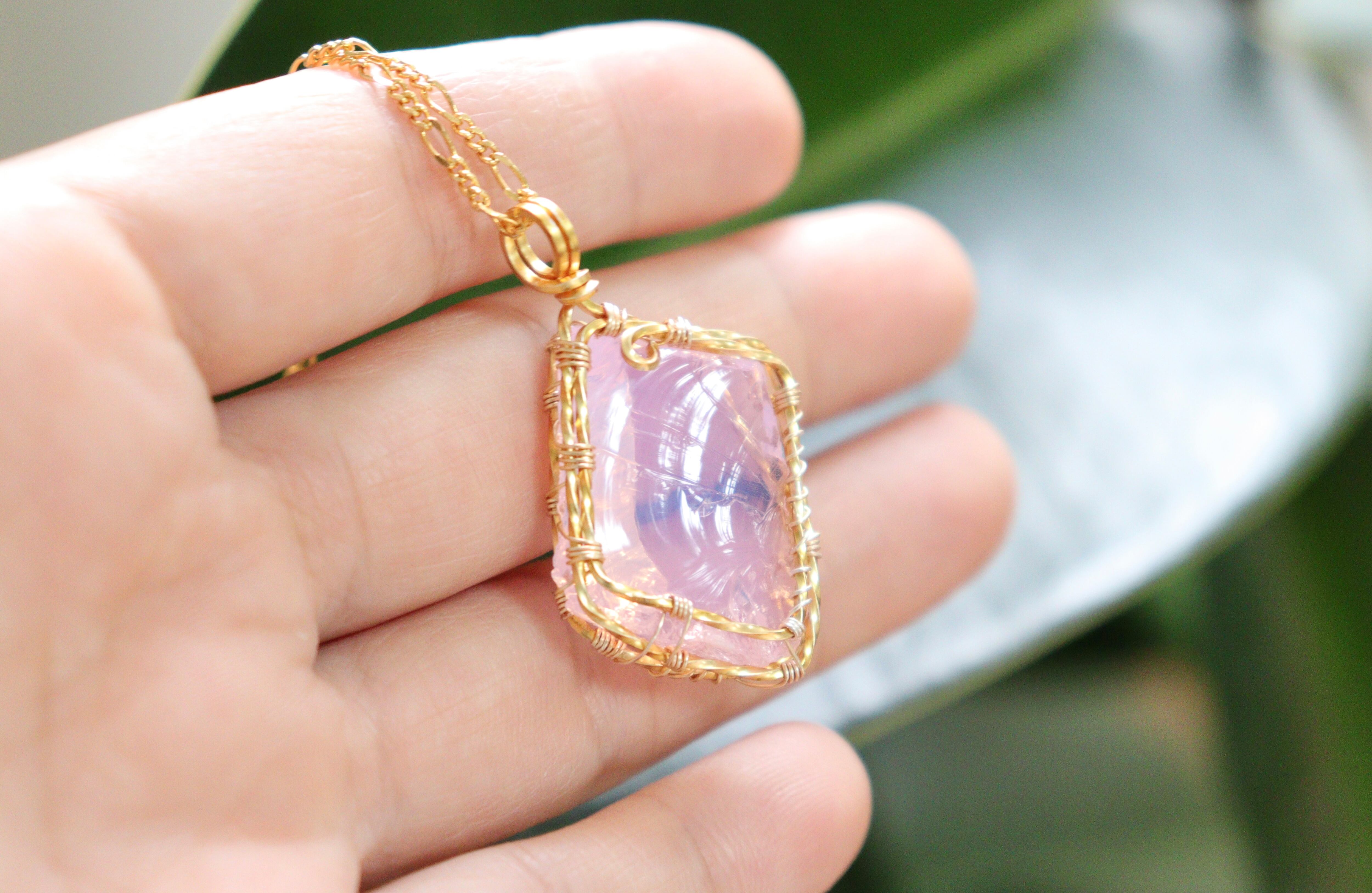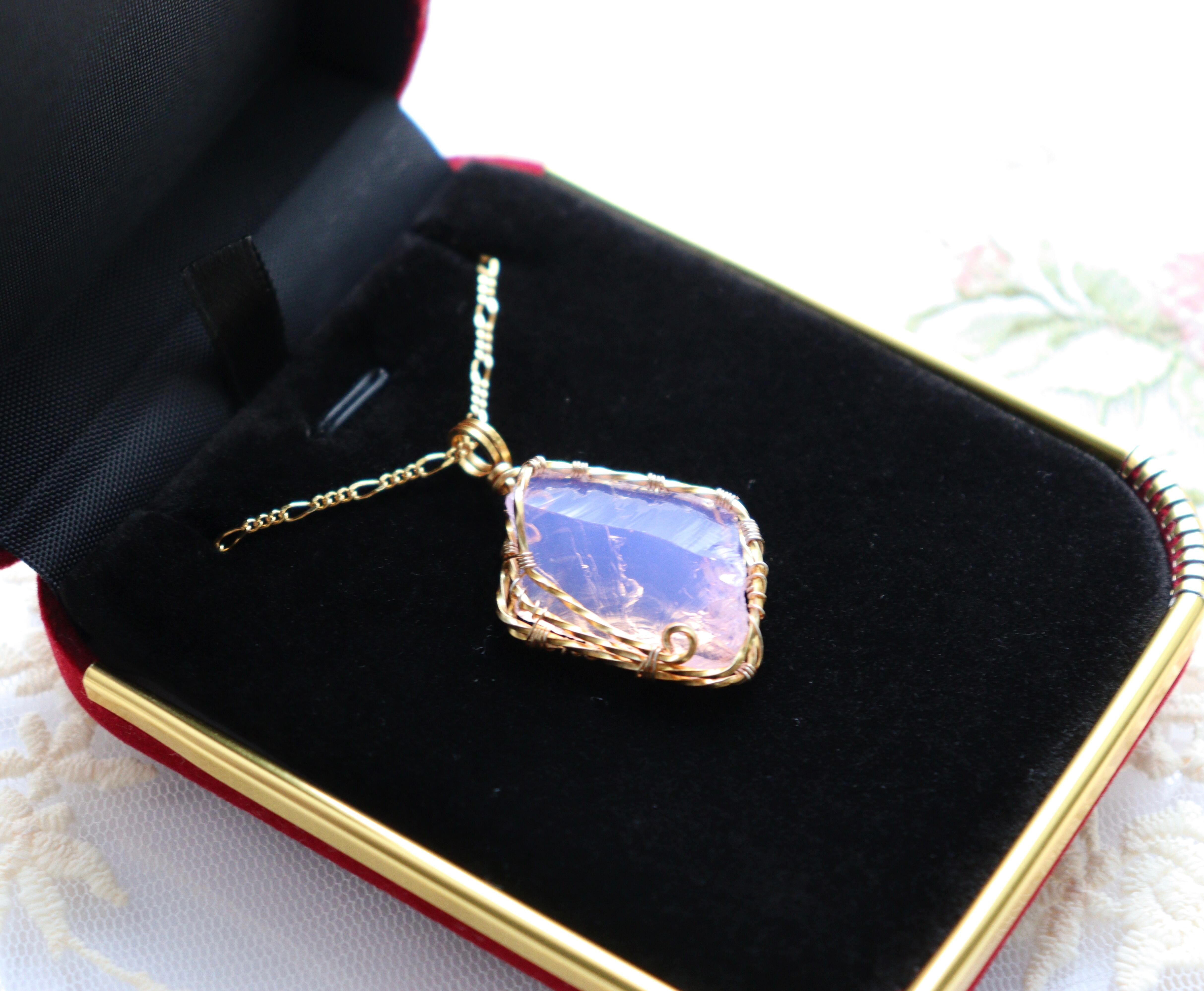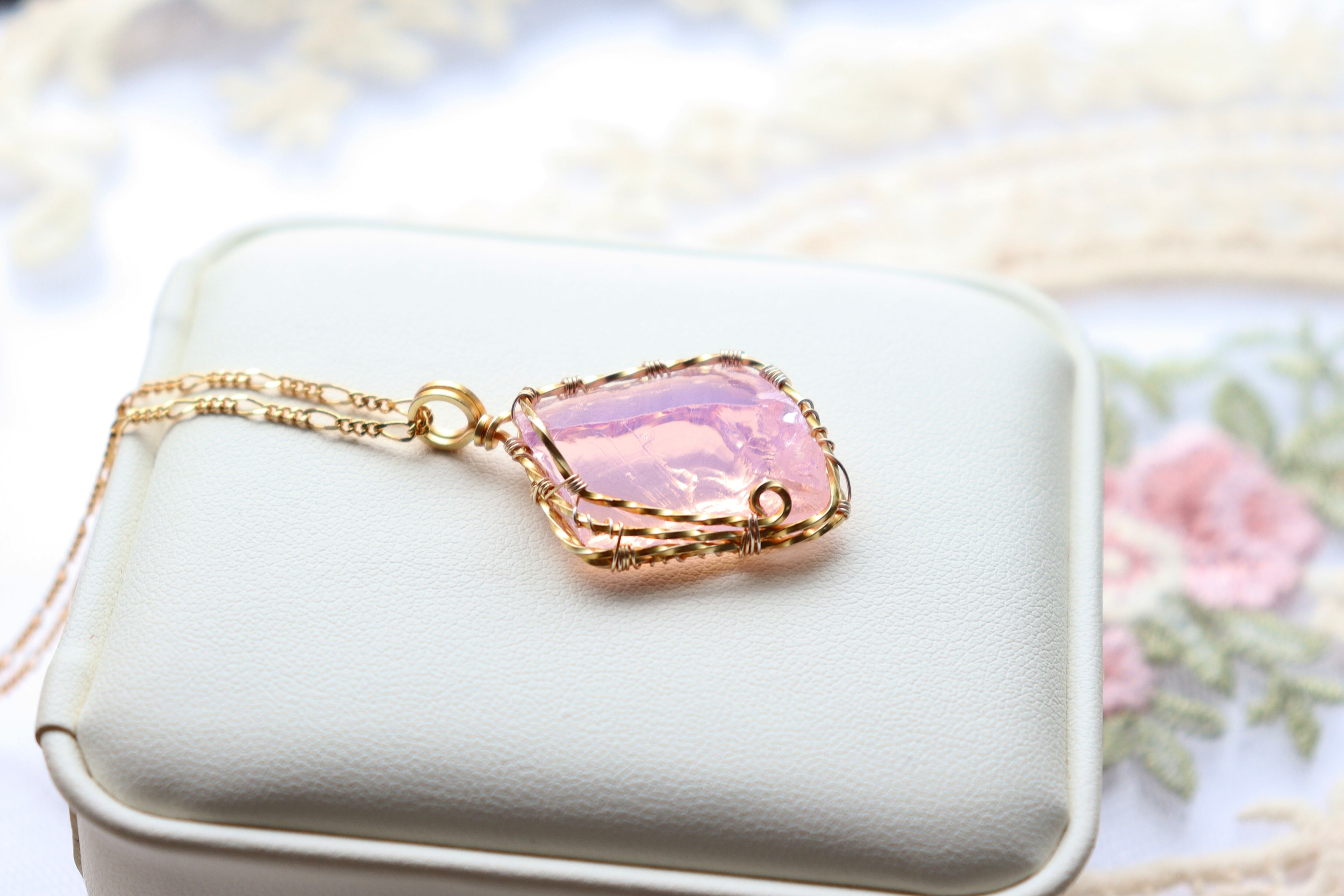 アンダラクリスタル︎︎ワイヤージュエリーネックレス⟡ミルキーピンク︎︎⟡天然石ペンダント