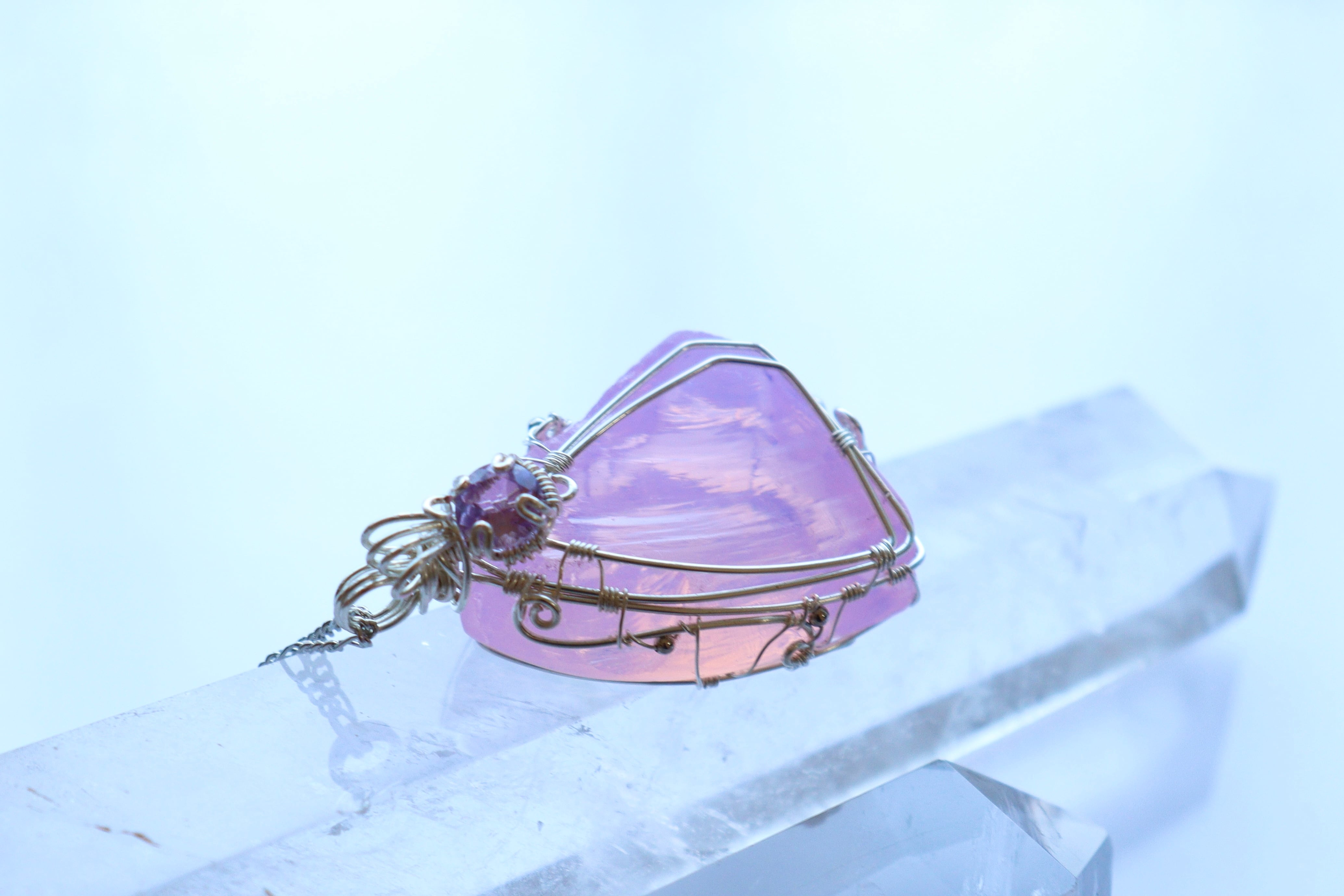 アンダラクリスタル(ミルキーピンク)× ピンクアメジストのワイヤージュエリーネックレス