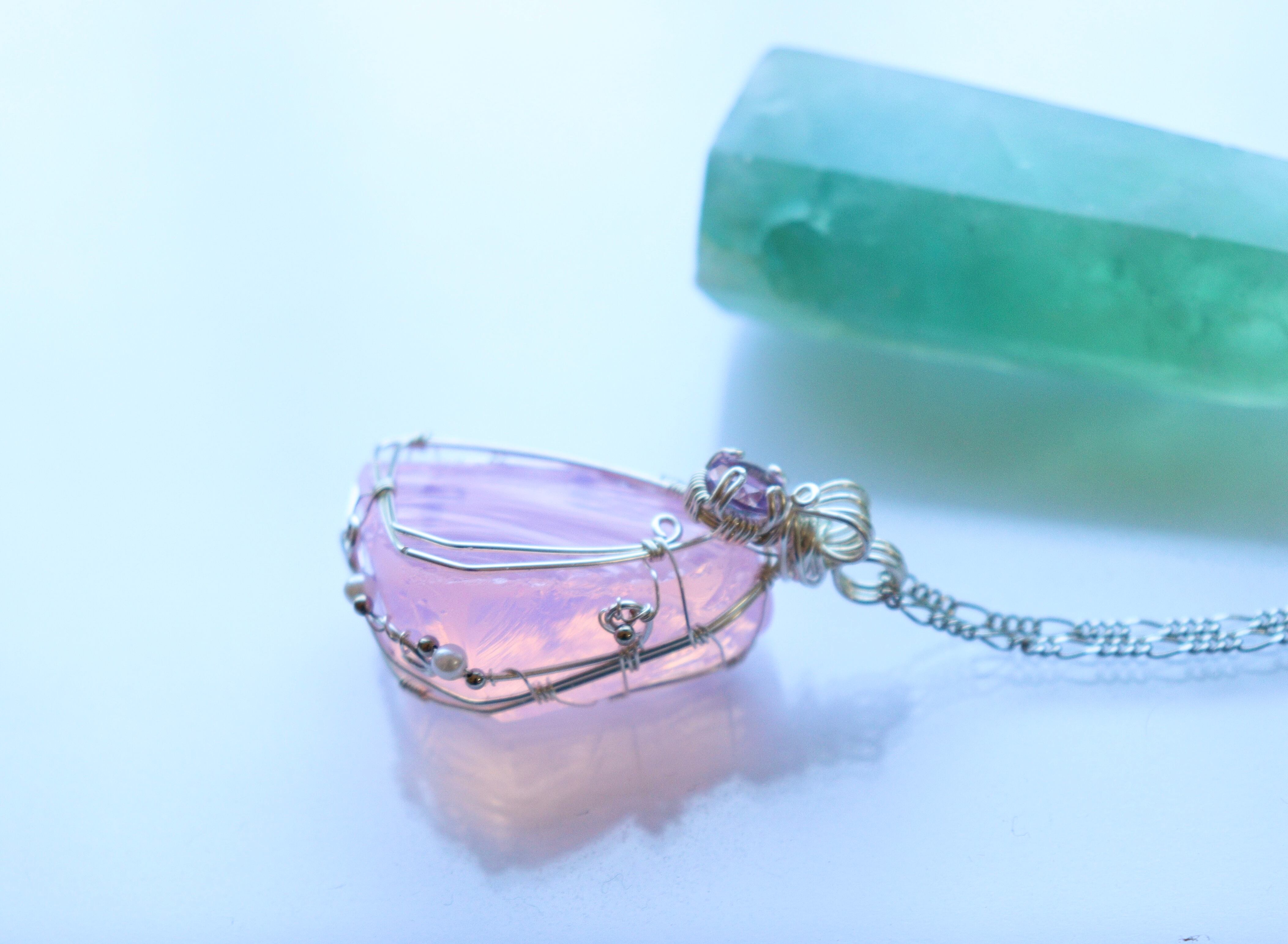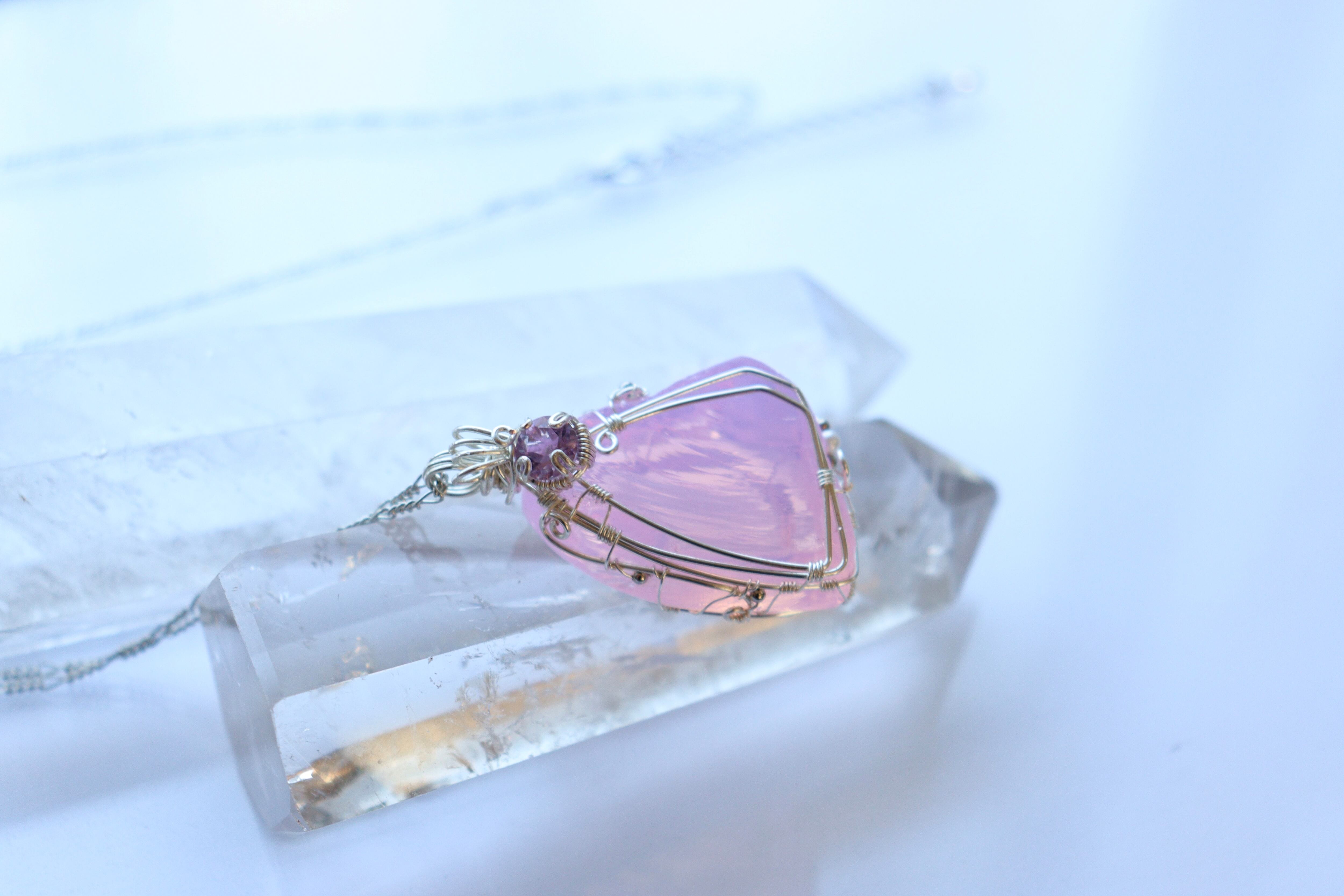 アンダラクリスタルのワイヤージュエリーネックレス︎︎⟡ミルキーピンク︎︎⟡ペンダント