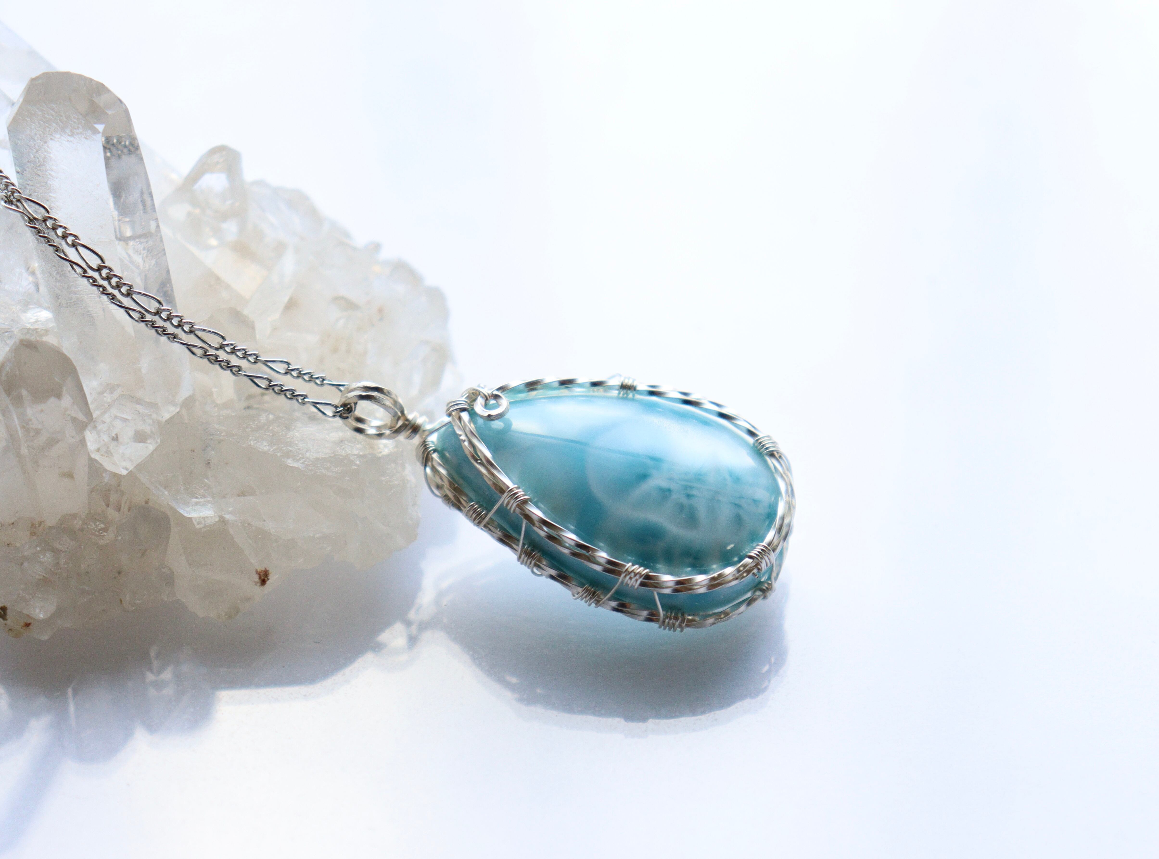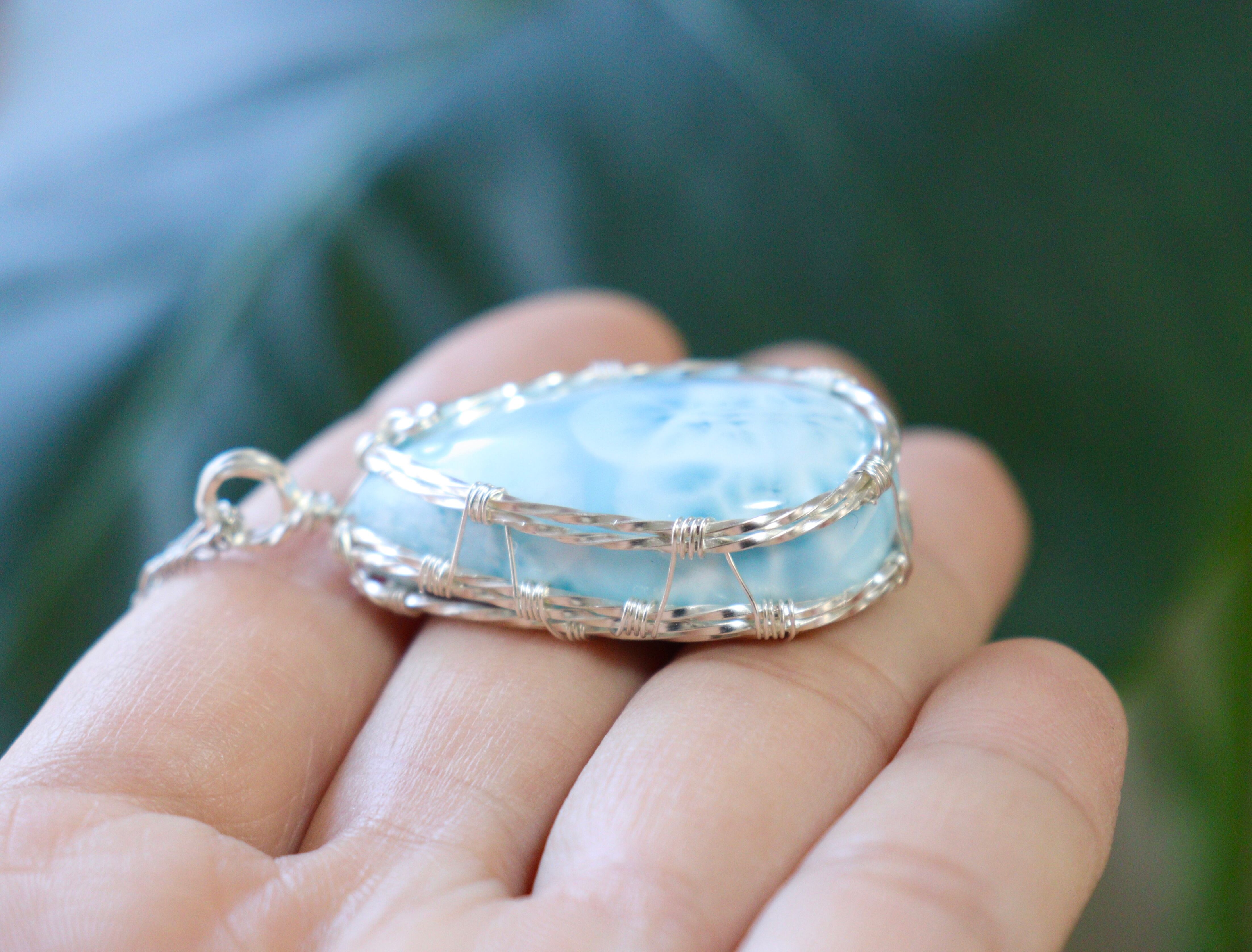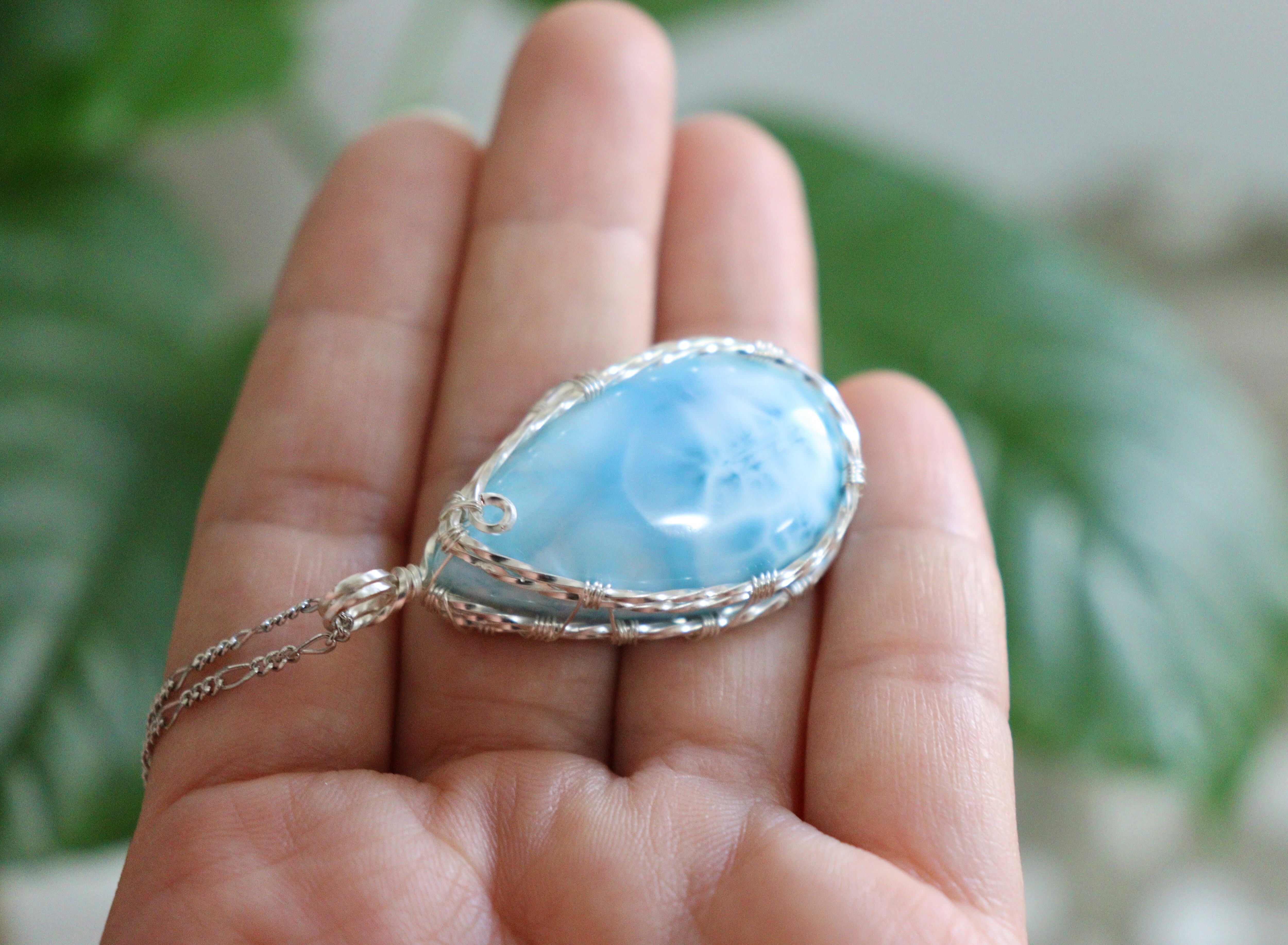 大粒ラリマーのワイヤージュエリーネックレス︎︎⟡天然石ペンダント︎︎⟡ヒーリングストーン