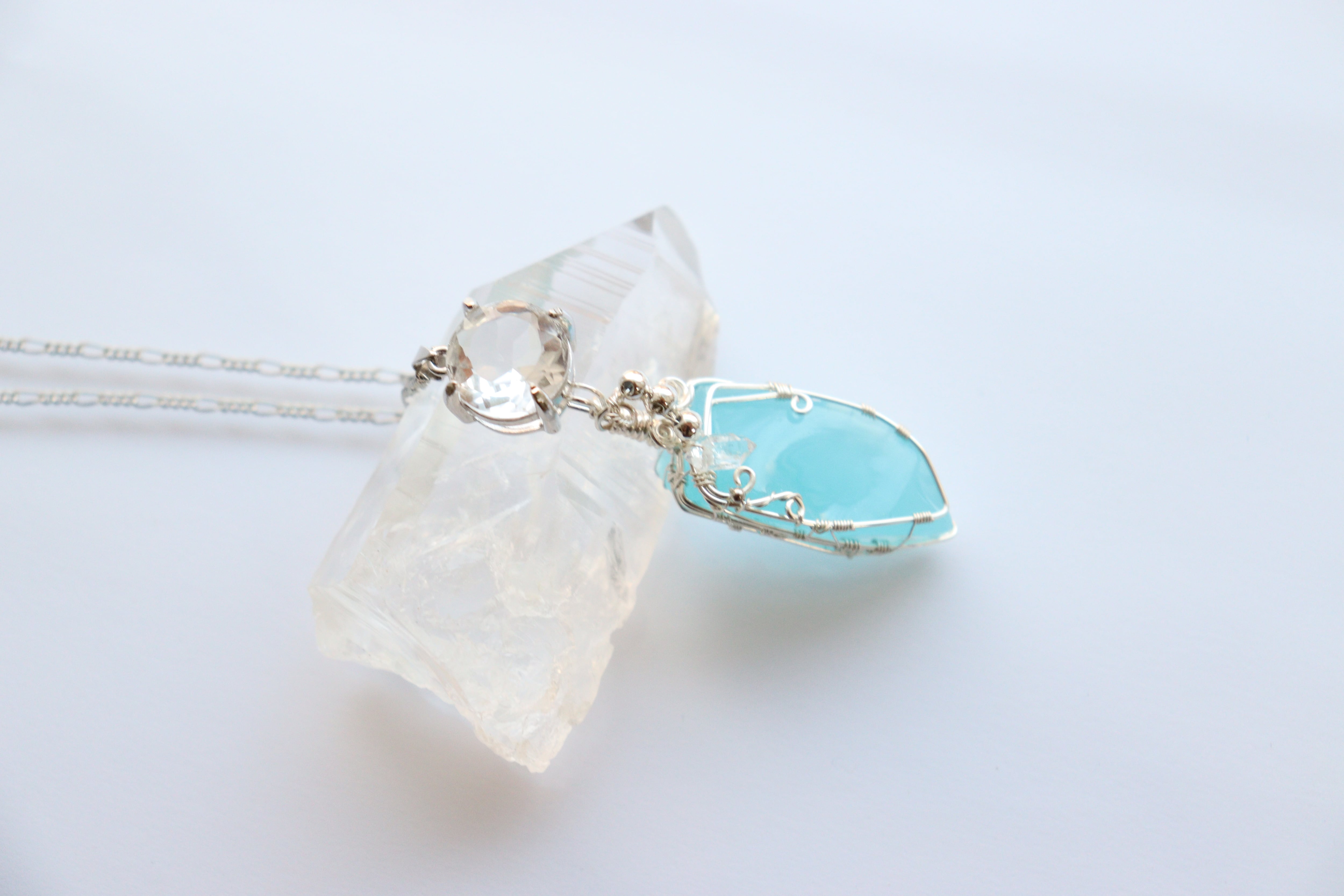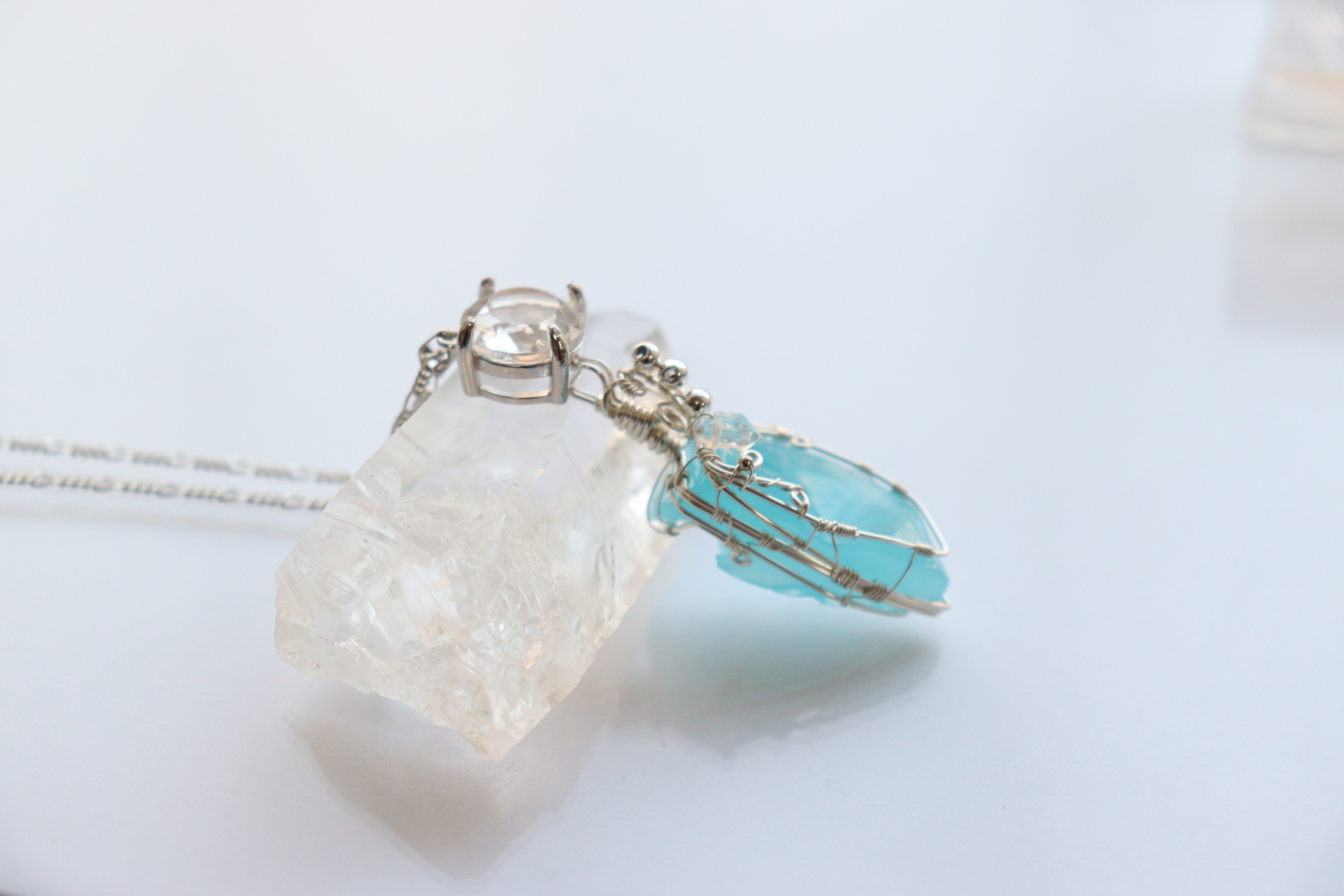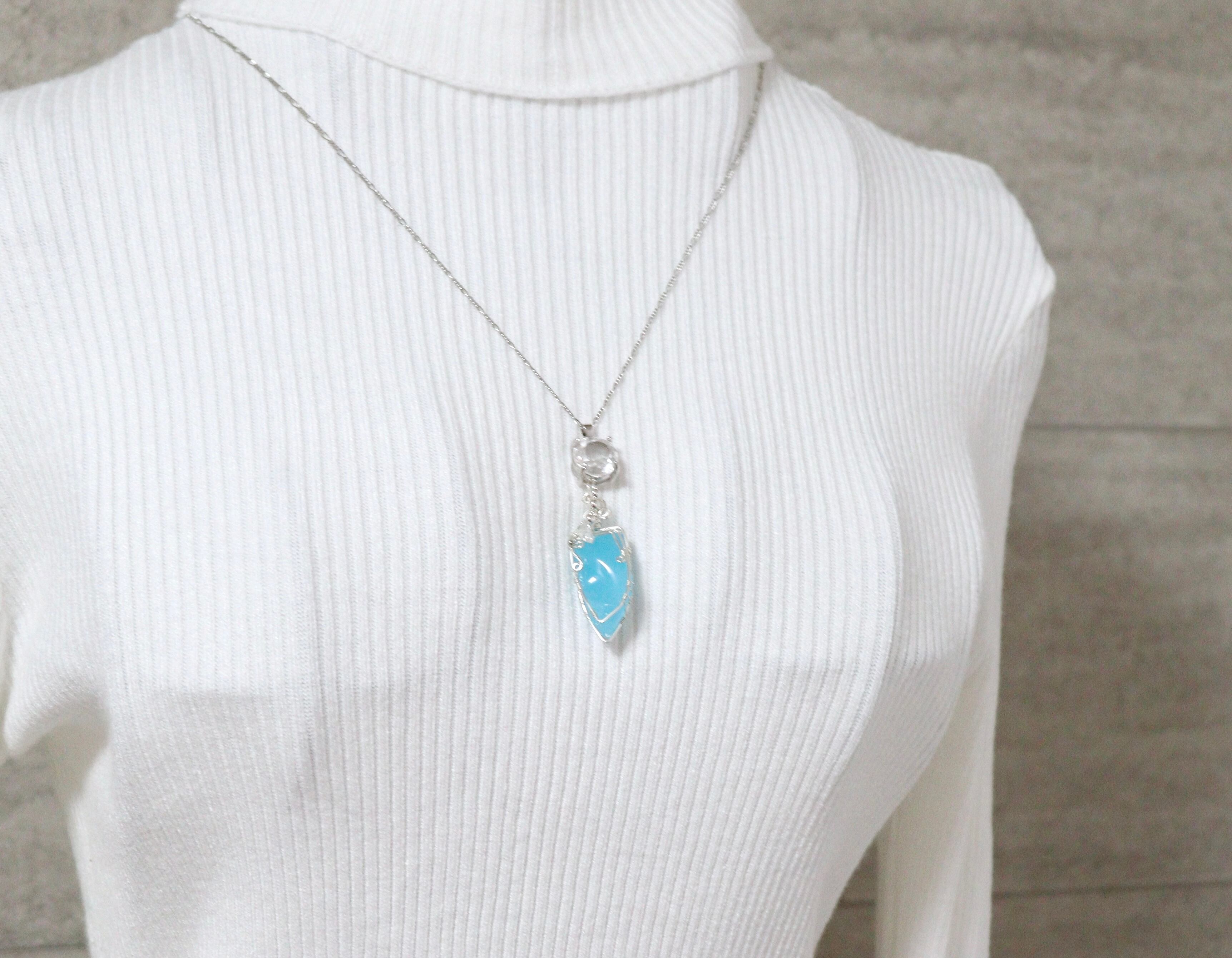 大粒水晶 ×ミルキーターコイズブルー✧アンダラクリスタルのワイヤージュエリーネックレス✧天然石ペンダント