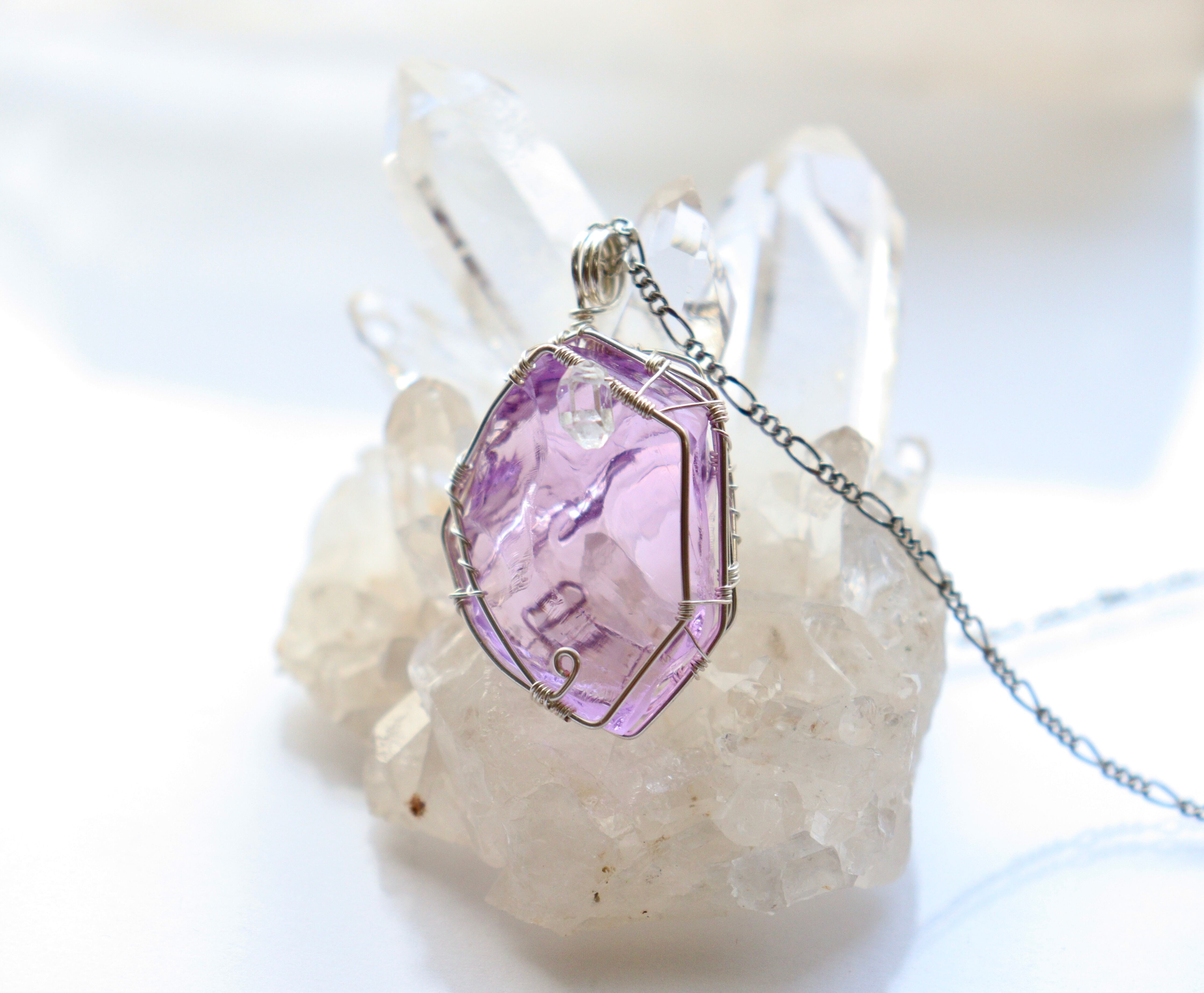 パープルピンク×アンダラクリスタルのワイヤージュエリーネックレス ︎︎⟡天然石ペンダント