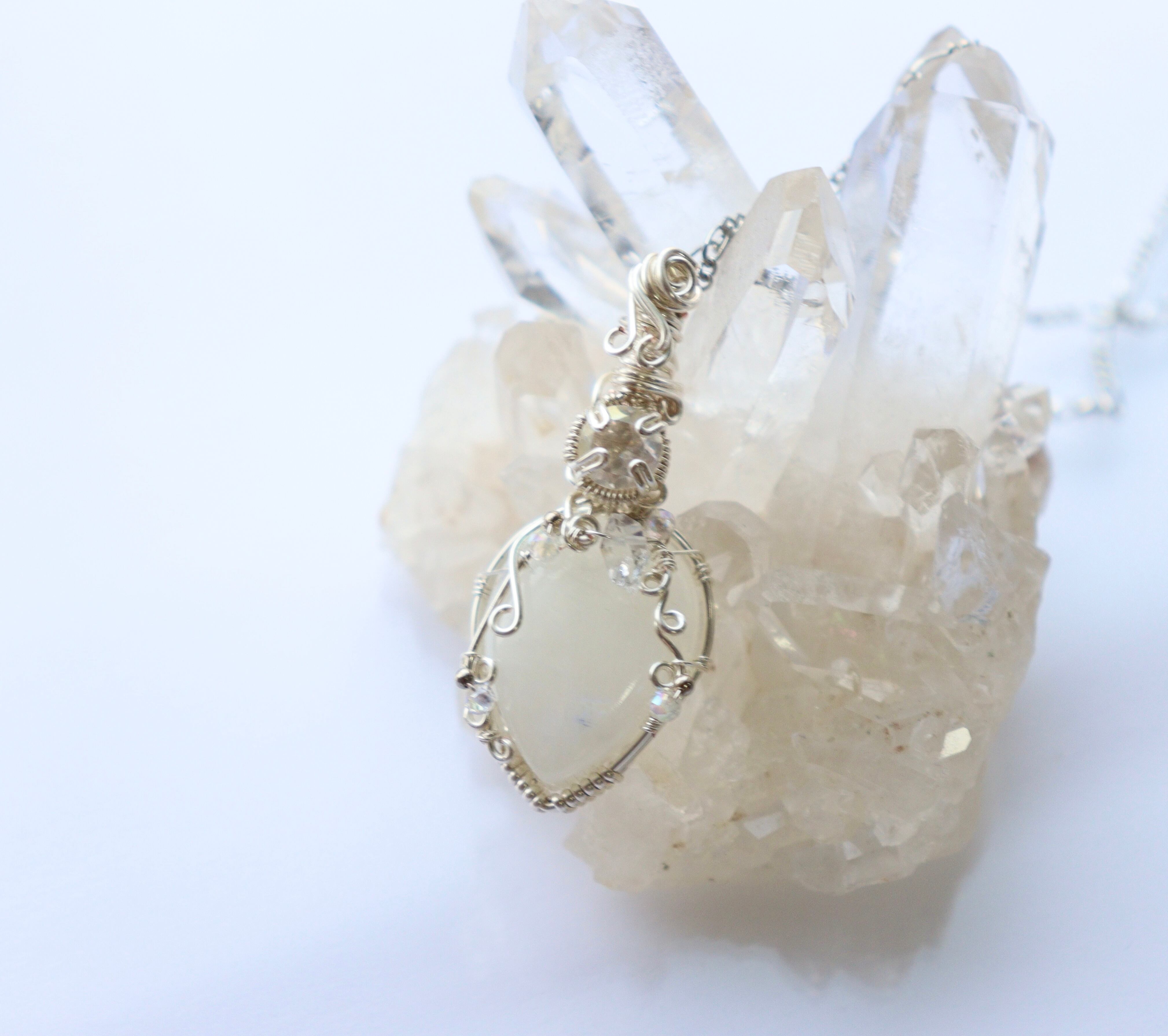 ブルームーンストーンとクリスタルのワイヤージュエリーネックレス︎︎⟡天然石ペンダント