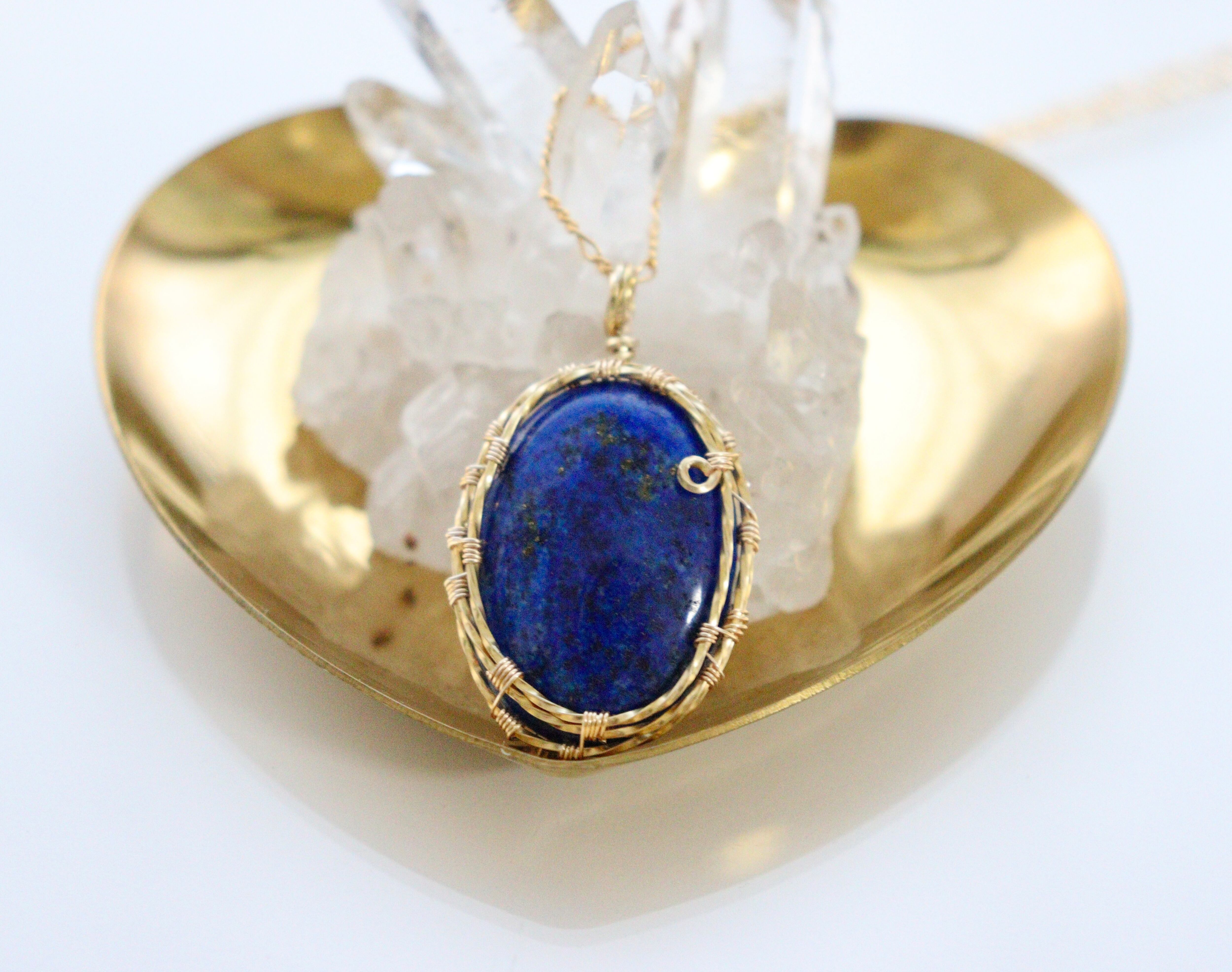 12月の誕生石〝ラピスラズリ〟を使用してワイヤージュエリーネックレスにお仕立て致しました。