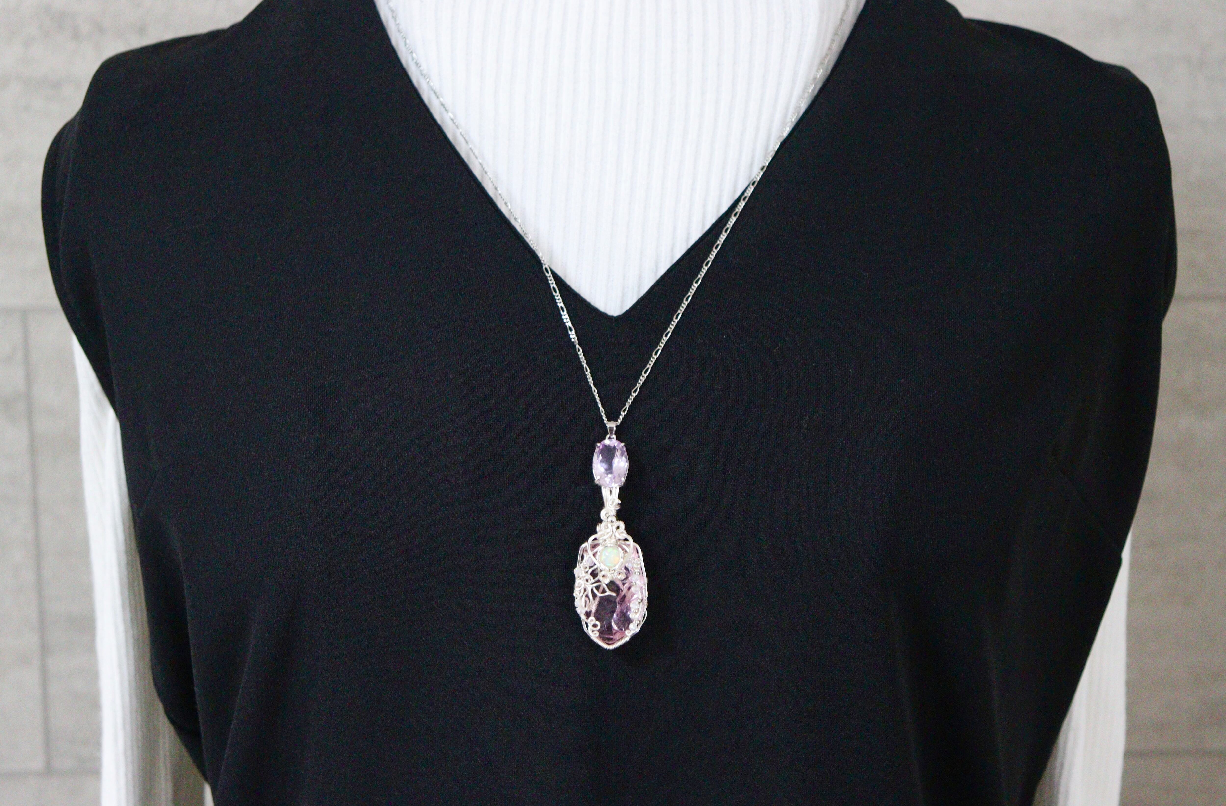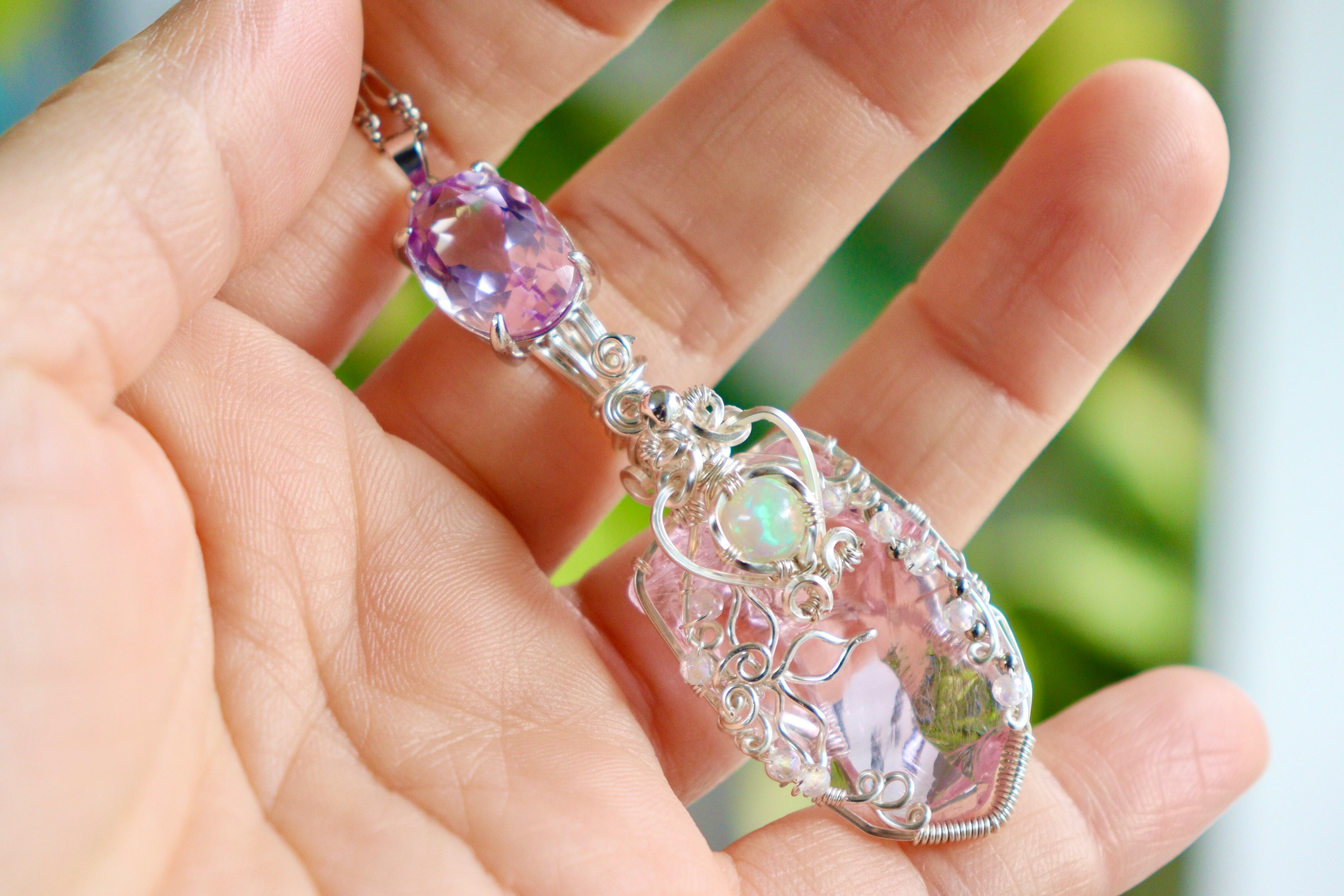 シエラ産✧アンダラクリスタルと2月誕生石ピンクアメジストのワイヤージュエリーネックレス✧天然石ペンダント