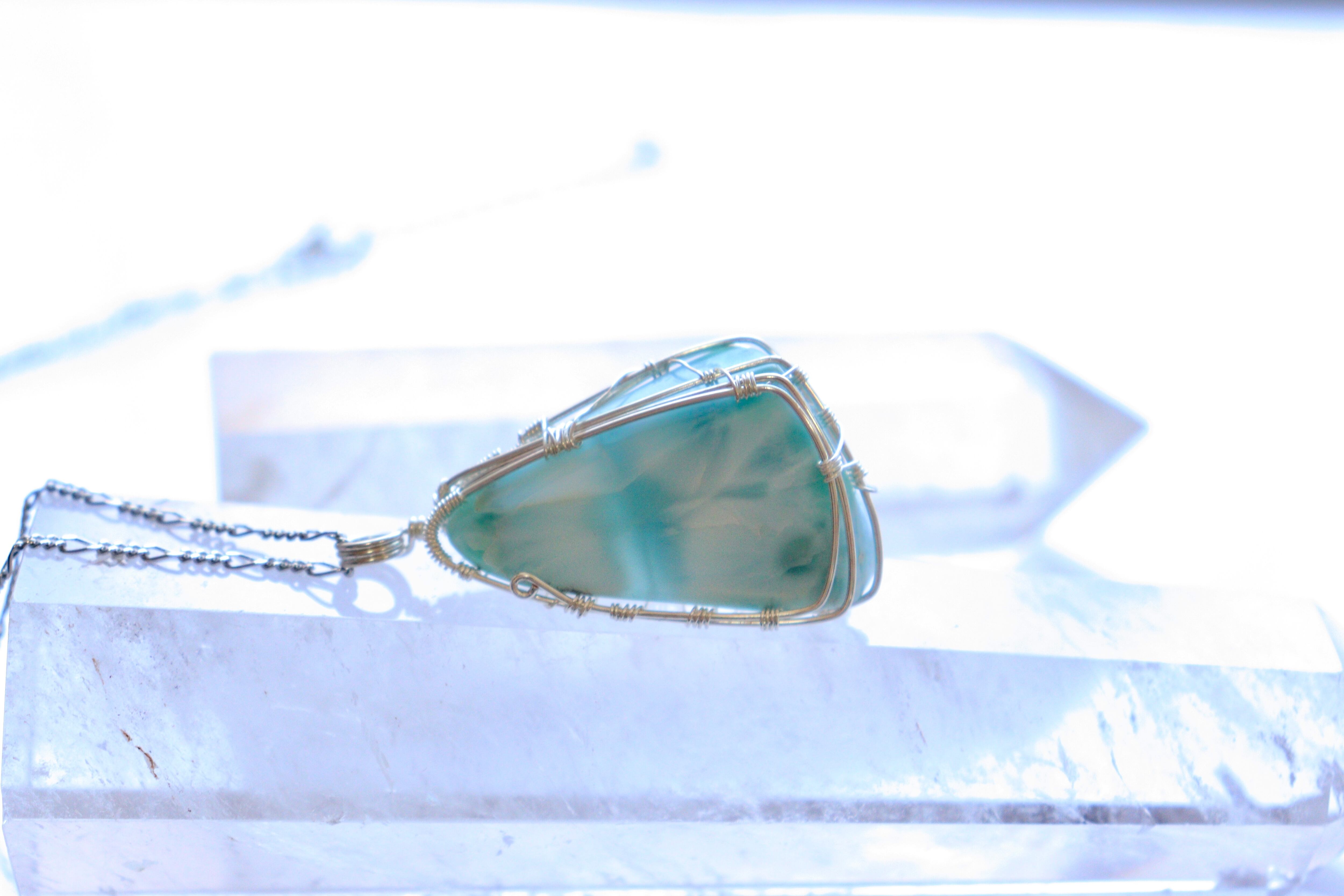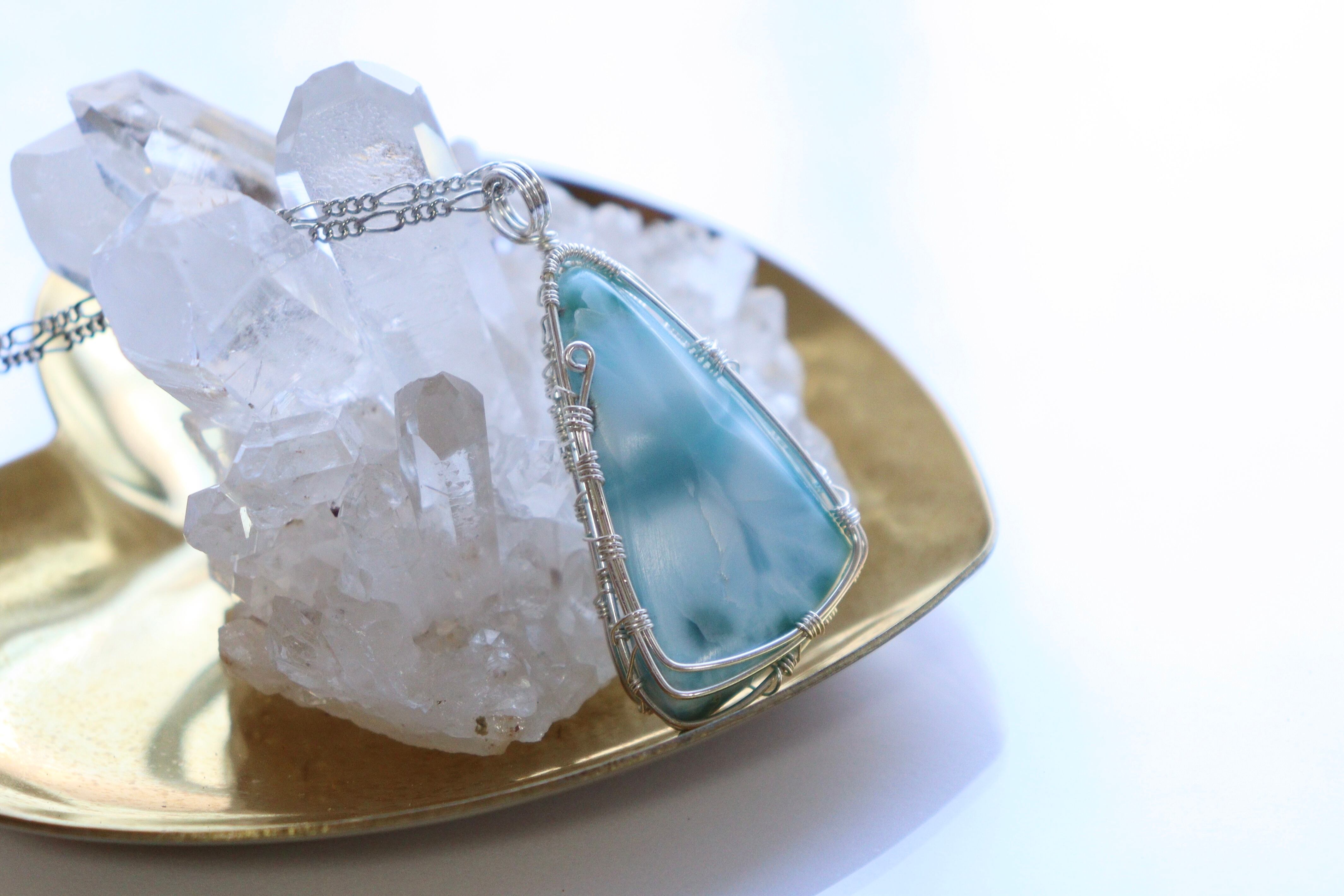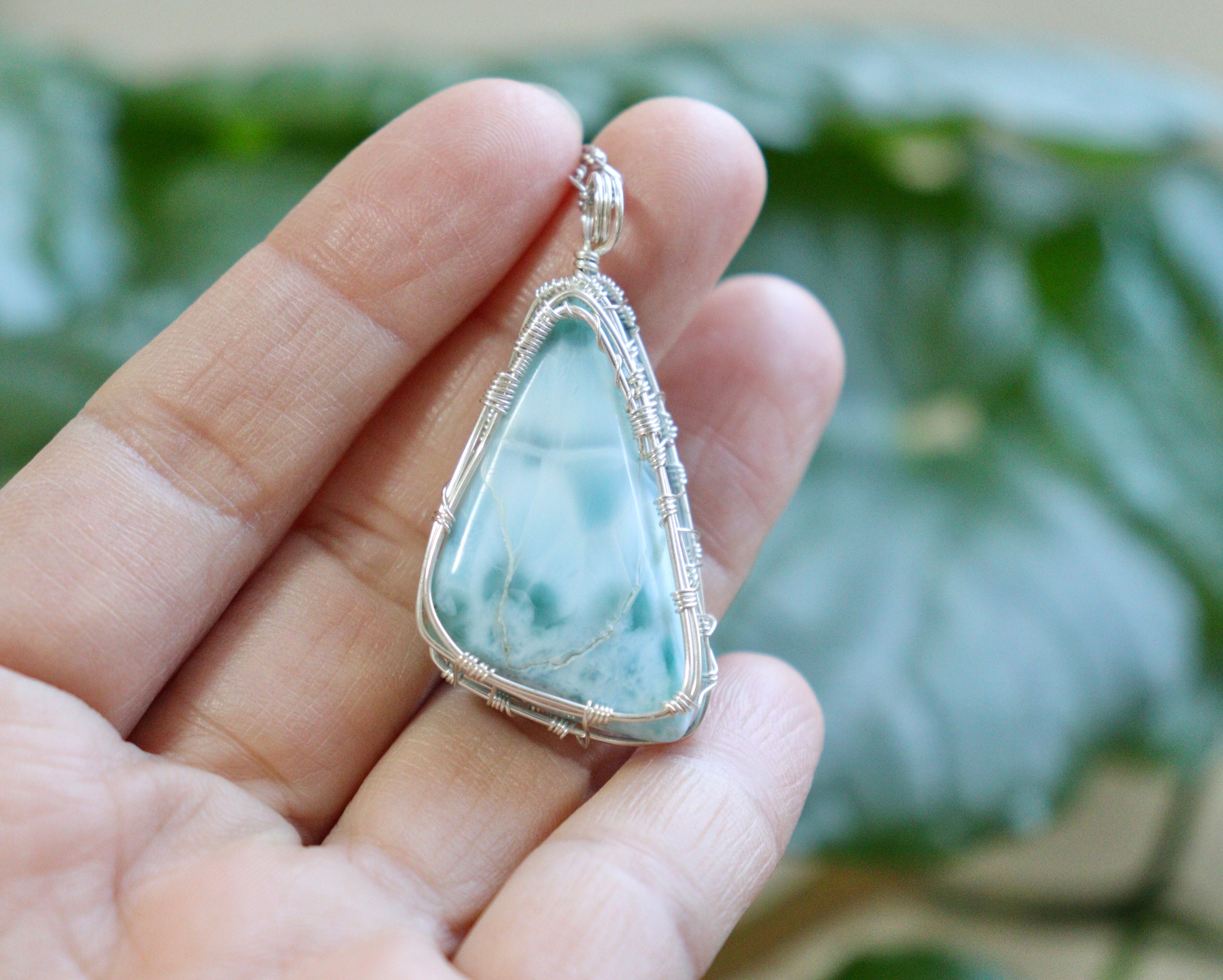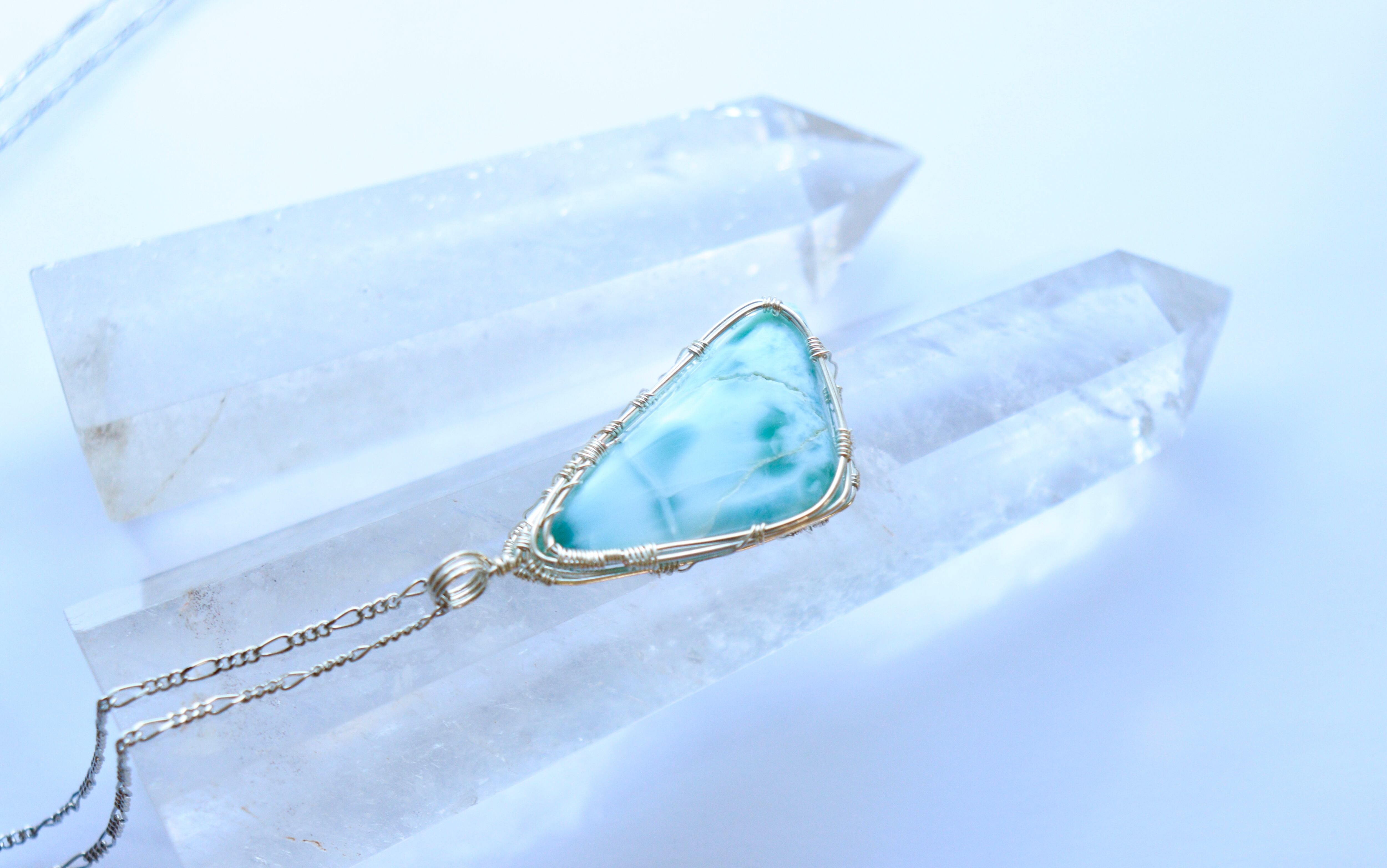 ラリマーのワイヤージュエリーネックレス︎︎︎︎⟡ヒーリングストーン 天然石ペンダント