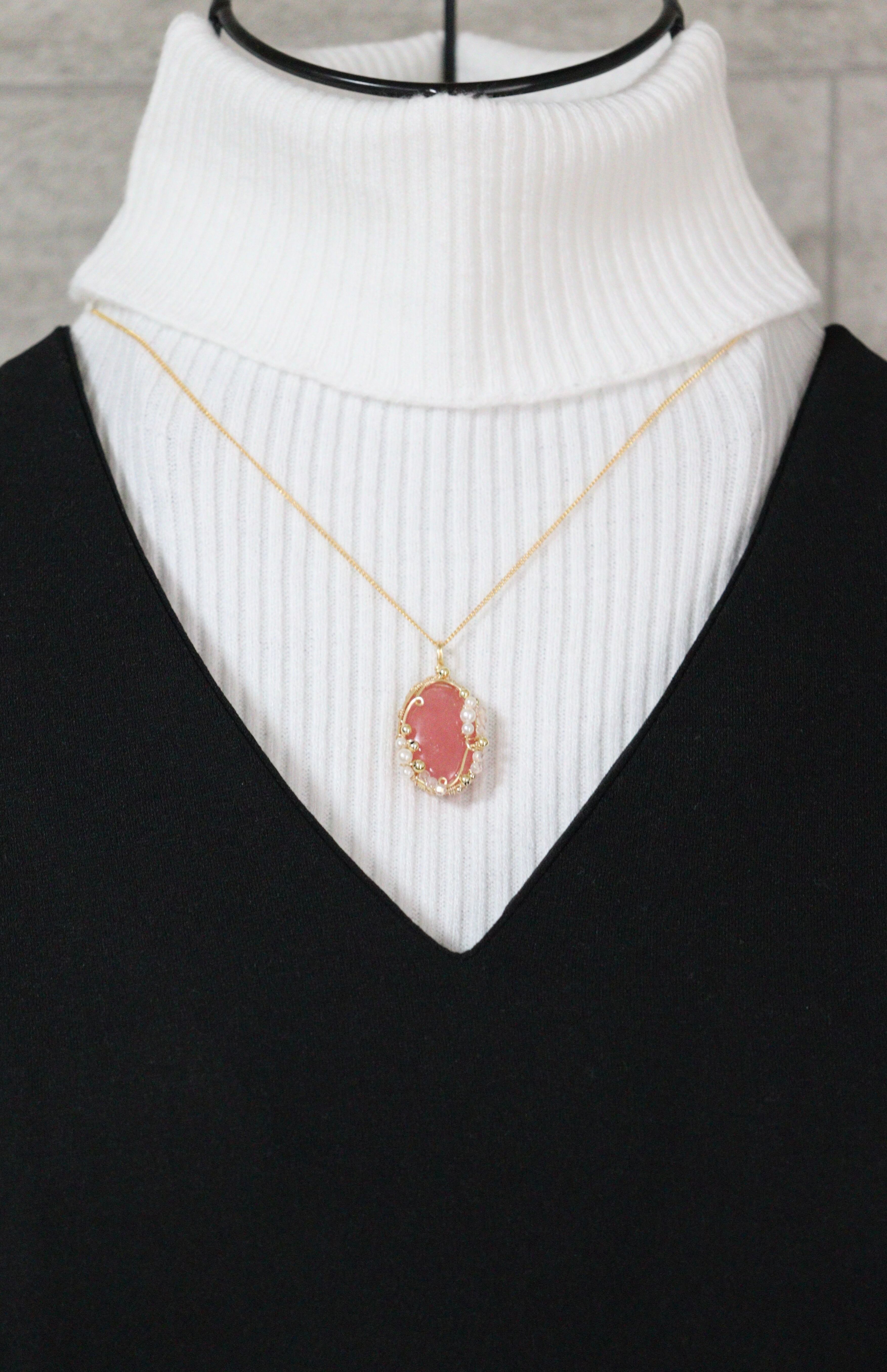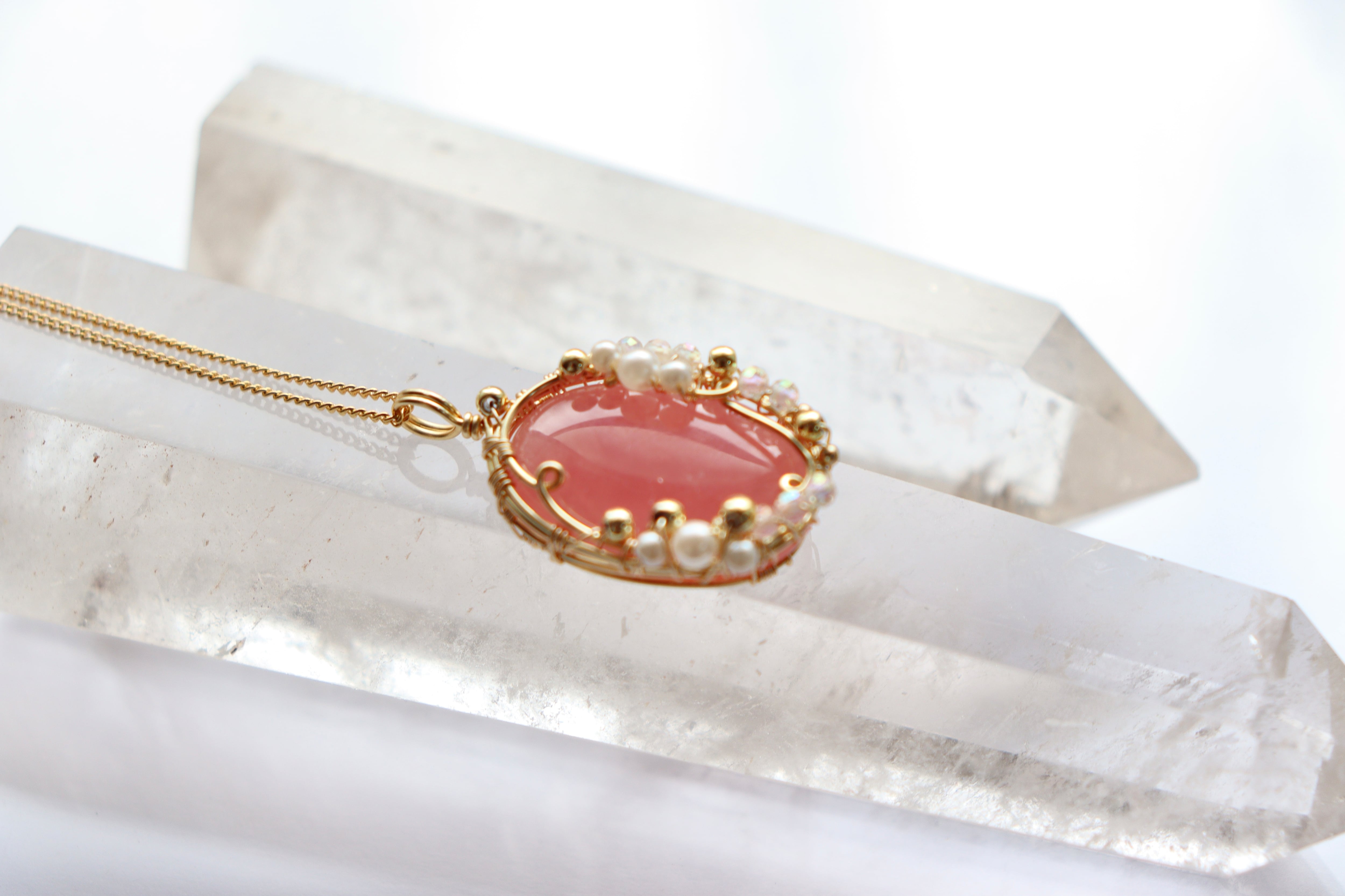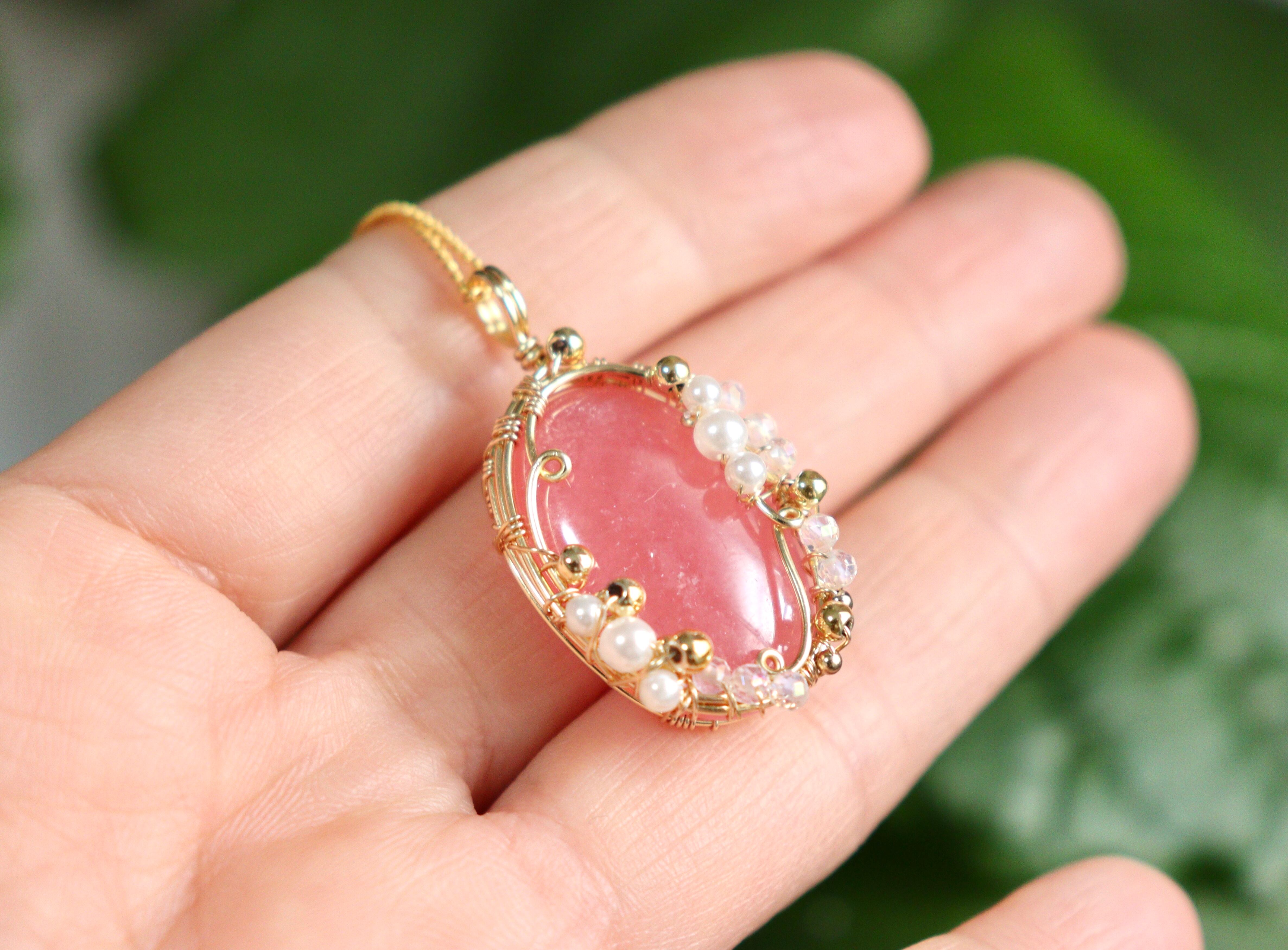 天然石インカローズのワイヤージュエリーネックレス︎︎⟡ロードクロサイト ペンダント