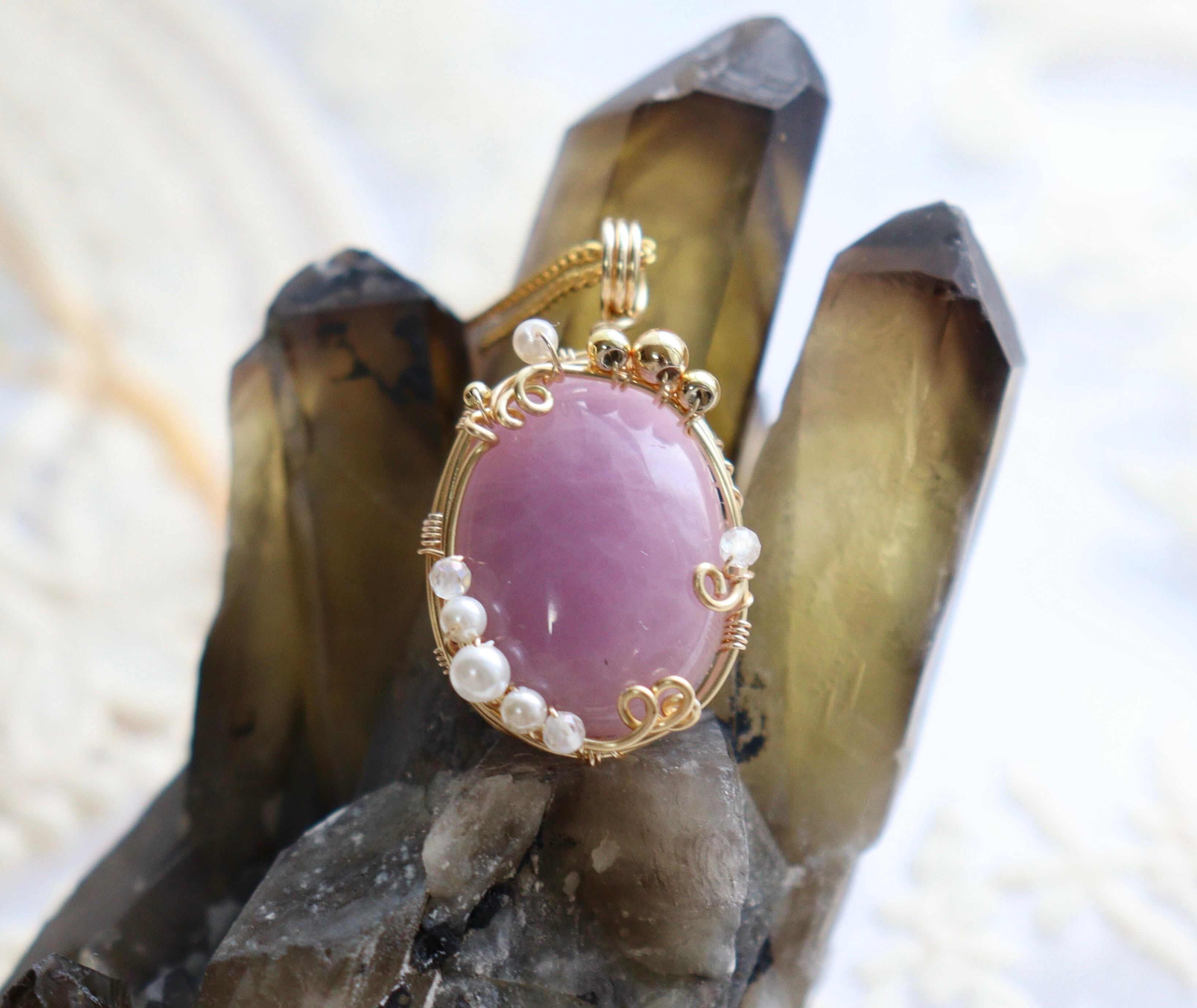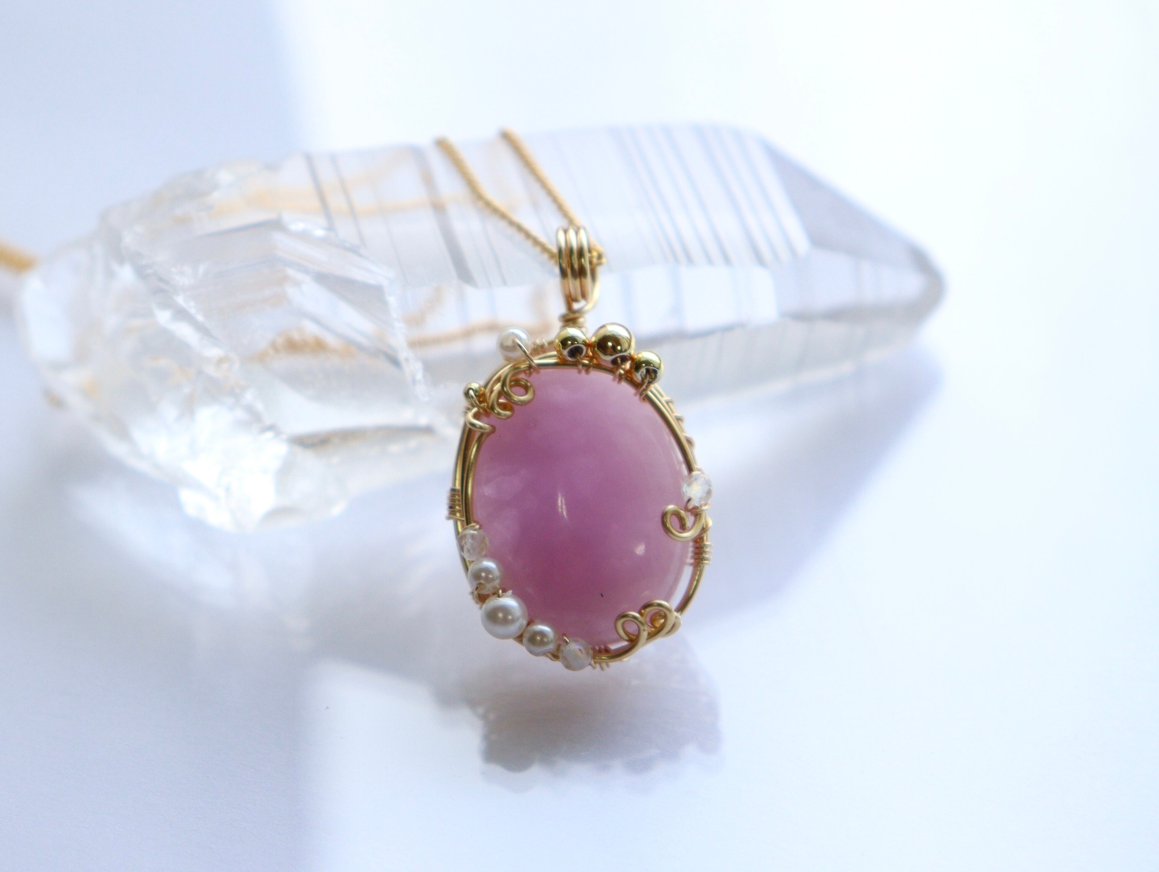 9月誕生石︎︎⟡クンツァイトのワイヤージュエリーネックレス︎︎⟡天然石ペンダント