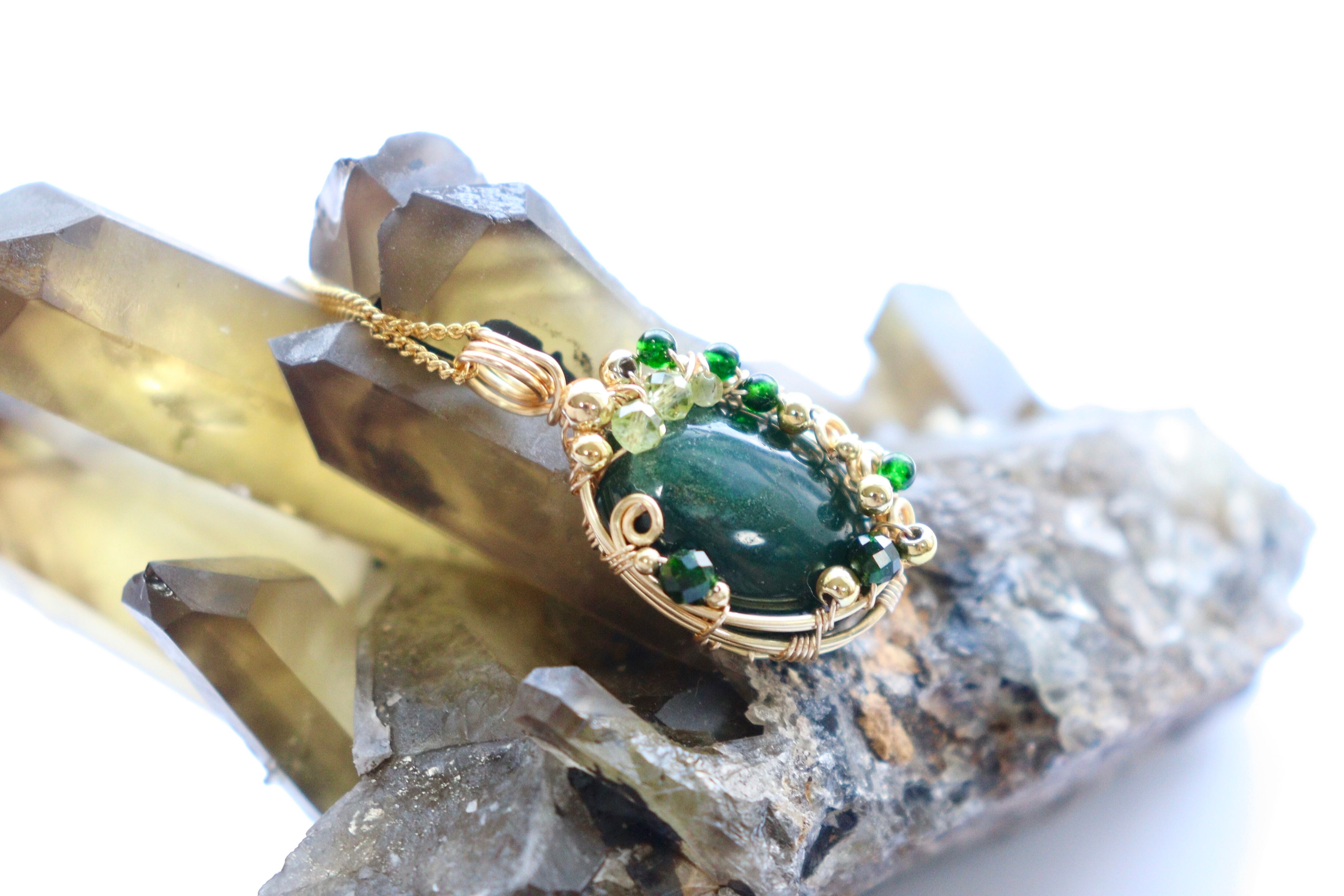 天然石モスアゲート︎︎⟡ワイヤージュエリーネックレス︎︎⟡ペンダント
