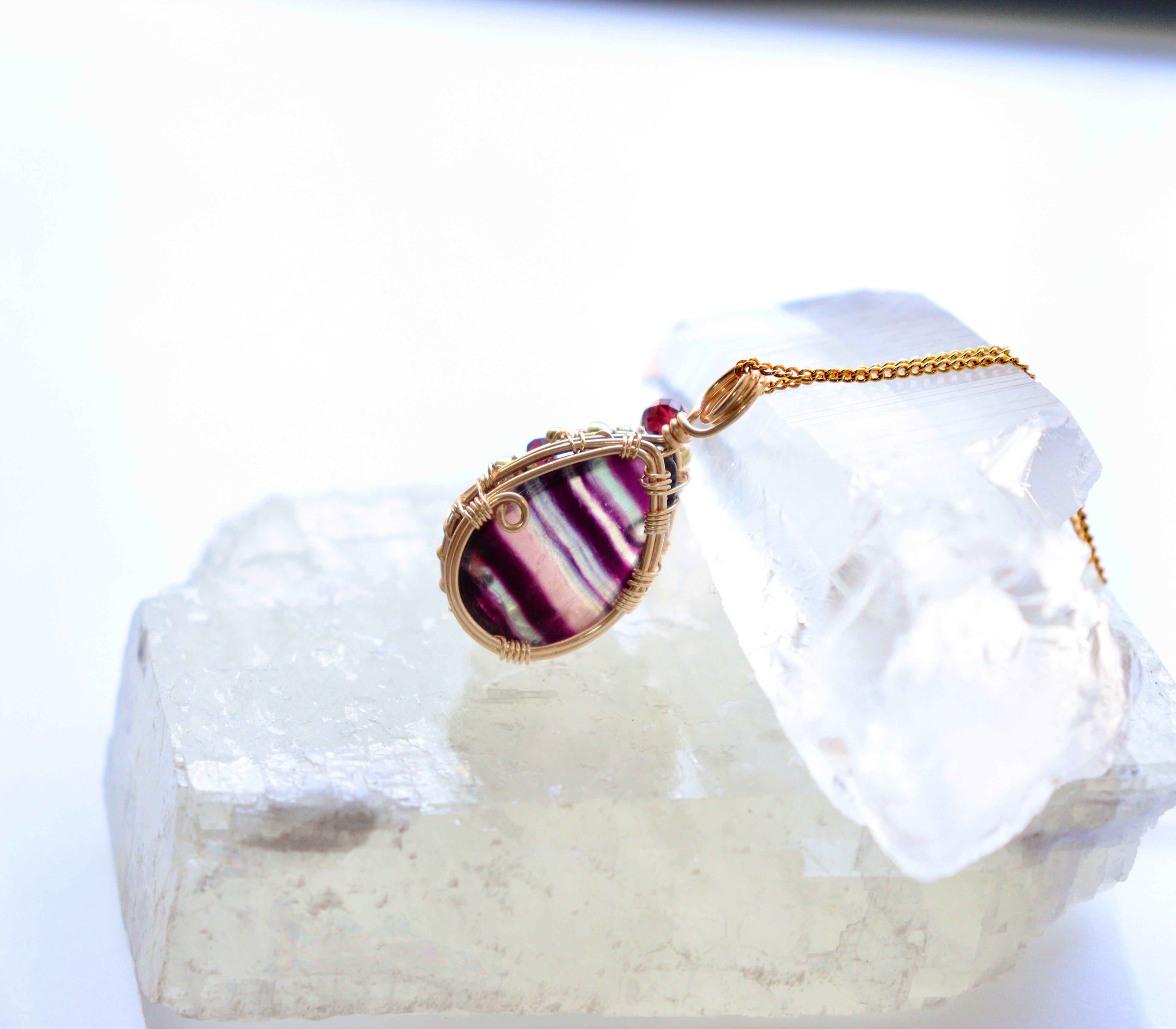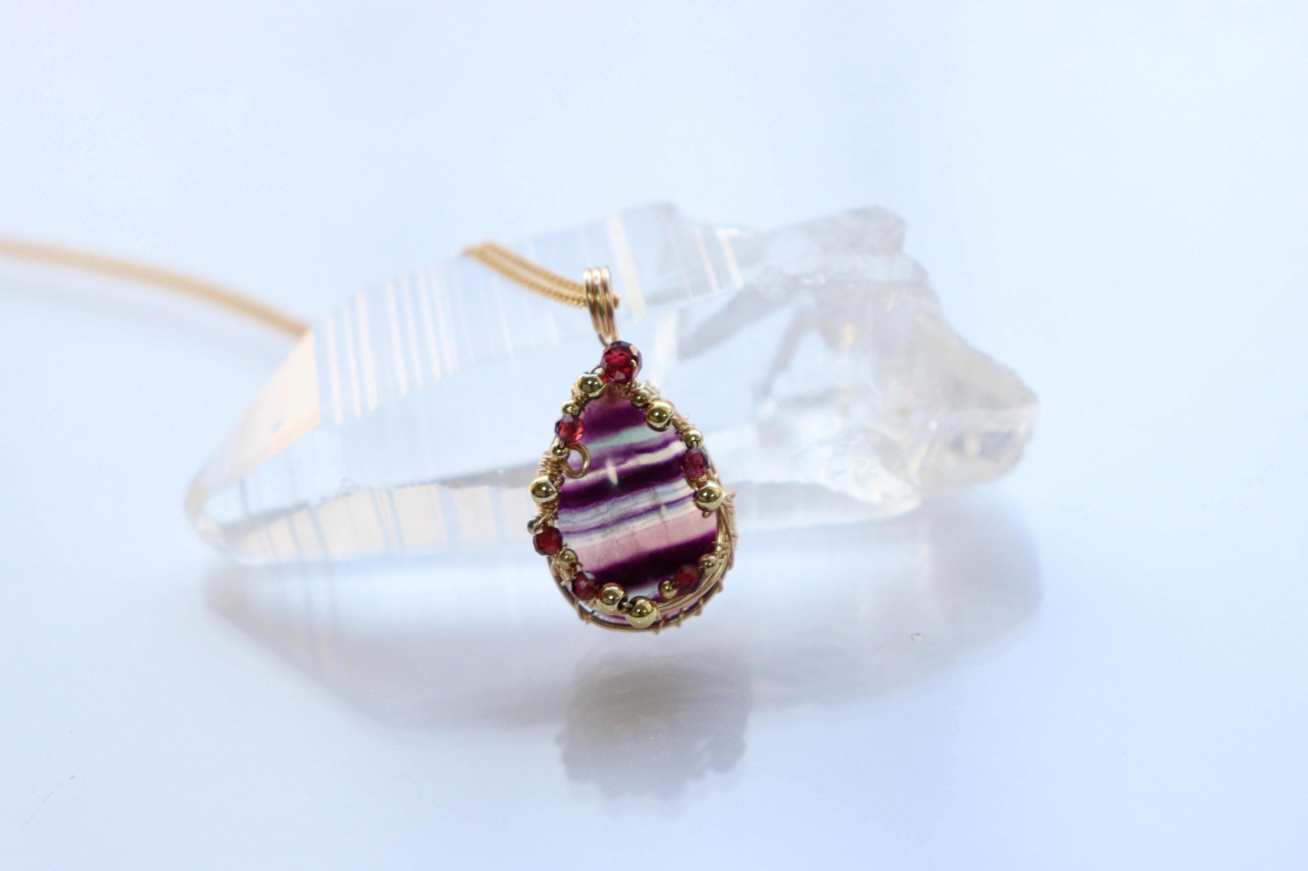天然石パープルフローライトのワイヤージュエリーネックレス︎︎⟡ガーネット︎︎⟡ペンダント