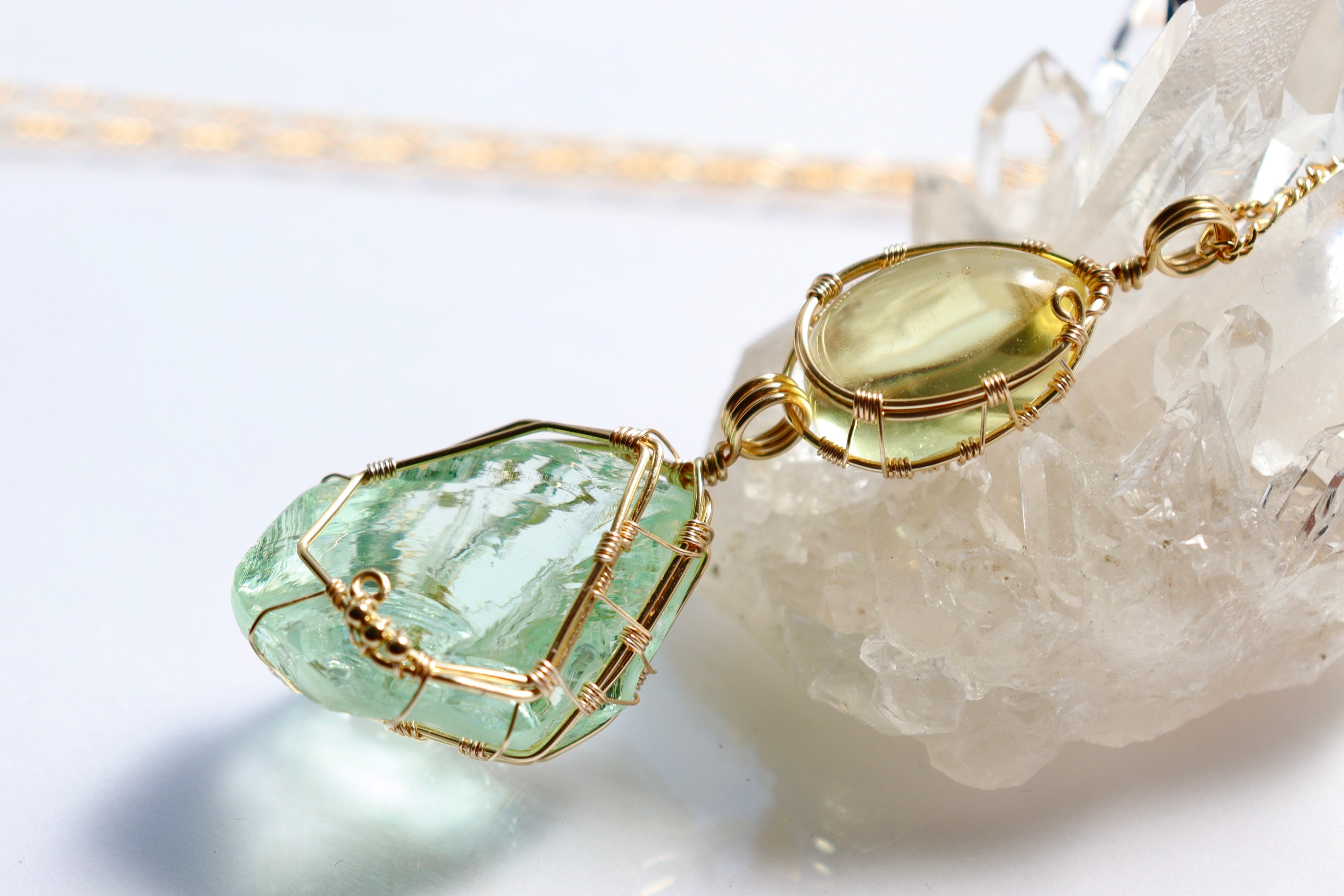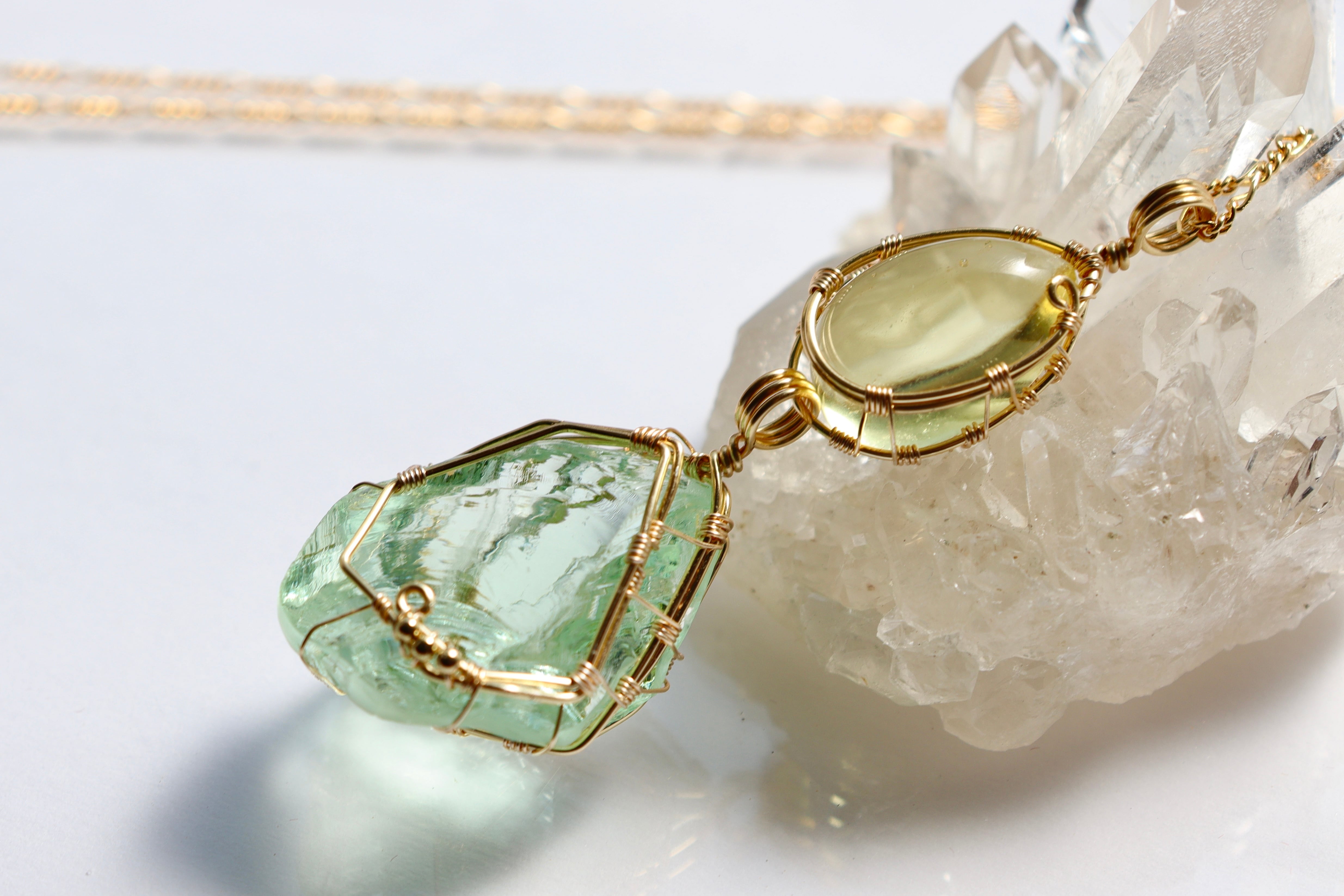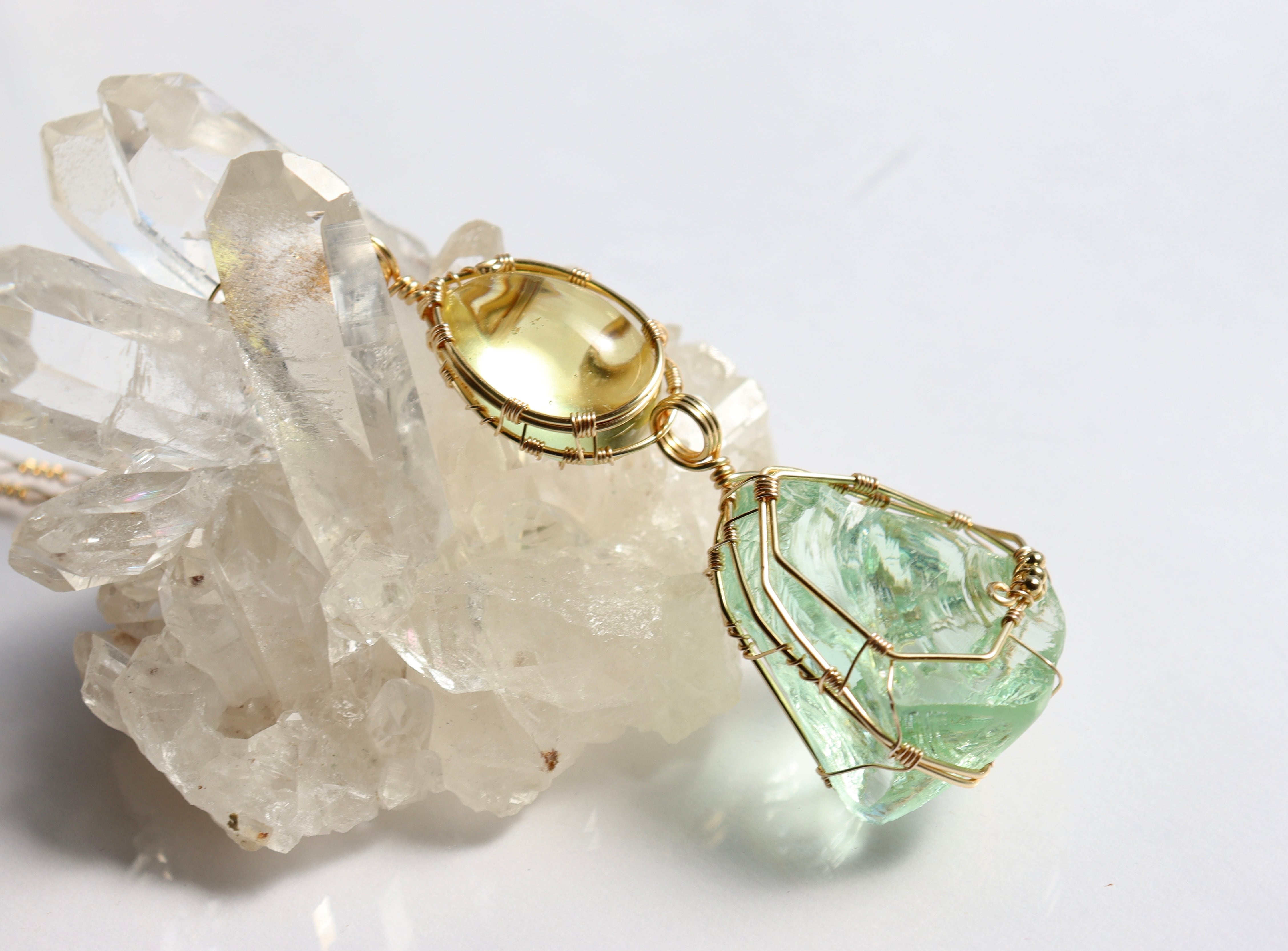 淡いレモン × ミントグリーンアンダラクリスタル⟡ワイヤージュエリーネックレス