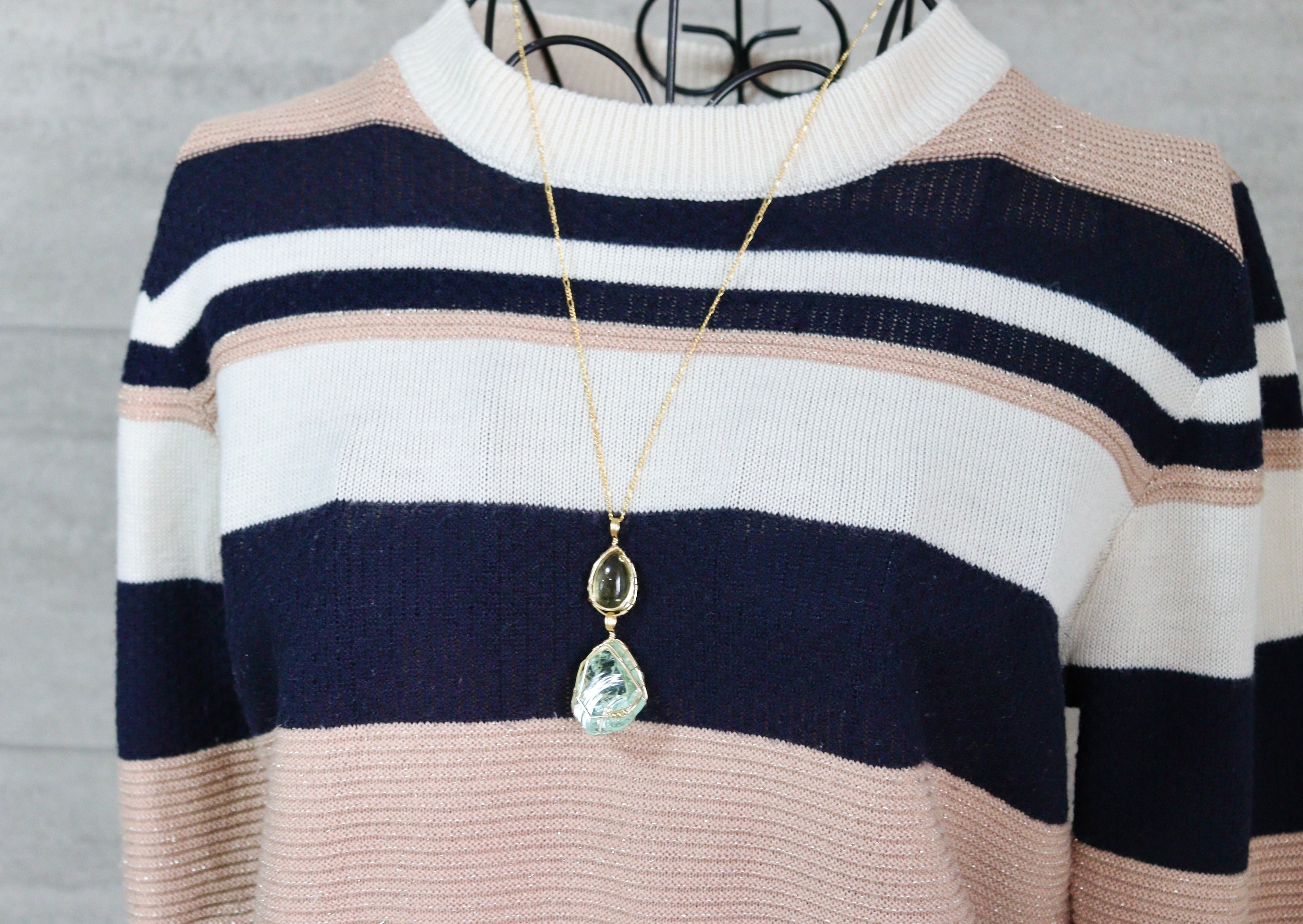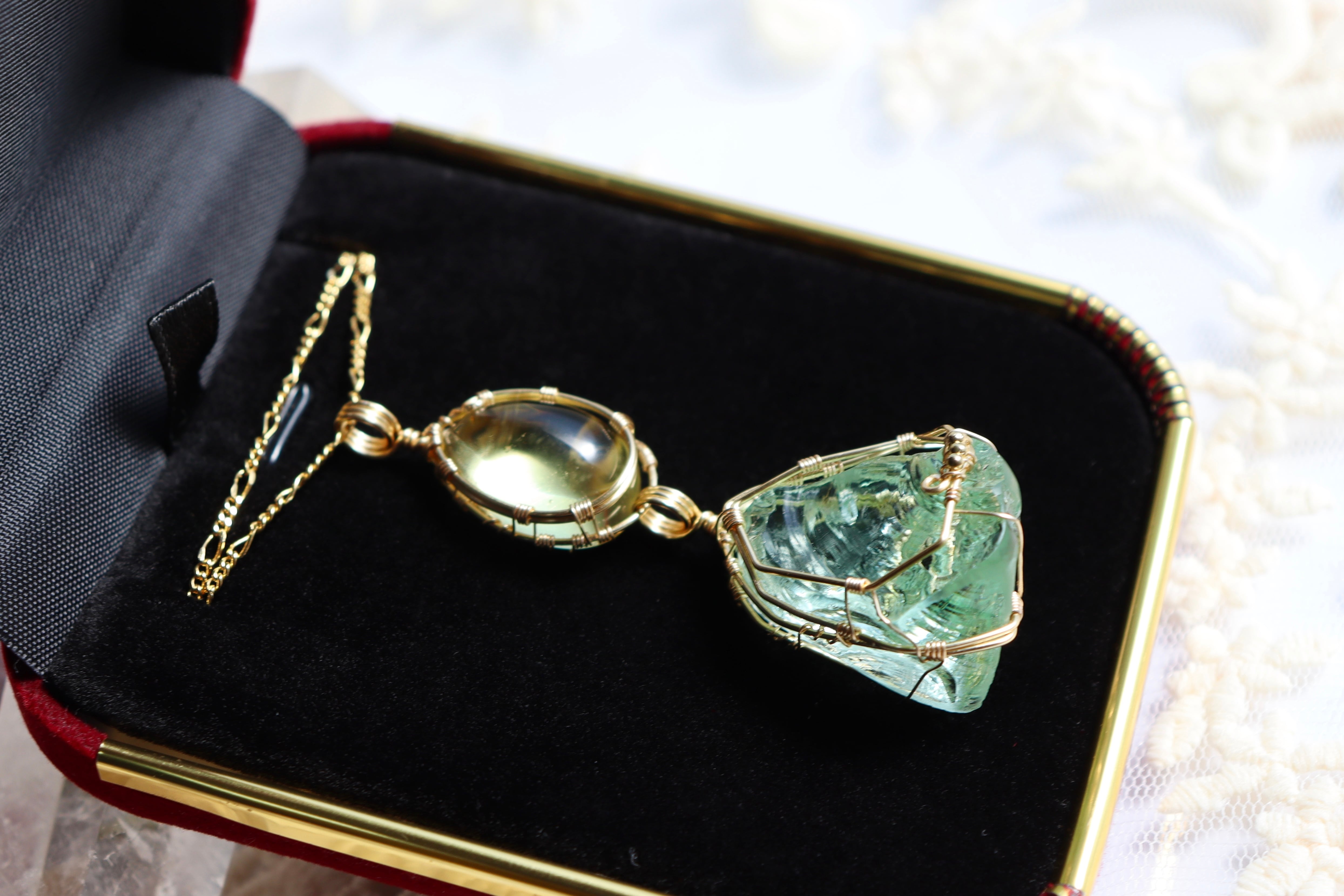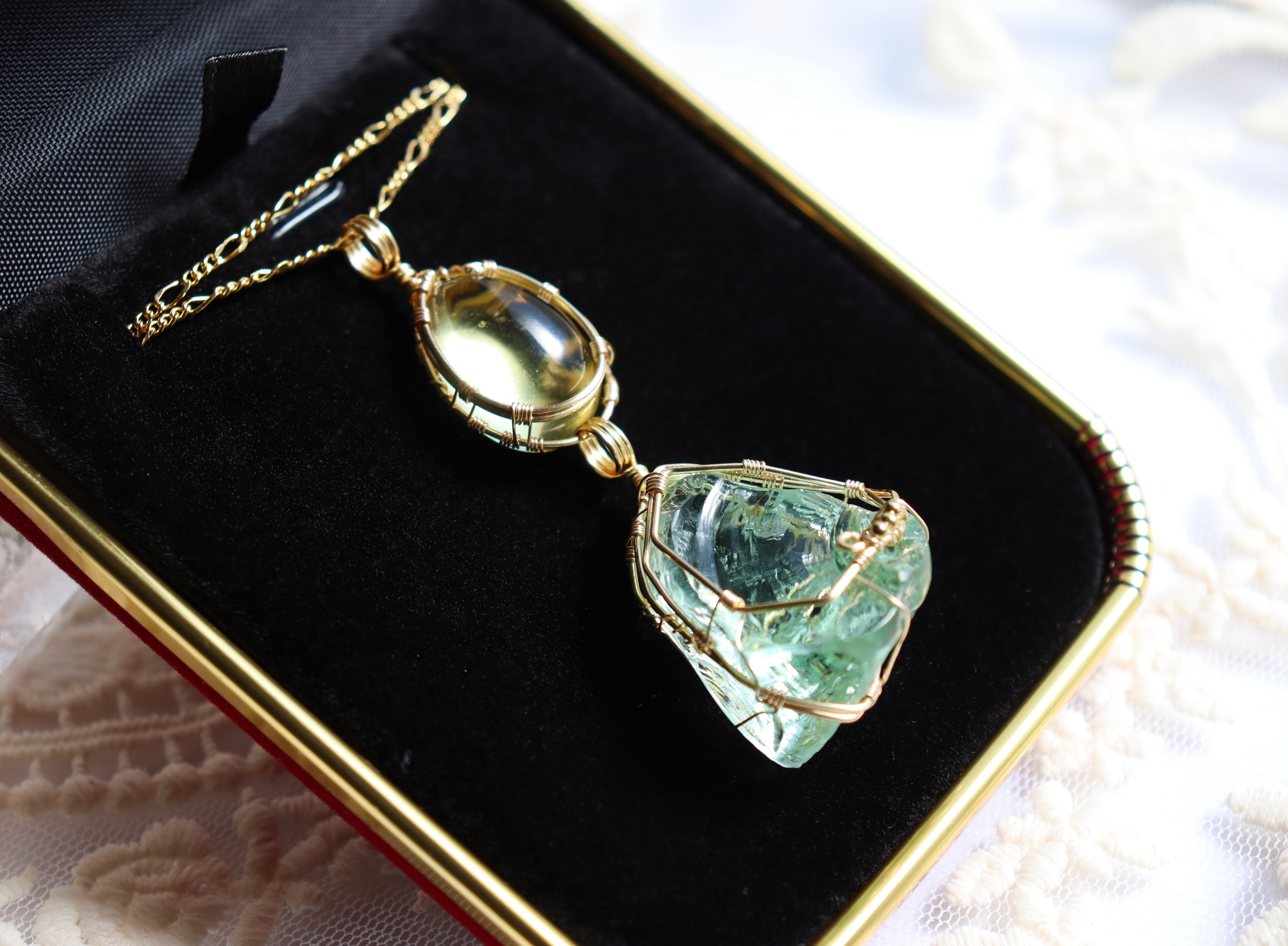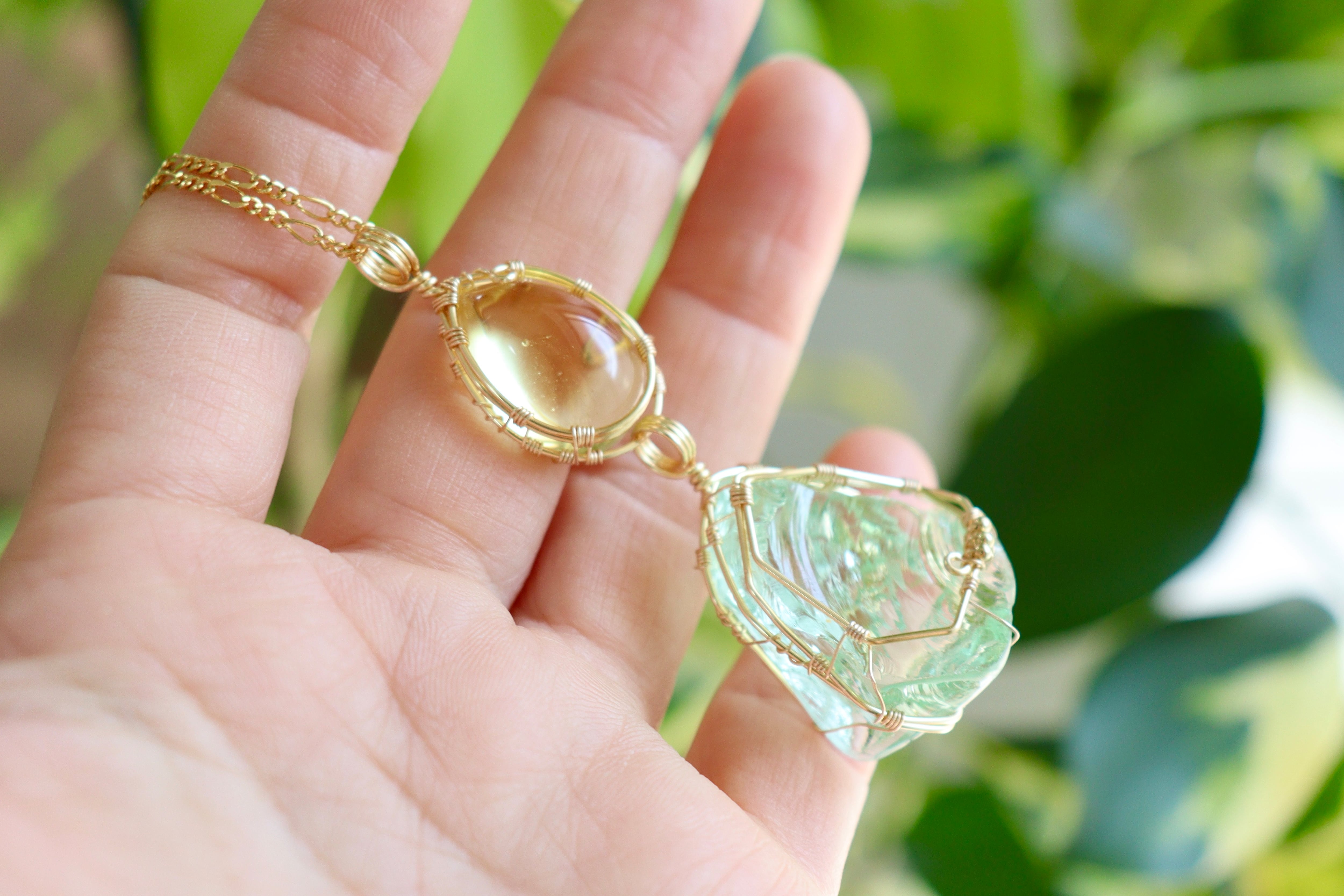 淡いレモン × ミントグリーンアンダラクリスタル⟡ワイヤージュエリーネックレス