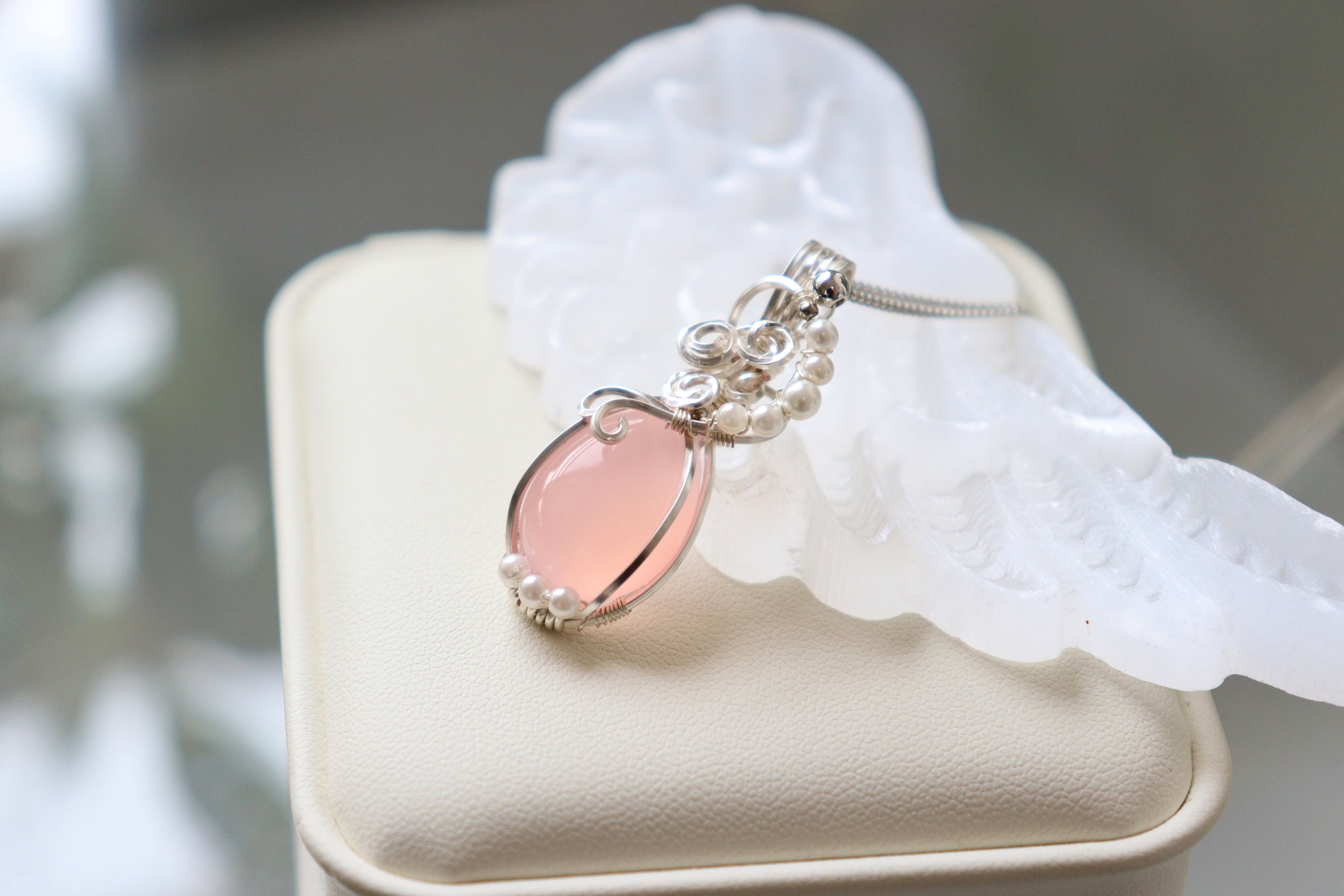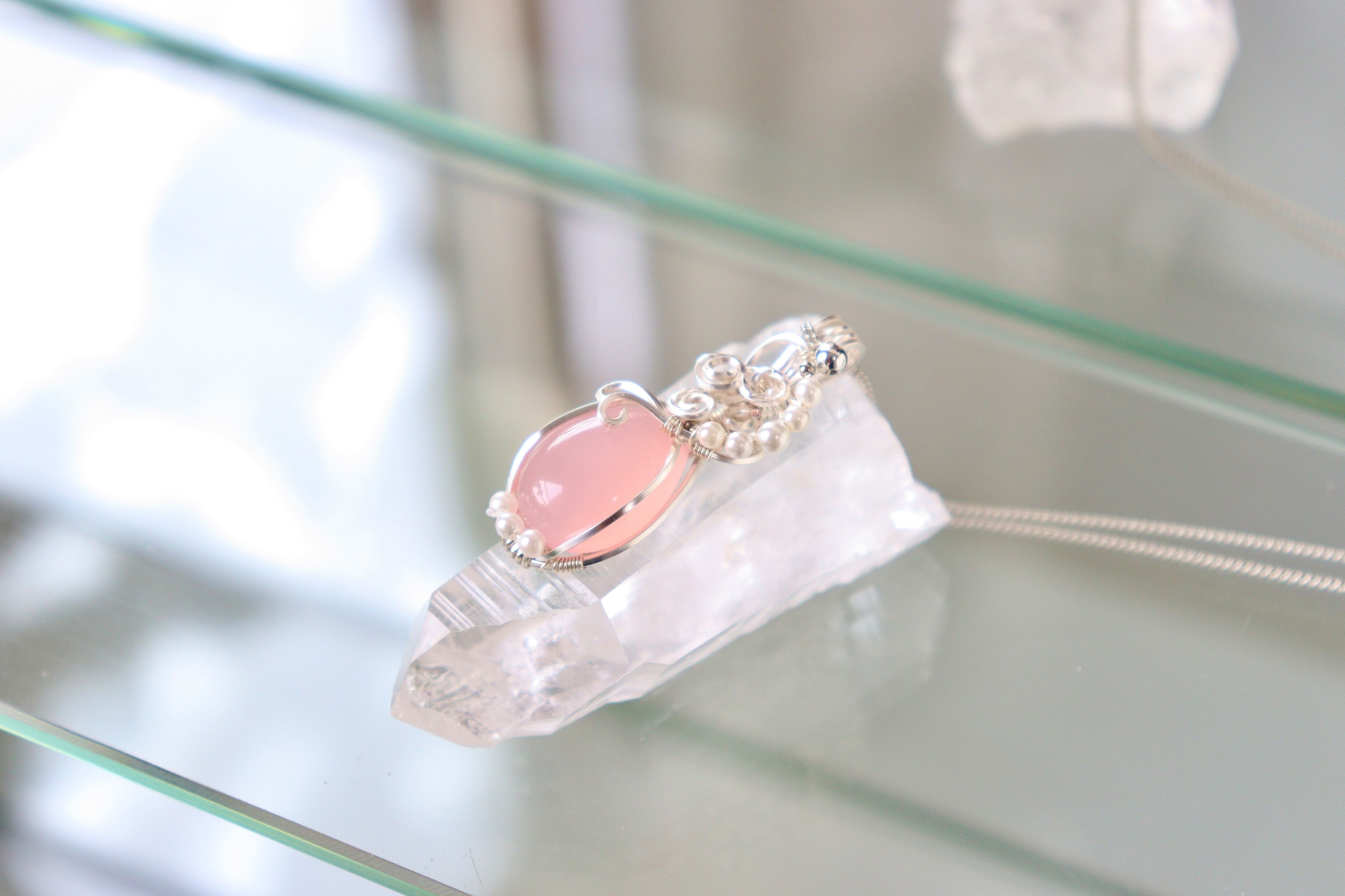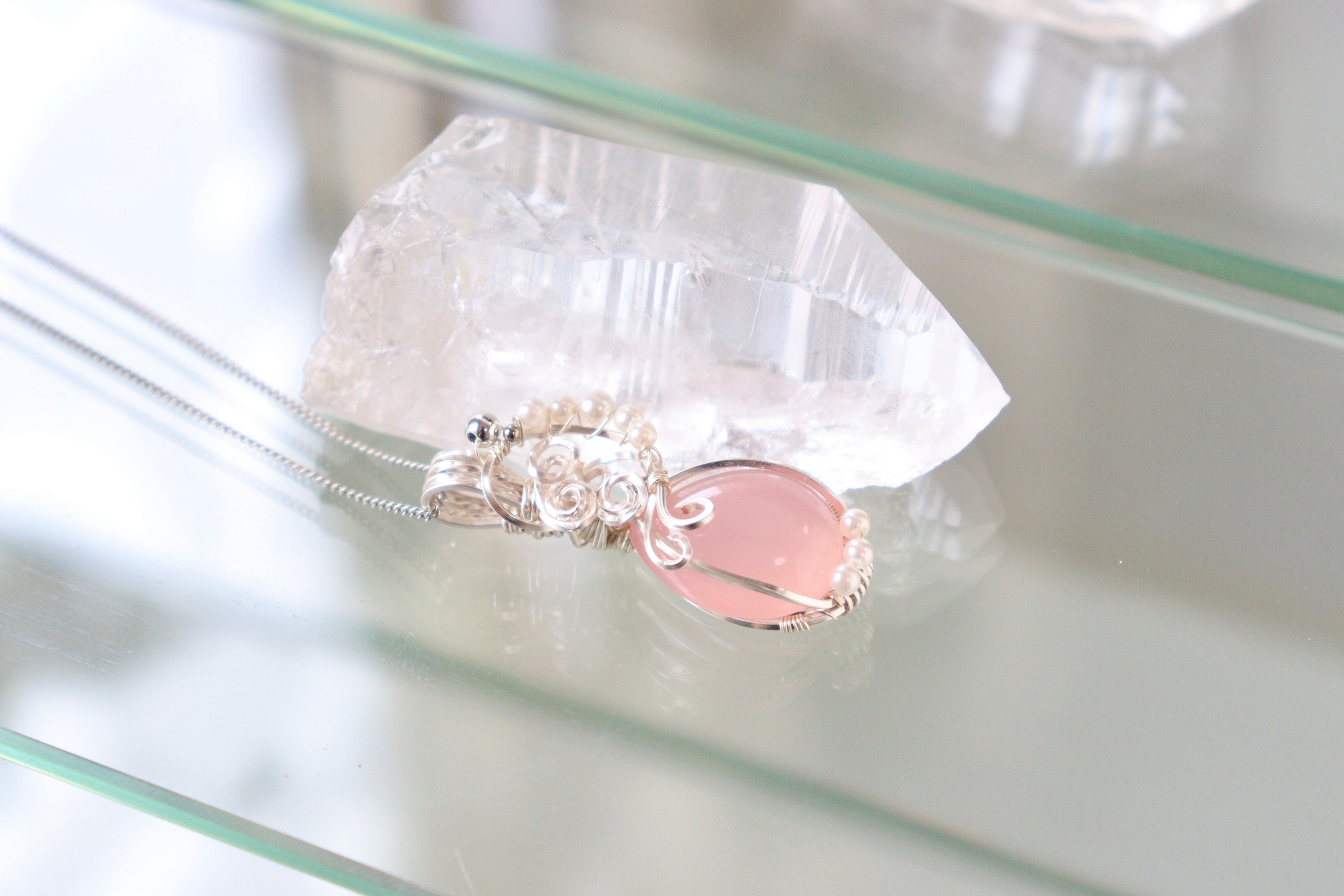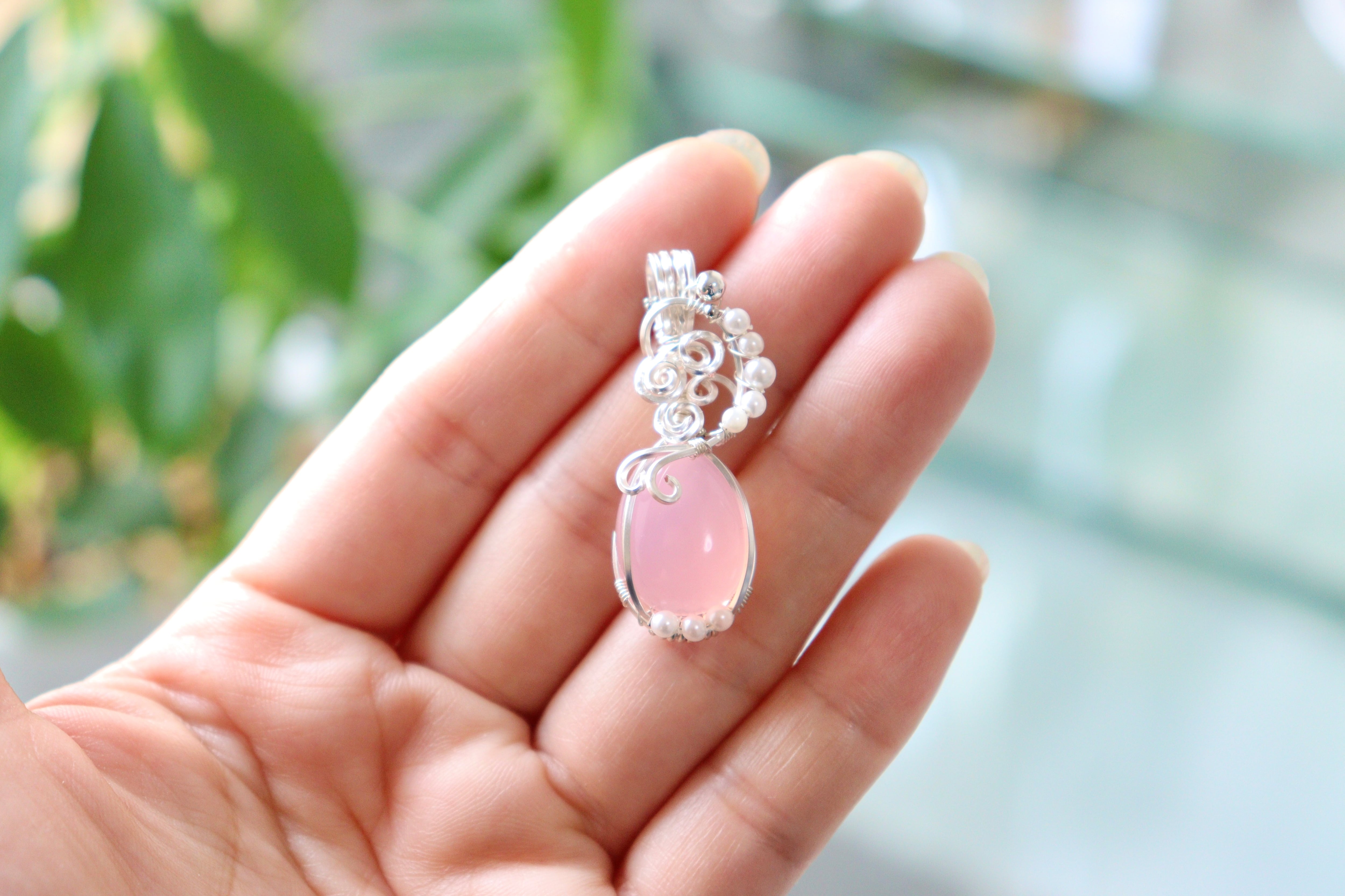 天然石ピンクカルセドニーのワイヤージュエリーネックレス✧ペンダント